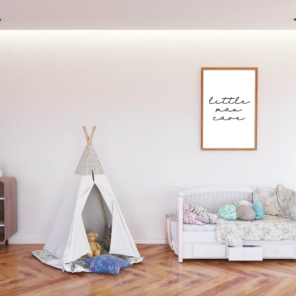 Add a fun and stylish touch to your child’s space with this playful "Little Man Cave" typography art print. Featuring a sleek, handwritten-style font on a clean white background, this design is perfect for a modern, minimalist kids' room or play area. It’s an ideal piece for inspiring creativity and personality in any little one’s space.