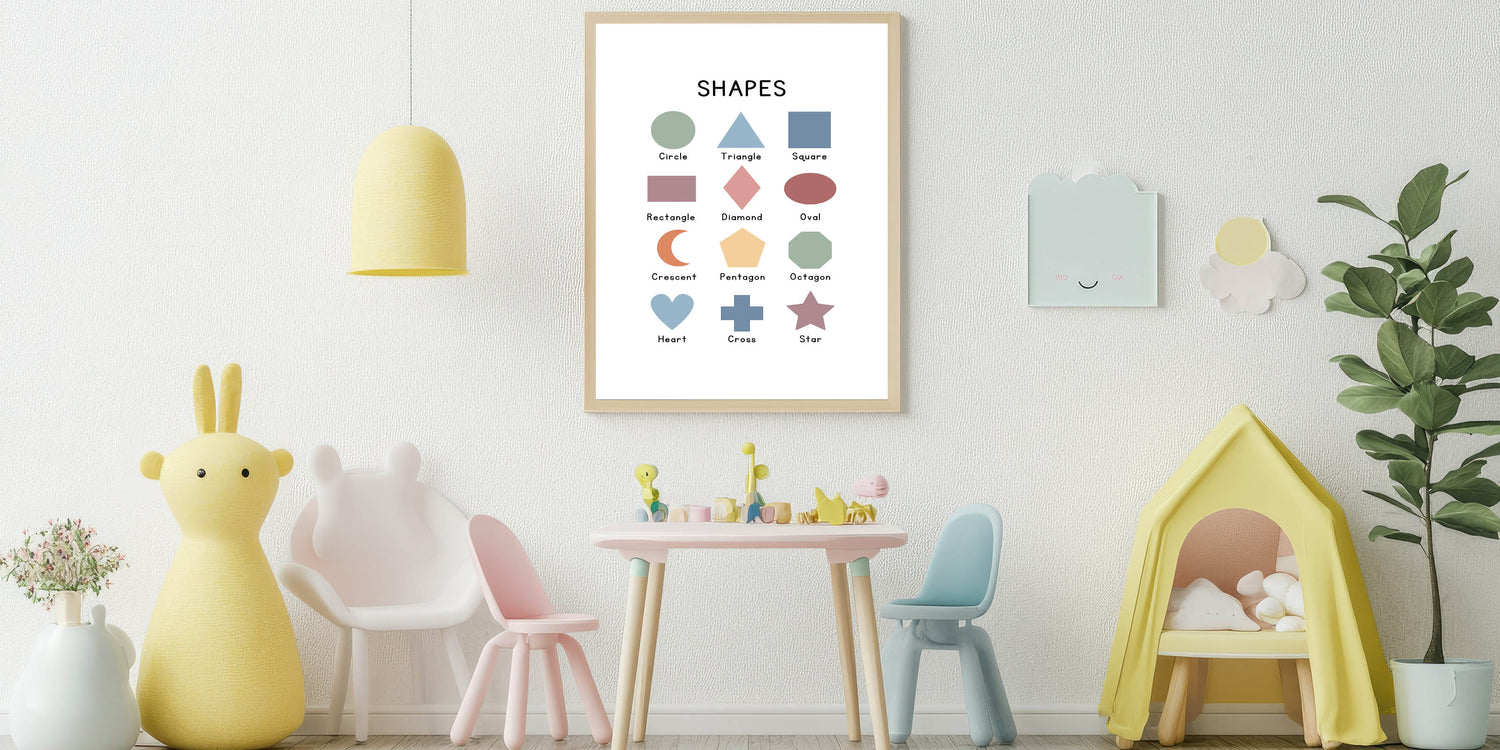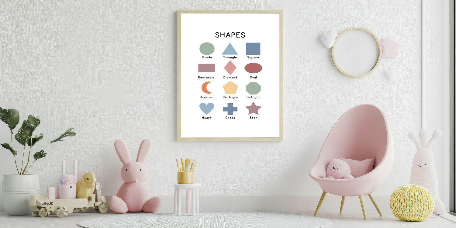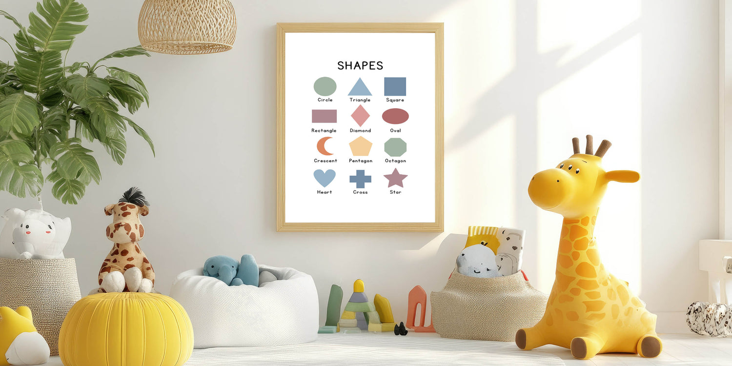 - Geometric Shapes: Showcases a creative arrangement of various shapes like circles, triangles, squares, and more.