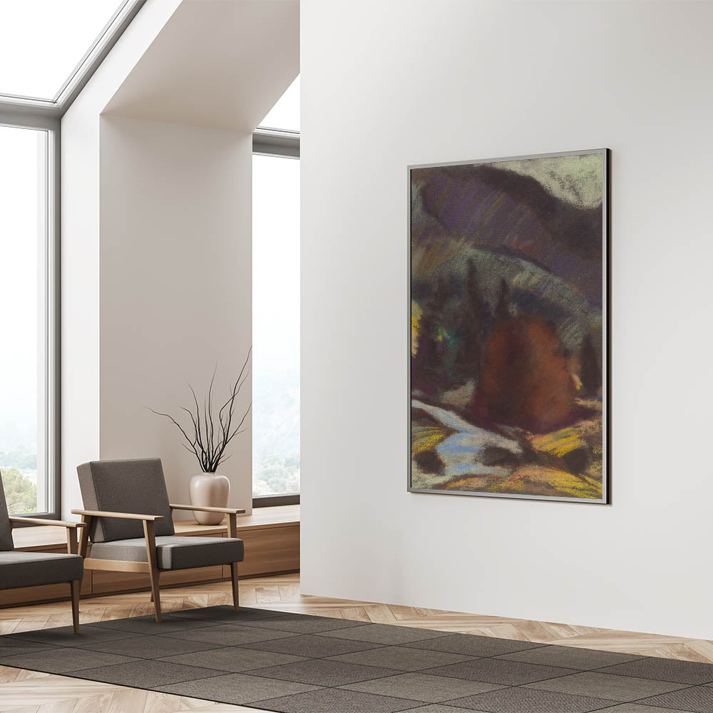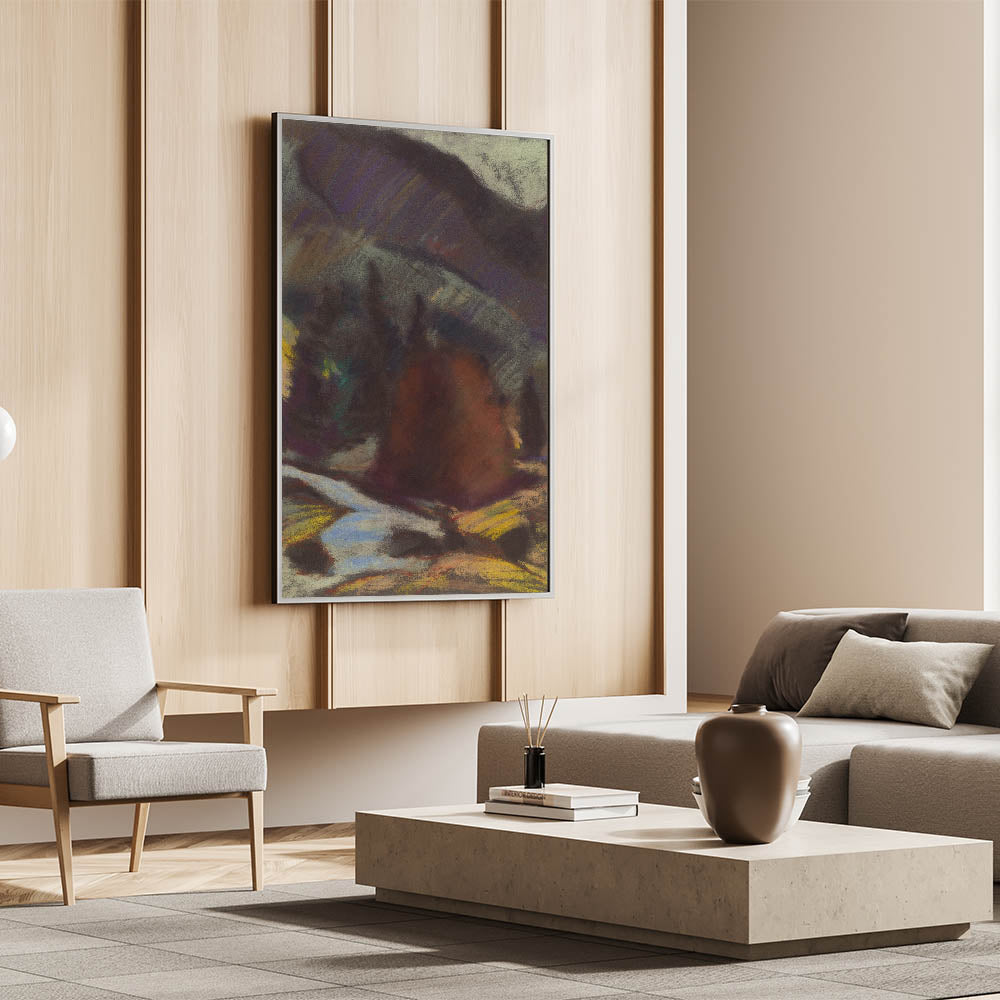 Bring the serene beauty of nature into your home with this captivating Modern Wall Art. Featuring an abstract depiction of a mountain landscape, this artwork combines deep earthy tones with soft highlights of blue and yellow, creating a harmonious and tranquil composition. Perfect for lovers of Contemporary Art, this piece effortlessly blends rugged natural elements with a sophisticated, modern aesthetic.