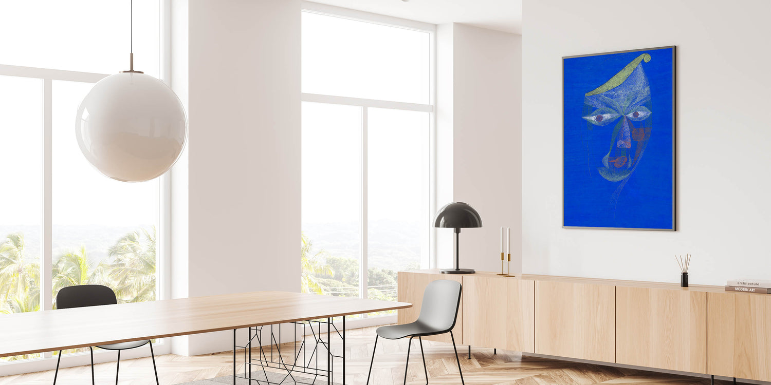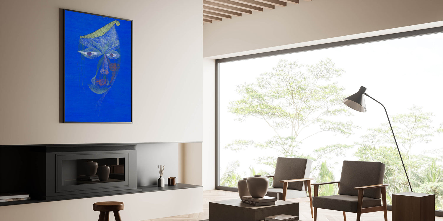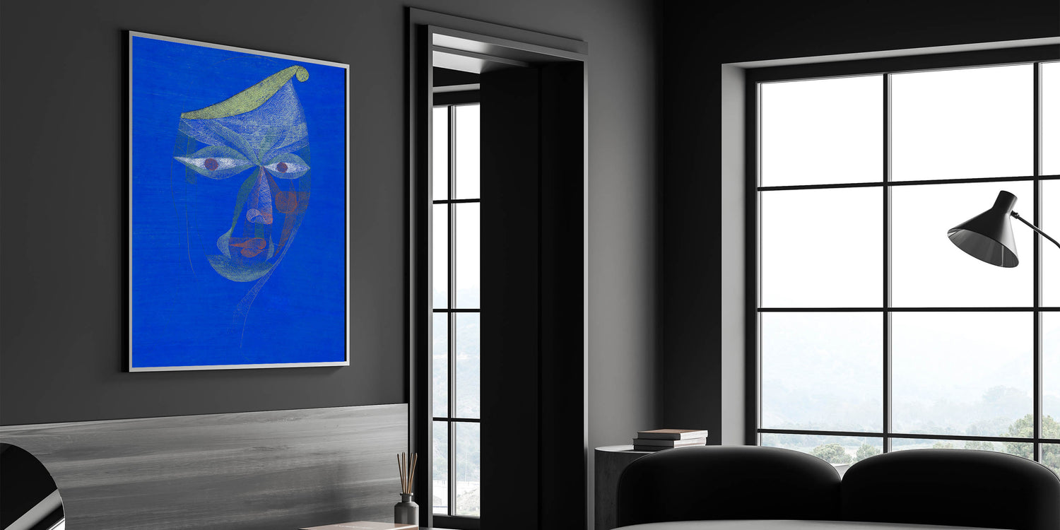 Modern Wall Art: Abstract Portrait on Bold Blue Background