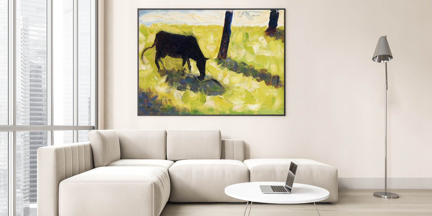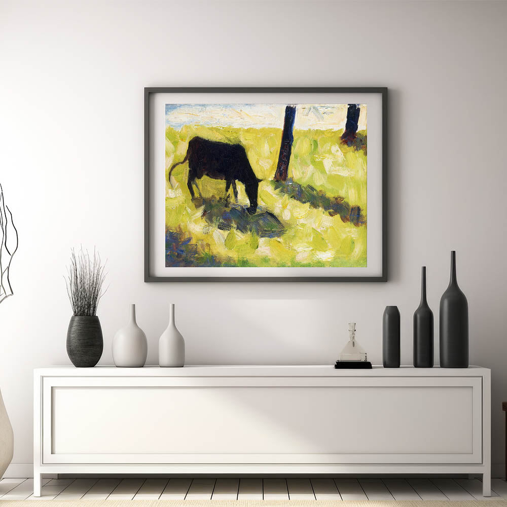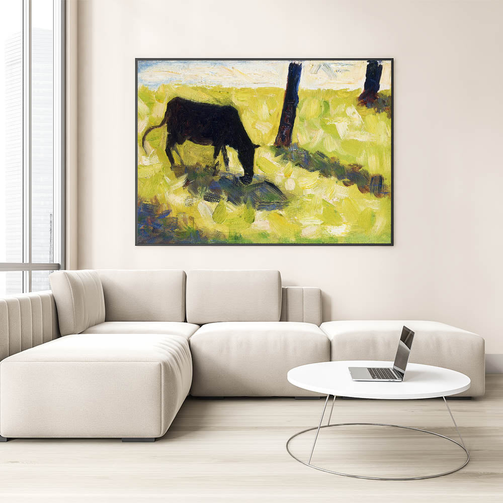 Modern Wall Art - Black Cow in a Meadow by Georges Seurat - Rustic Farm Decor