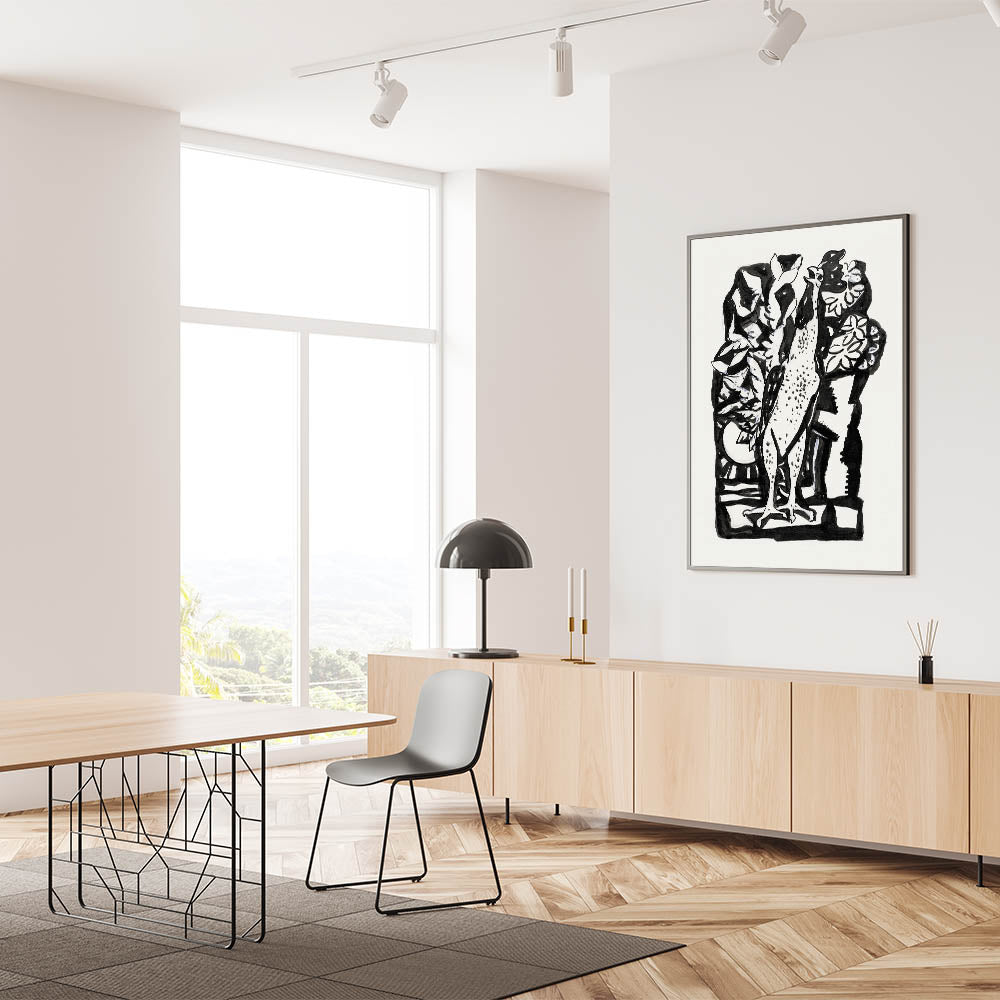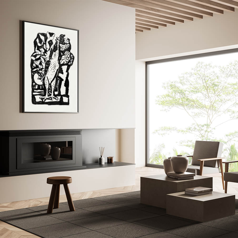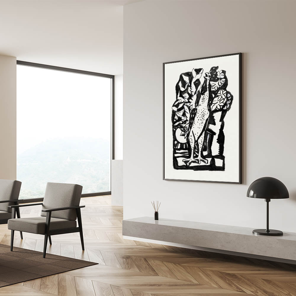 Elevate your decor with this dynamic rooster illustration, a perfect blend of modern design and natural beauty. It’s an excellent choice for those looking to bring a bold, artistic focal point to their space.