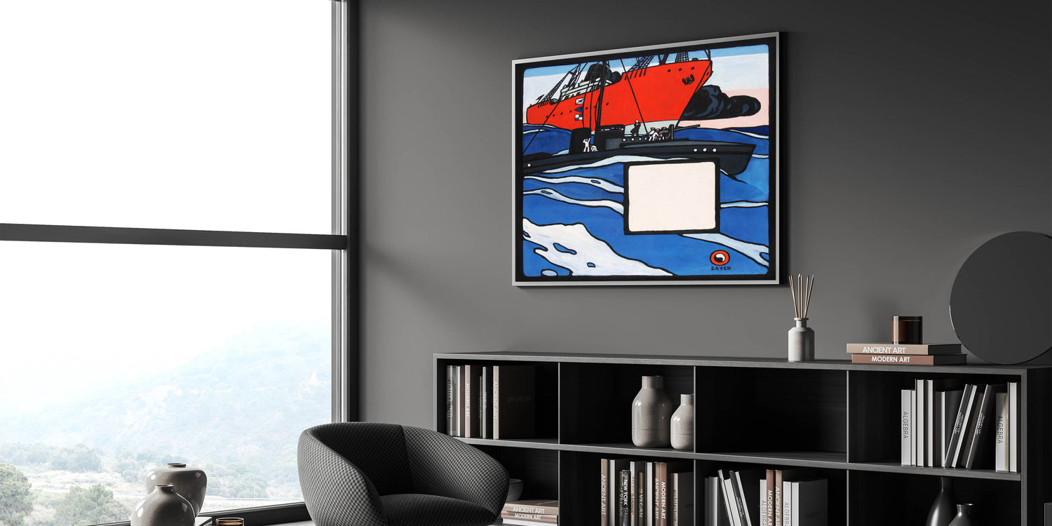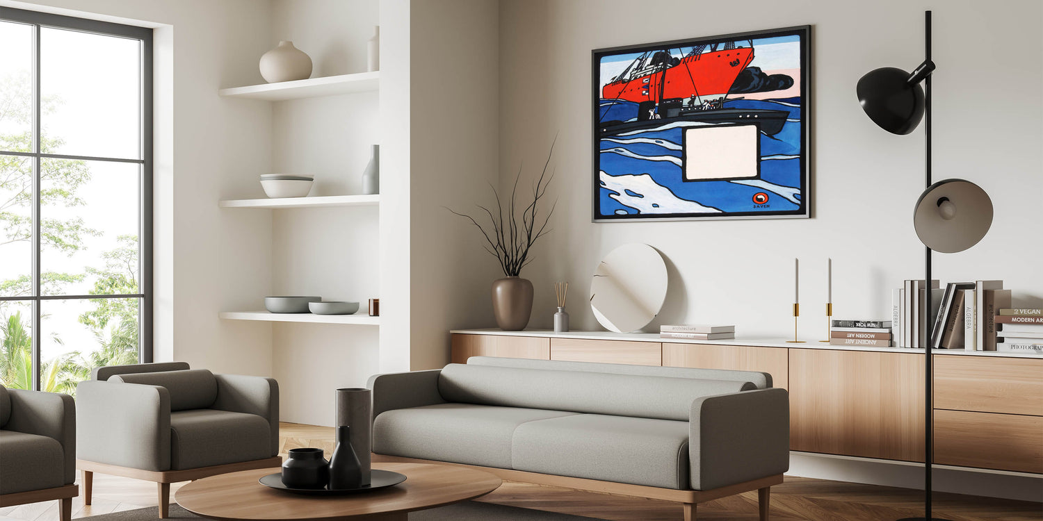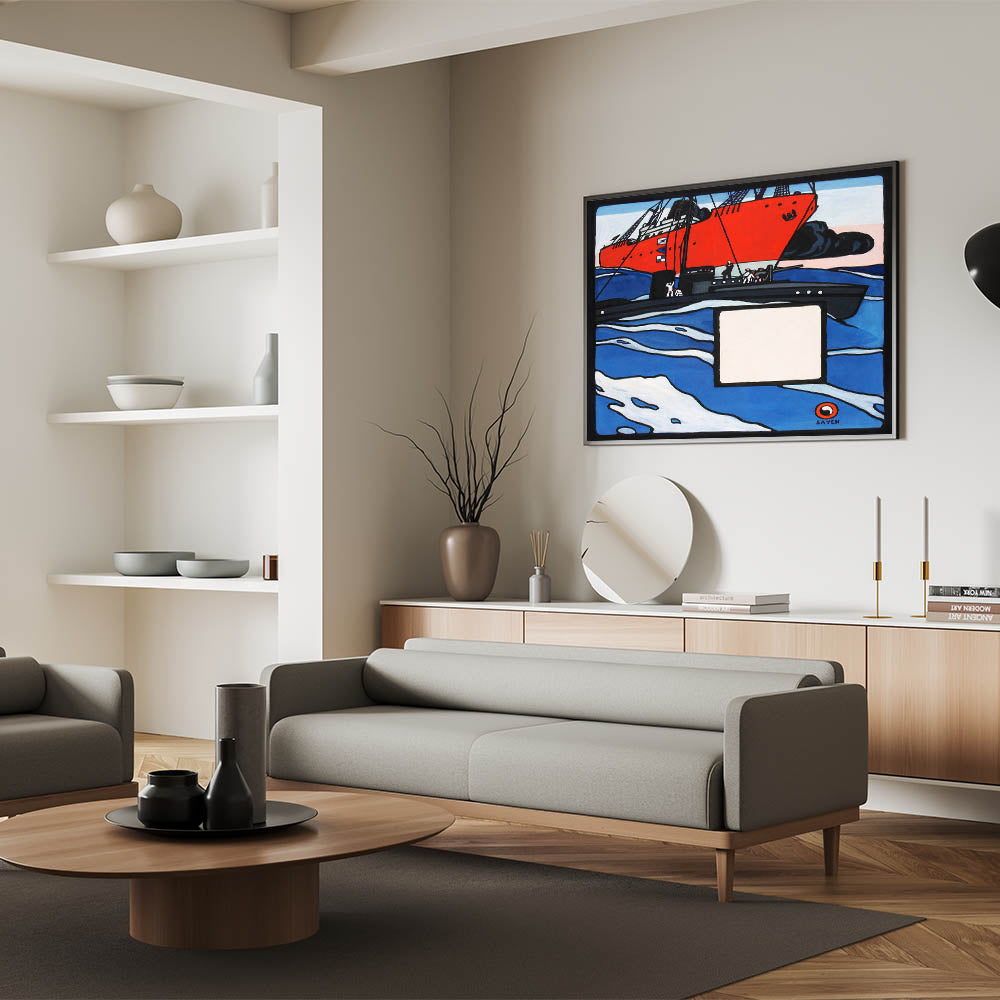 Modern Wall Art – Bold Naval Scene with Vibrant Blue and Red Accents
