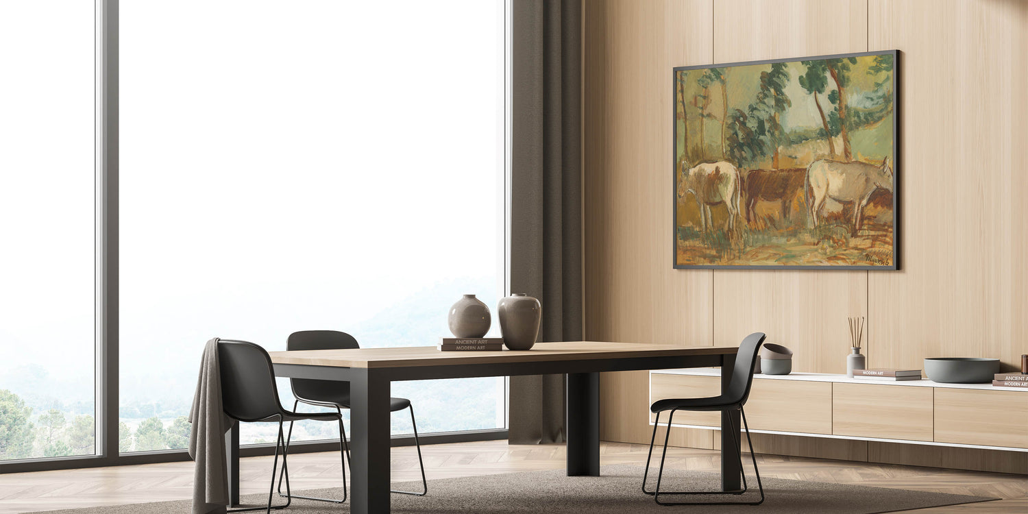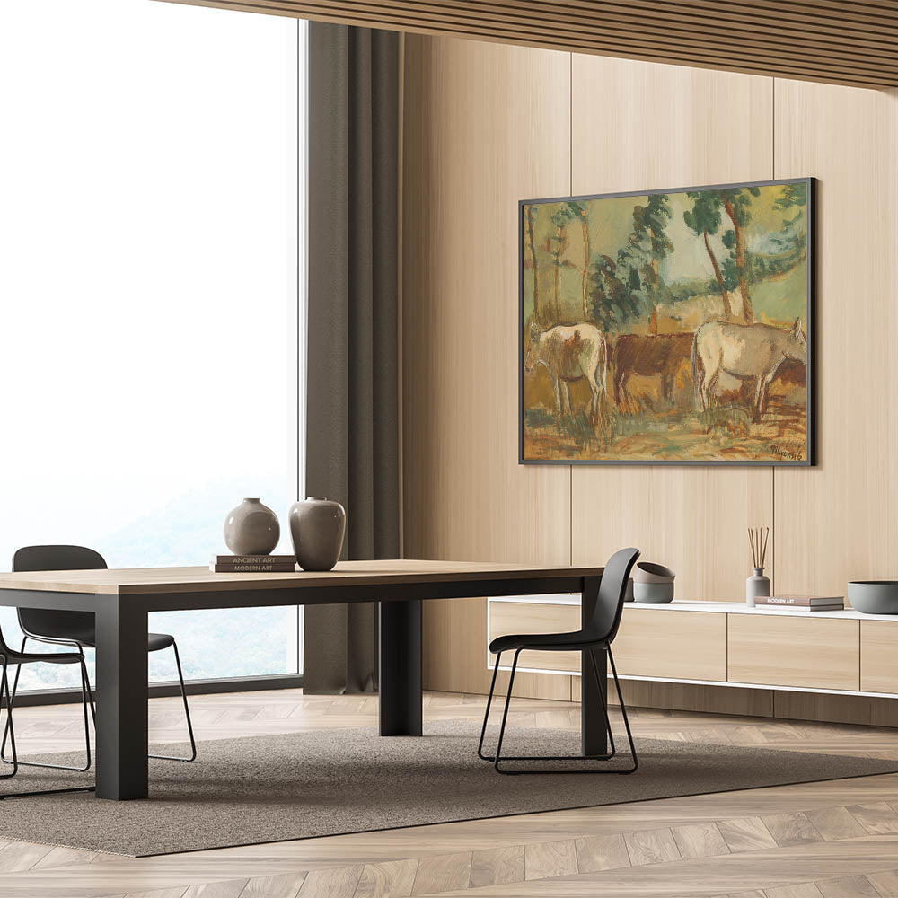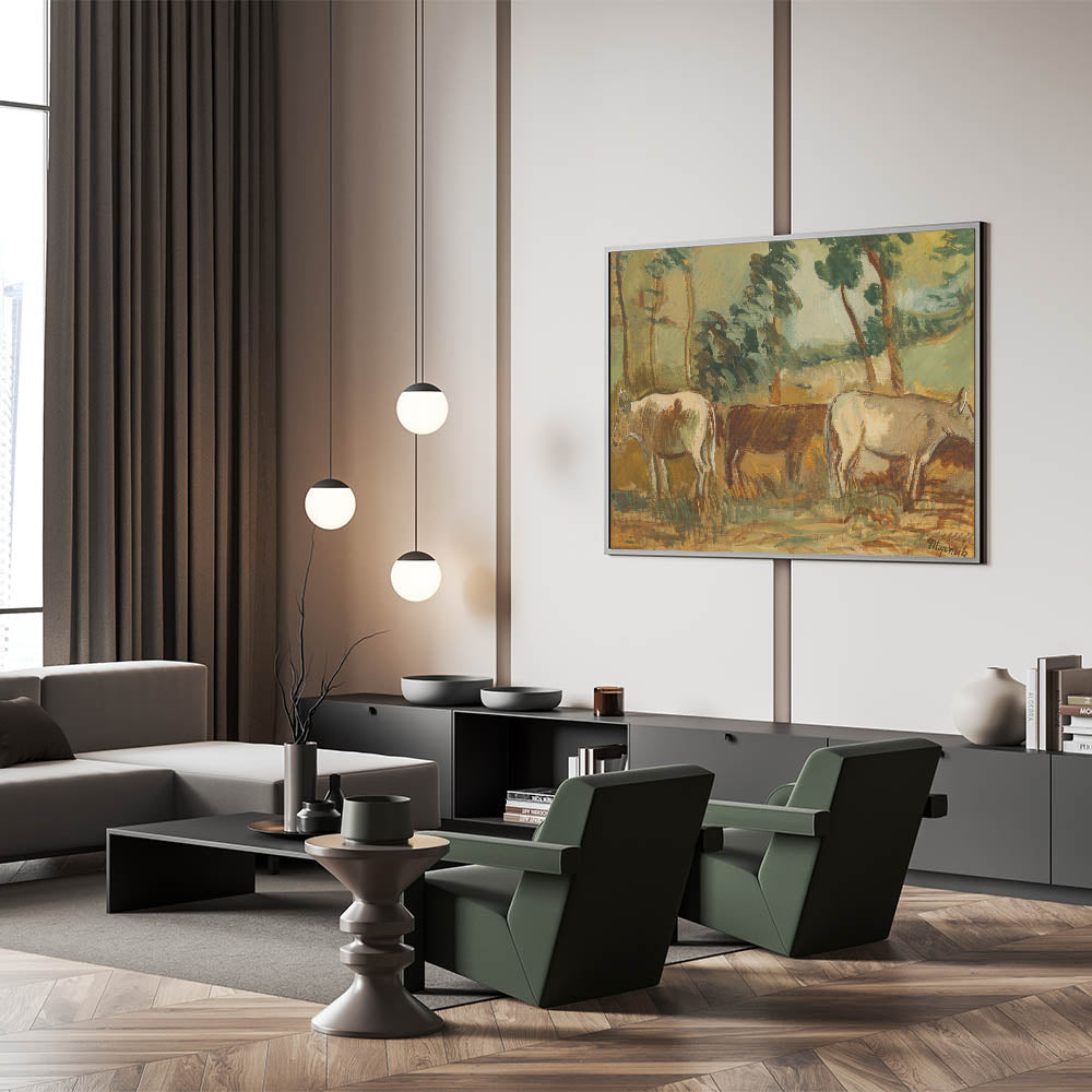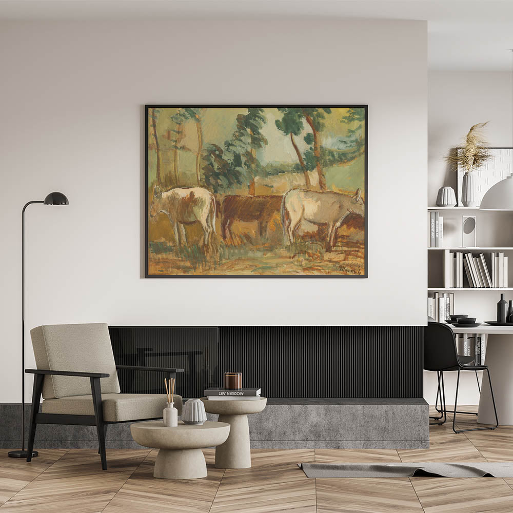 Bring the charm of the countryside into your home with this beautiful piece of Modern Wall Art, inspired by Cyprián Majerník's "Cows." This artwork captures a peaceful scene of cows grazing in a sun-dappled field, with warm earthy tones that evoke the simplicity and beauty of rural life. Ideal for rustic or farmhouse-style decor, this piece brings a natural and calming presence to any room.