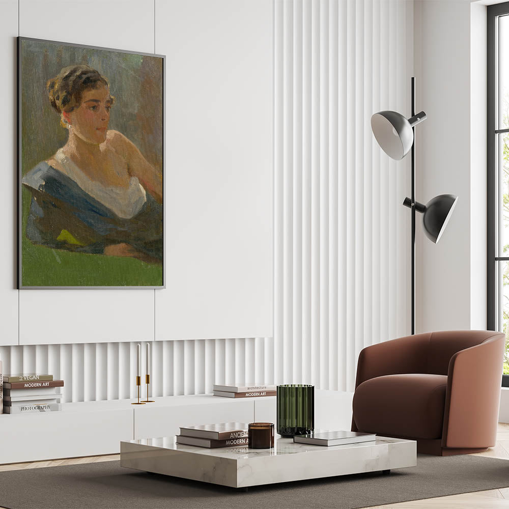 Introduce an air of elegance and refinement to your decor with this Modern Wall Art piece, an intimate portrait capturing the serene beauty of a resting lady. Inspired by classic portraiture, this artwork offers subtle brushstrokes and warm tones that create a calming and inviting atmosphere. Ideal for those seeking Stylish Wall Art with a vintage feel, this piece enhances both modern and traditional settings.