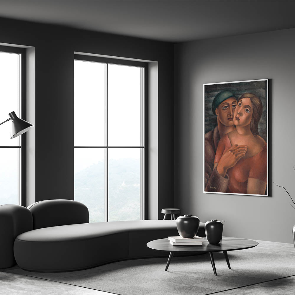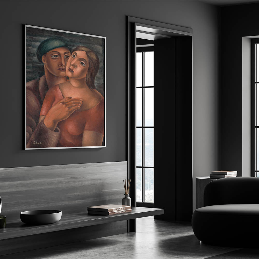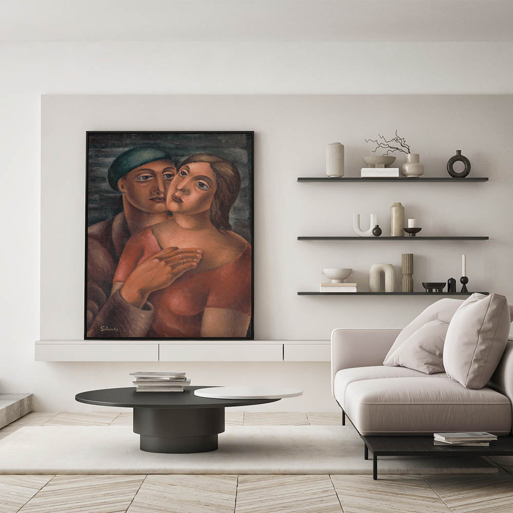 Celebrate the depth of human connection with this Modern Wall Art, featuring an expressive portrait of lovers rendered in warm, earthy tones. The tender composition, with its bold brushstrokes and harmonious colors, captures the essence of intimacy and emotion. This piece is a striking example of Contemporary Art, blending traditional portraiture with modern artistic expression.
