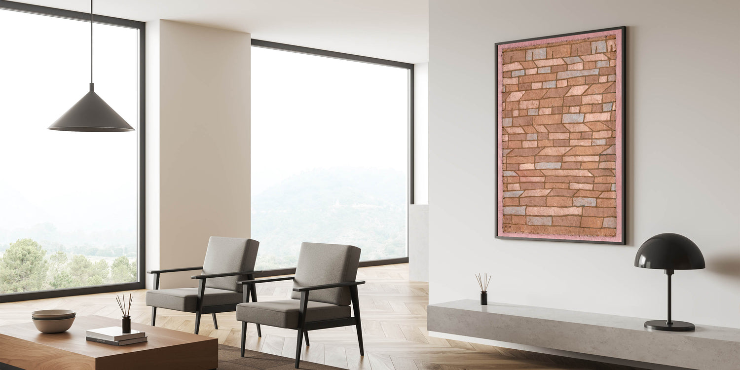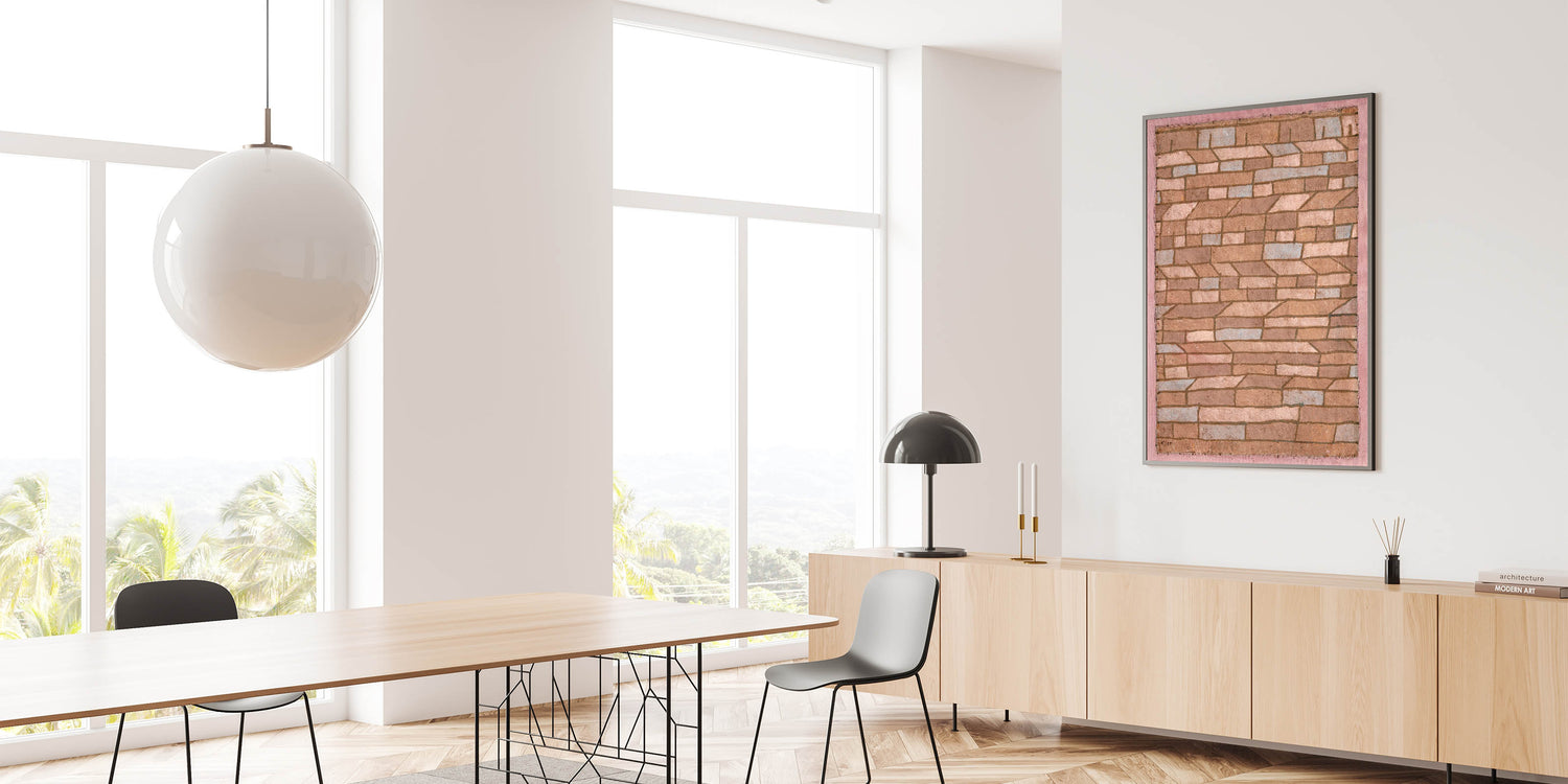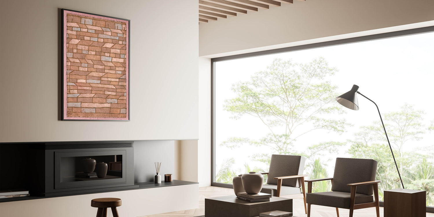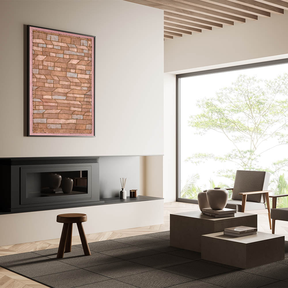 Add a refined touch to your walls with this geometric print, blending warmth and structure for a versatile and stylish decor piece.