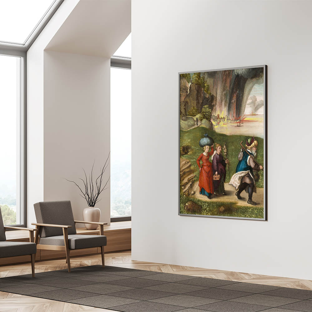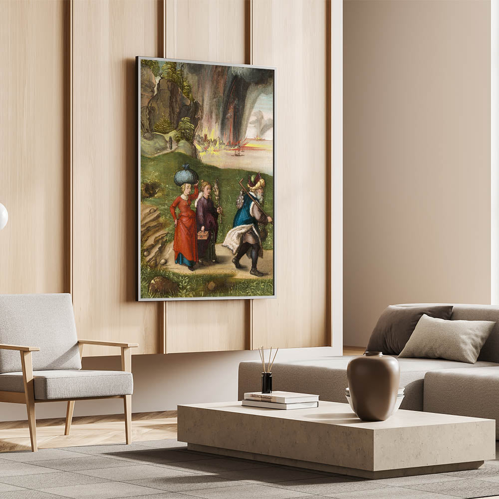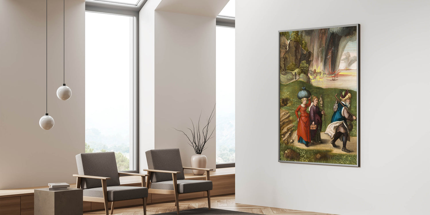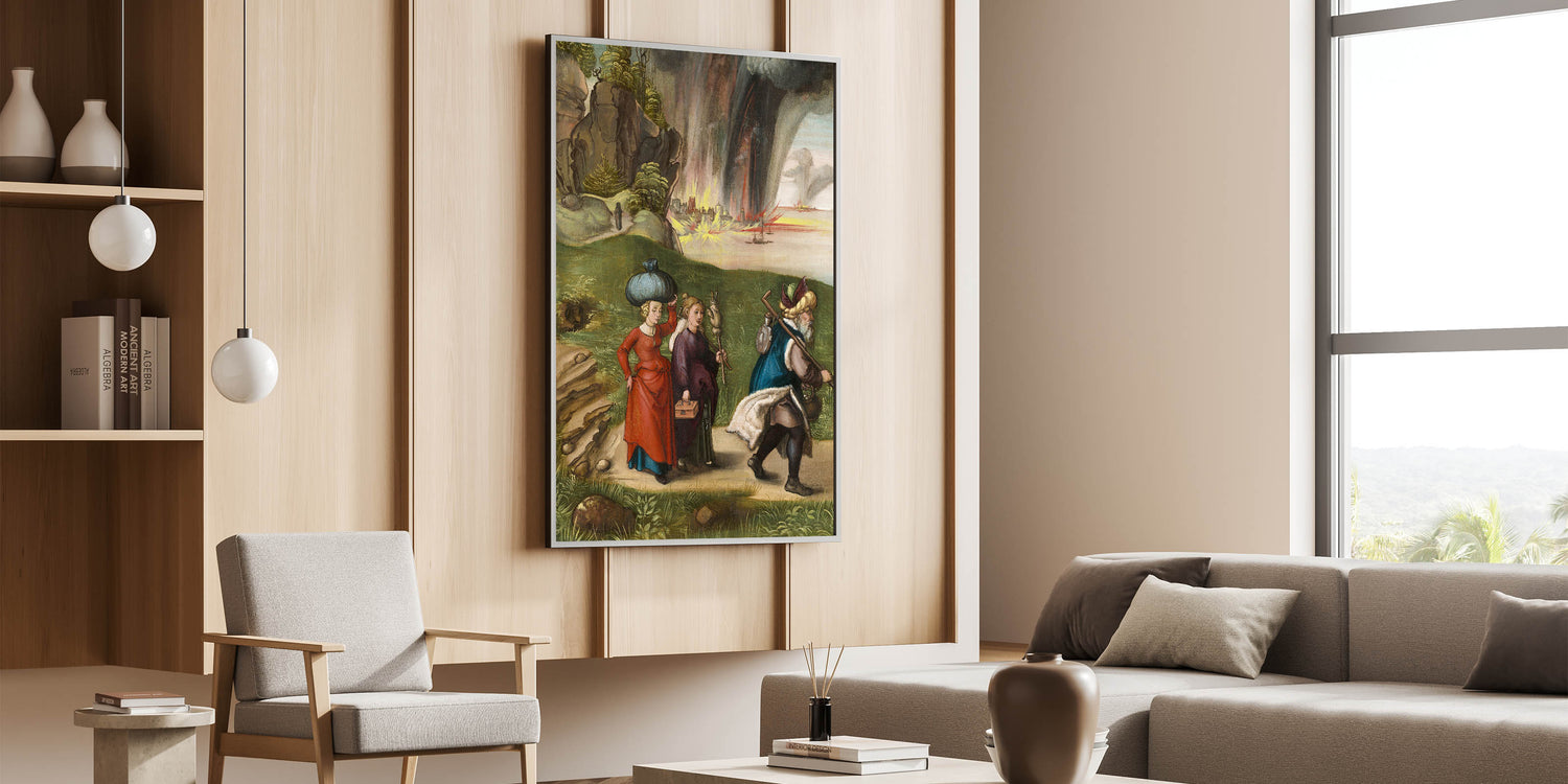 Immerse yourself in history and storytelling with this Modern Wall Art, featuring a beautifully detailed depiction of a dramatic historical scene. The intricate brushwork and vibrant colors bring to life a captivating narrative of movement and emotion. The contrast between serene landscapes and dynamic skies filled with fire and storm creates a visually stunning piece of Contemporary Art with timeless appeal.