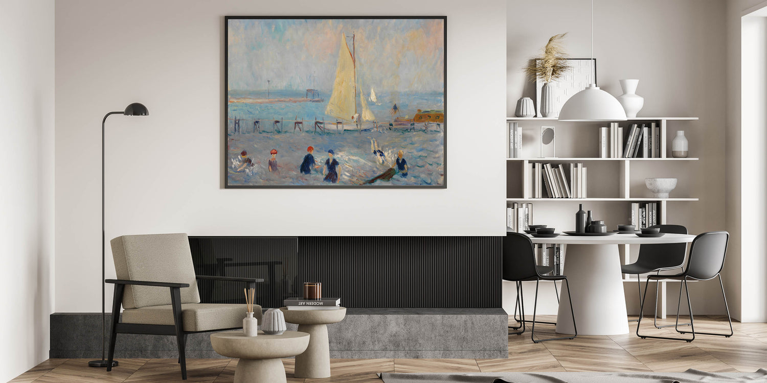 Modern Wall Art - Lively Seascape with Bathers | Coastal Beach Scene