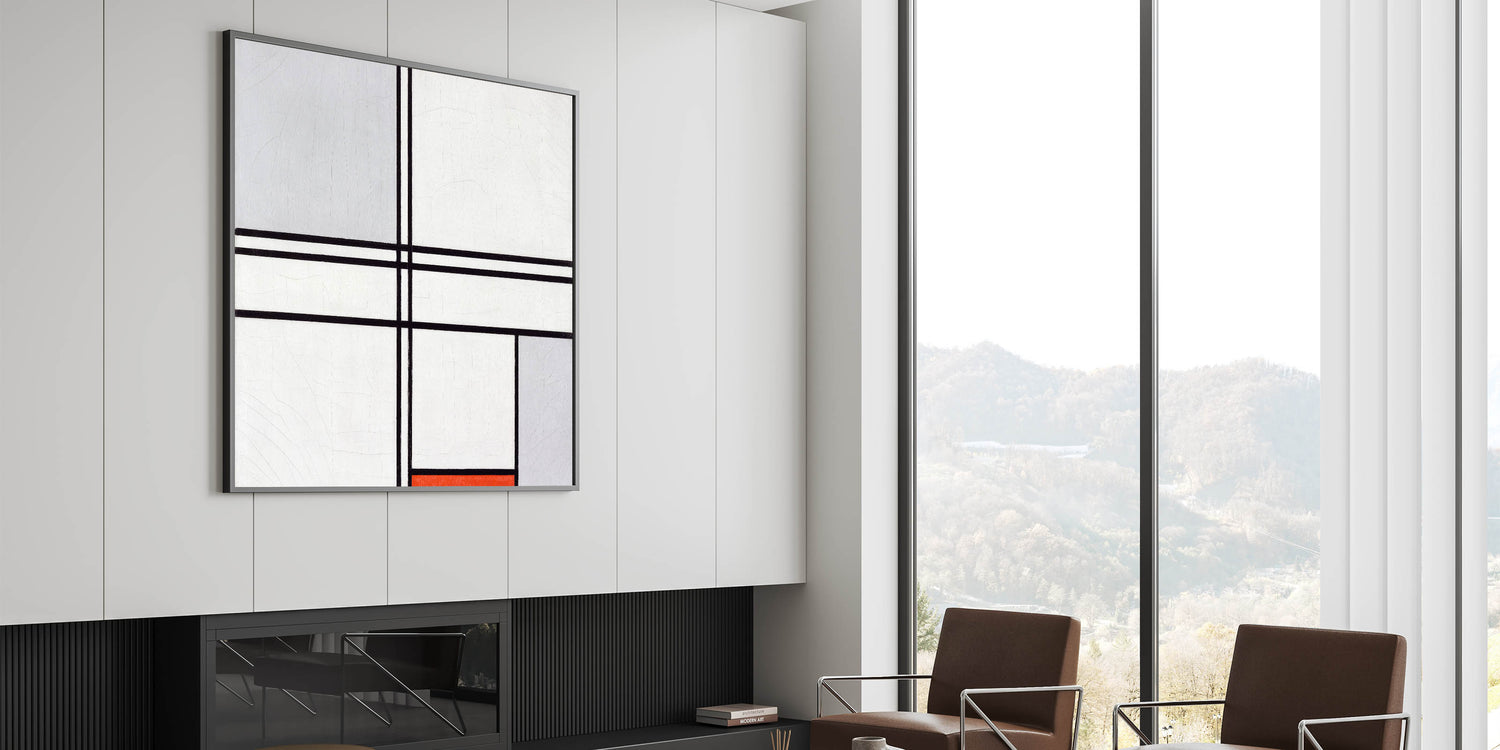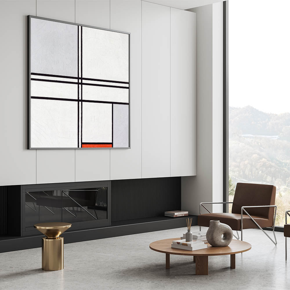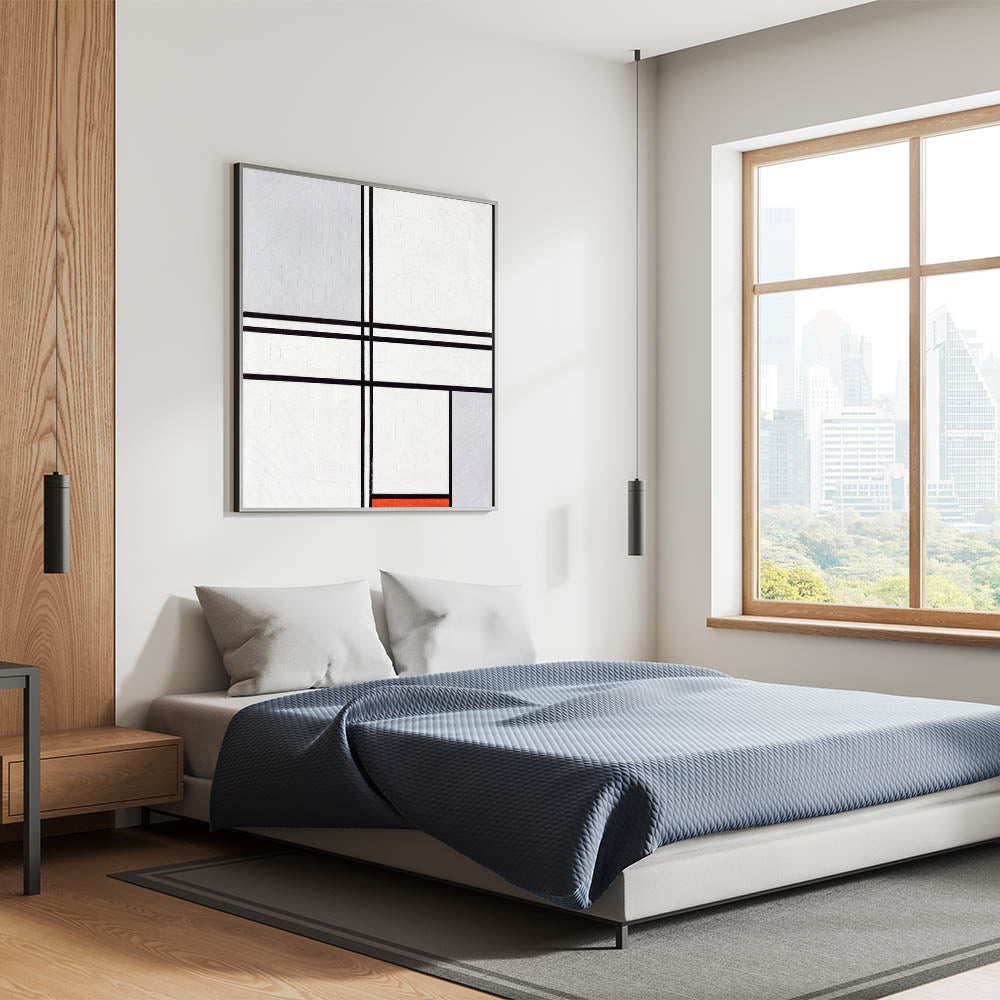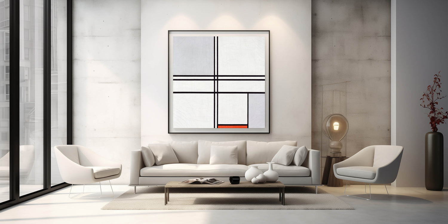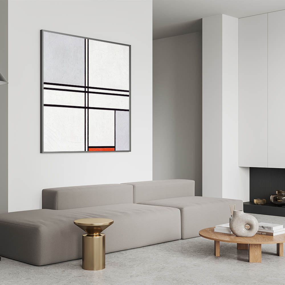 Modern Wall Art - Minimalist Composition in Gray, White, and Red