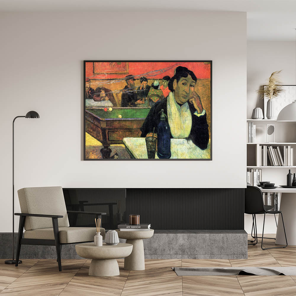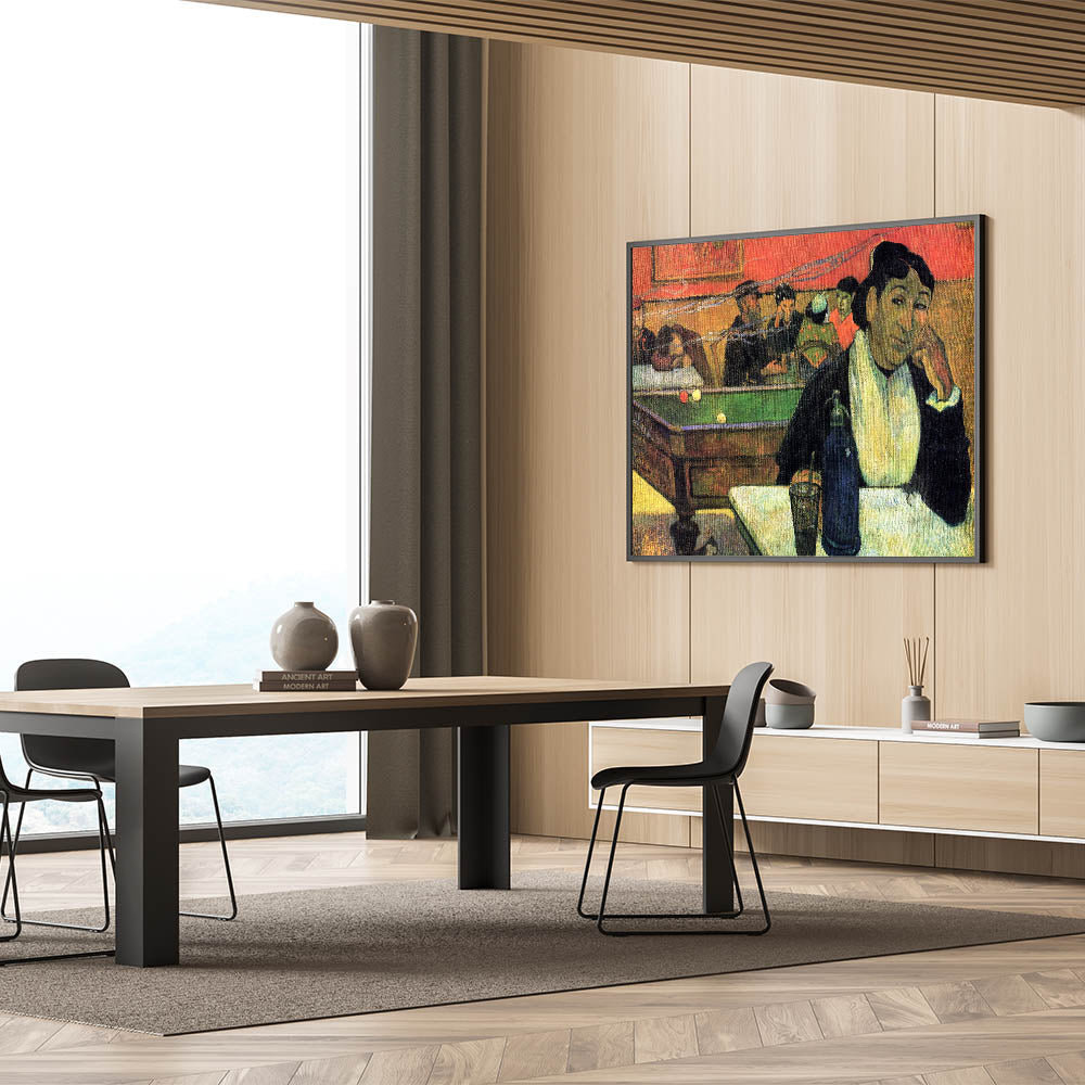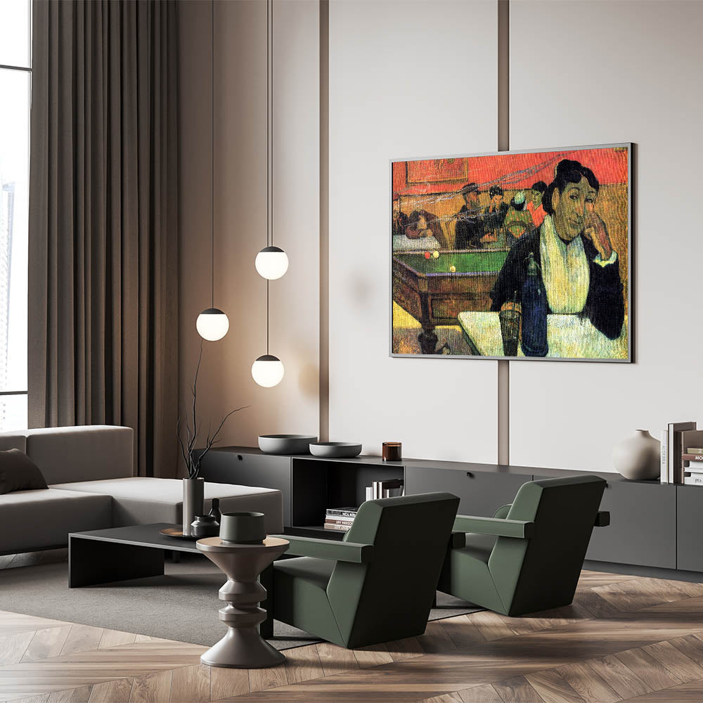 This stunning piece of modern wall art showcases Paul Gauguin’s Night Café, Arles (1888), capturing the warm, vibrant essence of a late-night scene. With rich colors and expressive figures, Gauguin brings the ambiance of a cozy café to life, creating a narrative that invites viewers into the moment. Perfect for lovers of impressionist art, this artwork is ideal for adding a sense of warmth, character, and artistic sophistication to contemporary spaces.