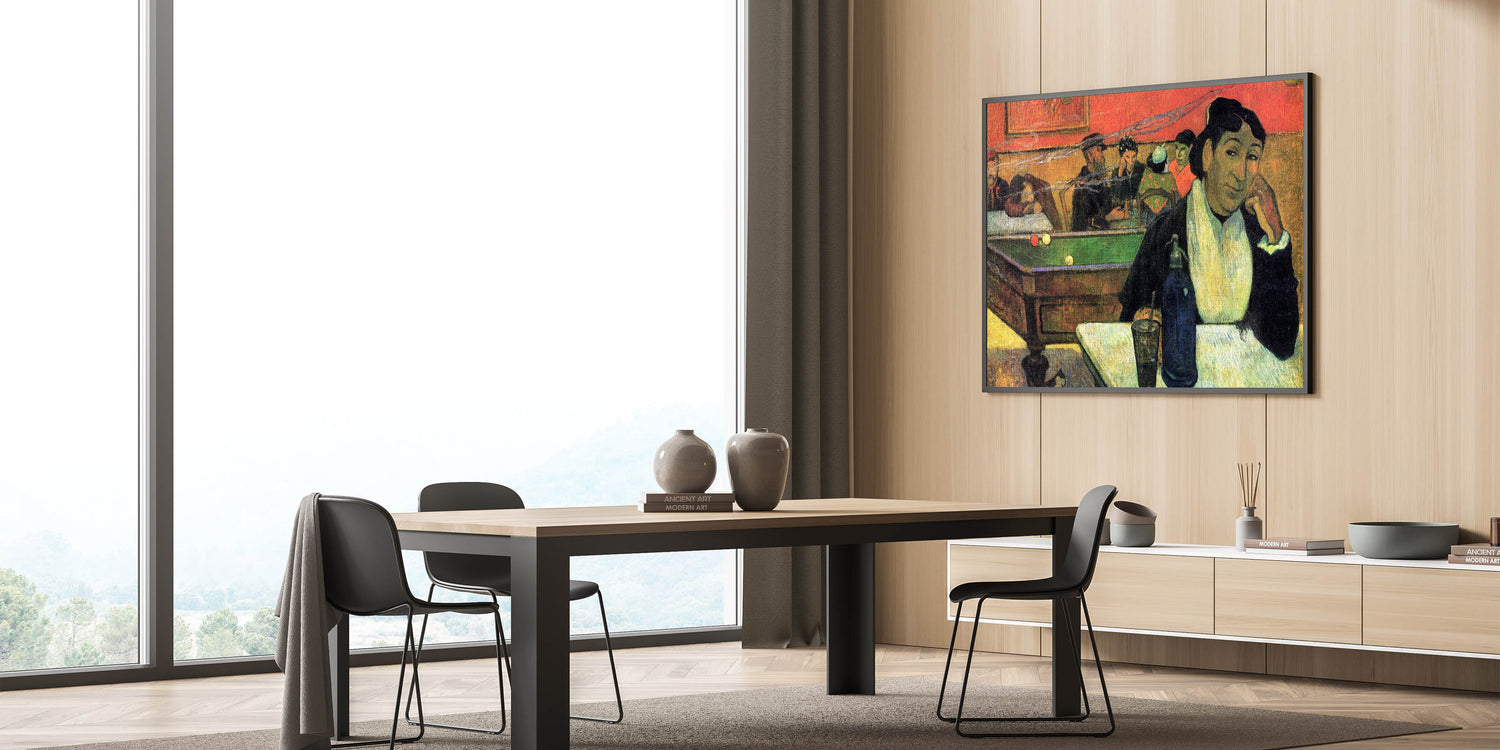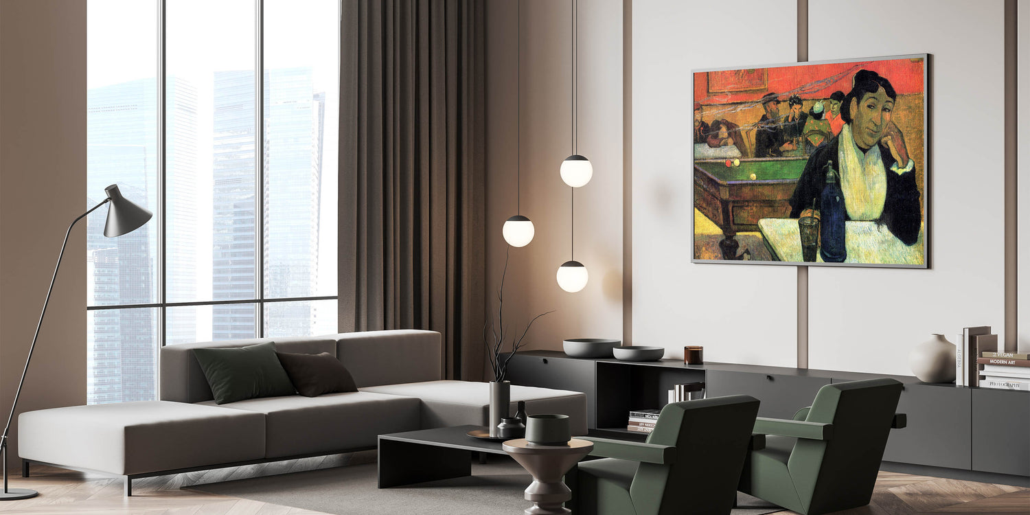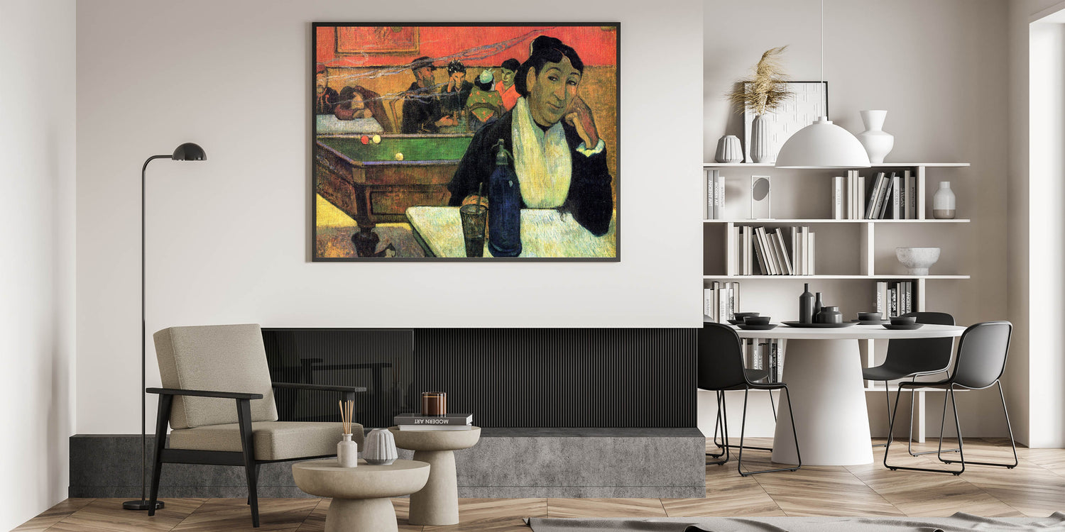 This stunning piece of modern wall art showcases Paul Gauguin’s Night Café, Arles (1888), capturing the warm, vibrant essence of a late-night scene. With rich colors and expressive figures, Gauguin brings the ambiance of a cozy café to life, creating a narrative that invites viewers into the moment. Perfect for lovers of impressionist art, this artwork is ideal for adding a sense of warmth, character, and artistic sophistication to contemporary spaces.