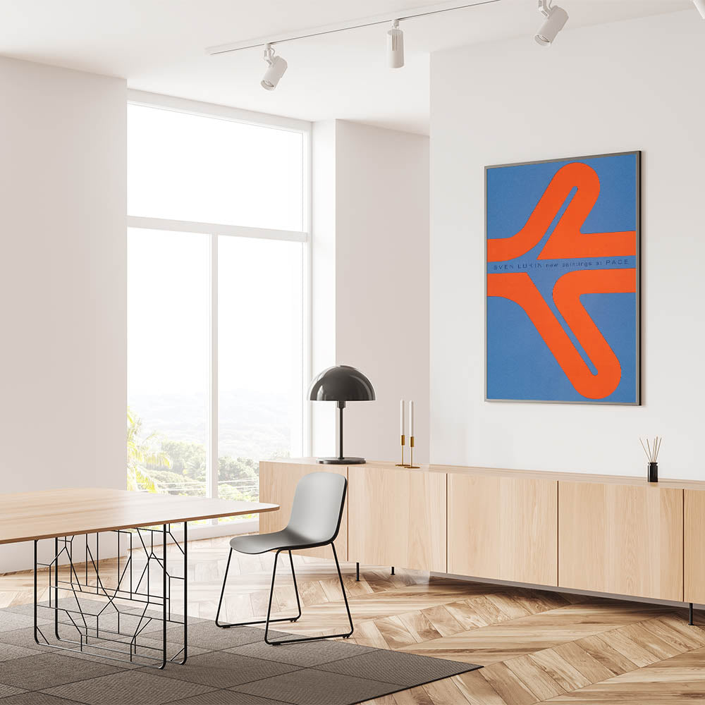 Add a splash of retro-modern flair to your space with this bold abstract print. Featuring striking geometric shapes in vibrant orange set against a cool blue background, this piece embodies the mid-century aesthetic and is perfect for fans of minimalist, retro-inspired decor. Ideal for adding a pop of color to any room, this modern wall art print brings an eye-catching, stylish touch to your space.