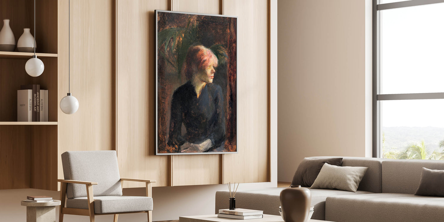 - Modern Design Elements: The portrait’s composition and warm tones add a modern flair to classic art.