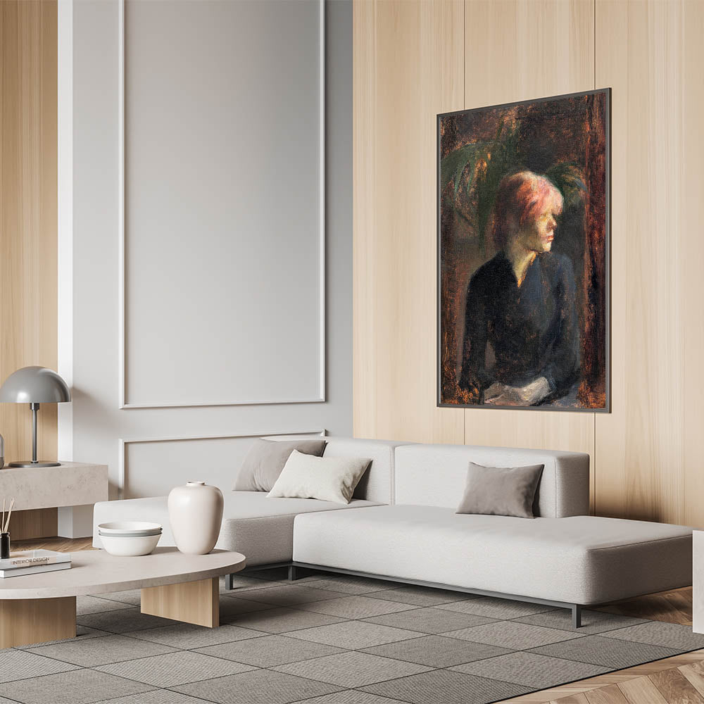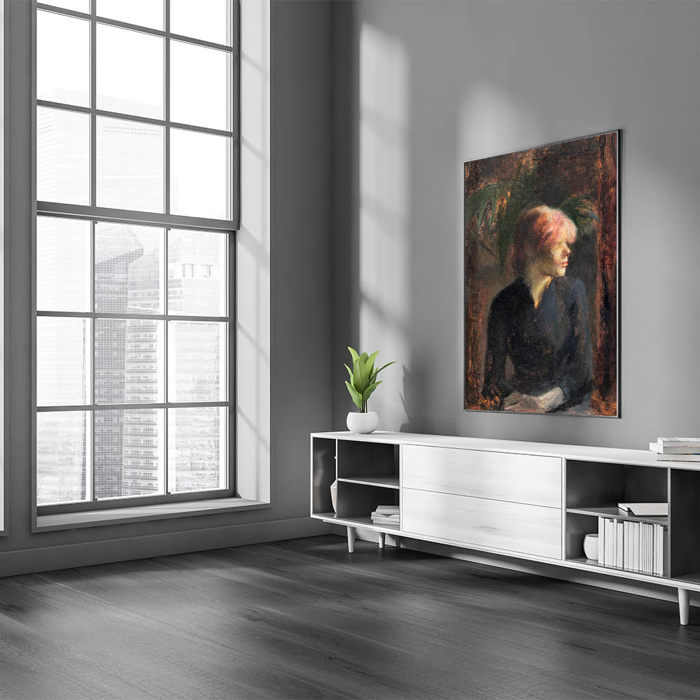 This unique portrait combines contemporary and vintage influences, making it a stunning addition to modern interiors. With its warm palette and artistic depth, this piece is designed to complement a range of decor styles, bringing timeless beauty and sophistication into your home.