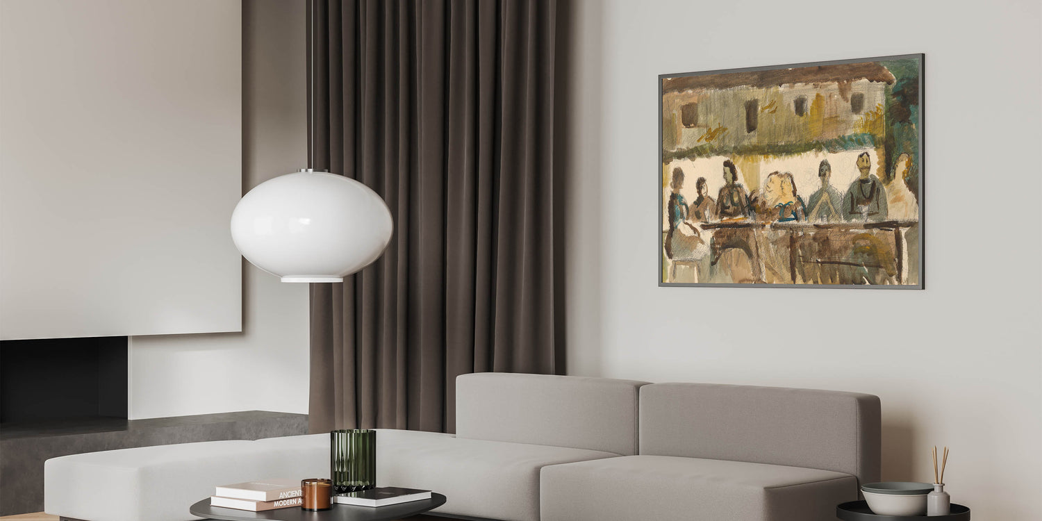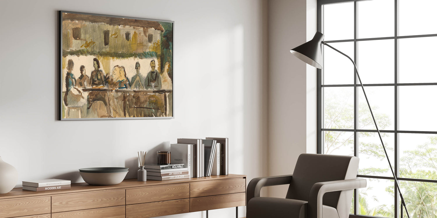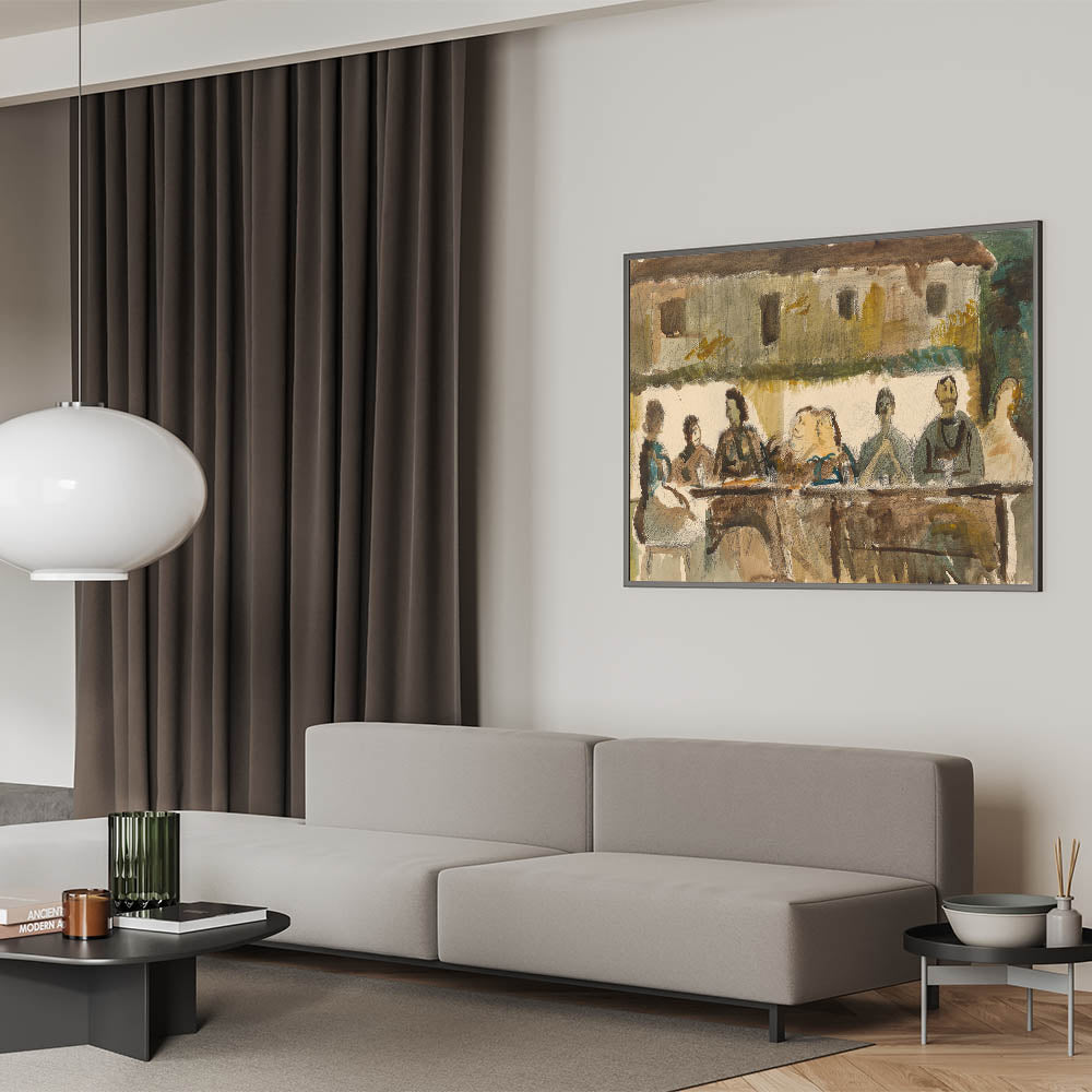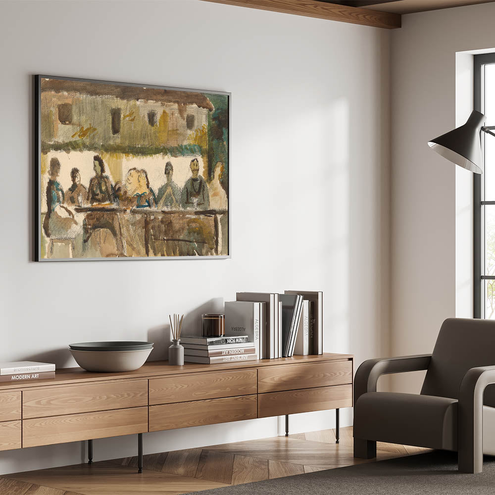 Modern Wall Art Print - Feast Scene in Earthy Tones - Unique Decor Piece