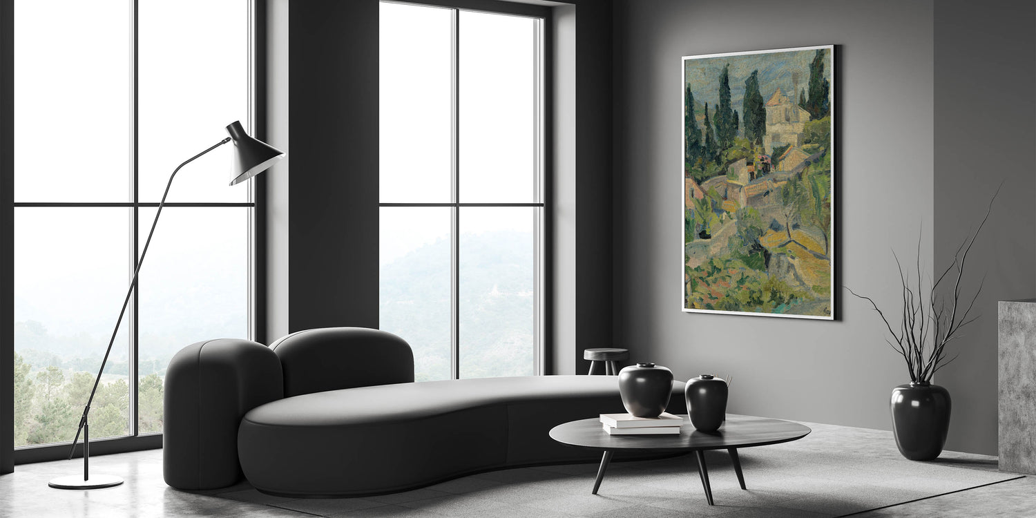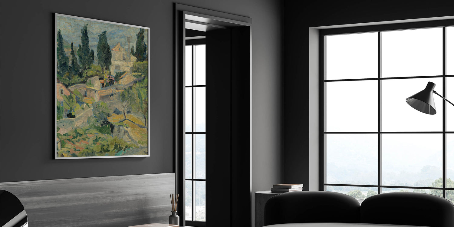 Bring the tranquil beauty of nature into your space with "Rijeka Landscape," a timeless piece of modern wall art. This captivating artwork depicts a serene hillside village surrounded by lush greenery and rustic charm. With its soothing earth tones and delicate brushstrokes, this contemporary art piece is a perfect choice for trendy home decor that seeks to blend modern design elements with natural inspiration.
