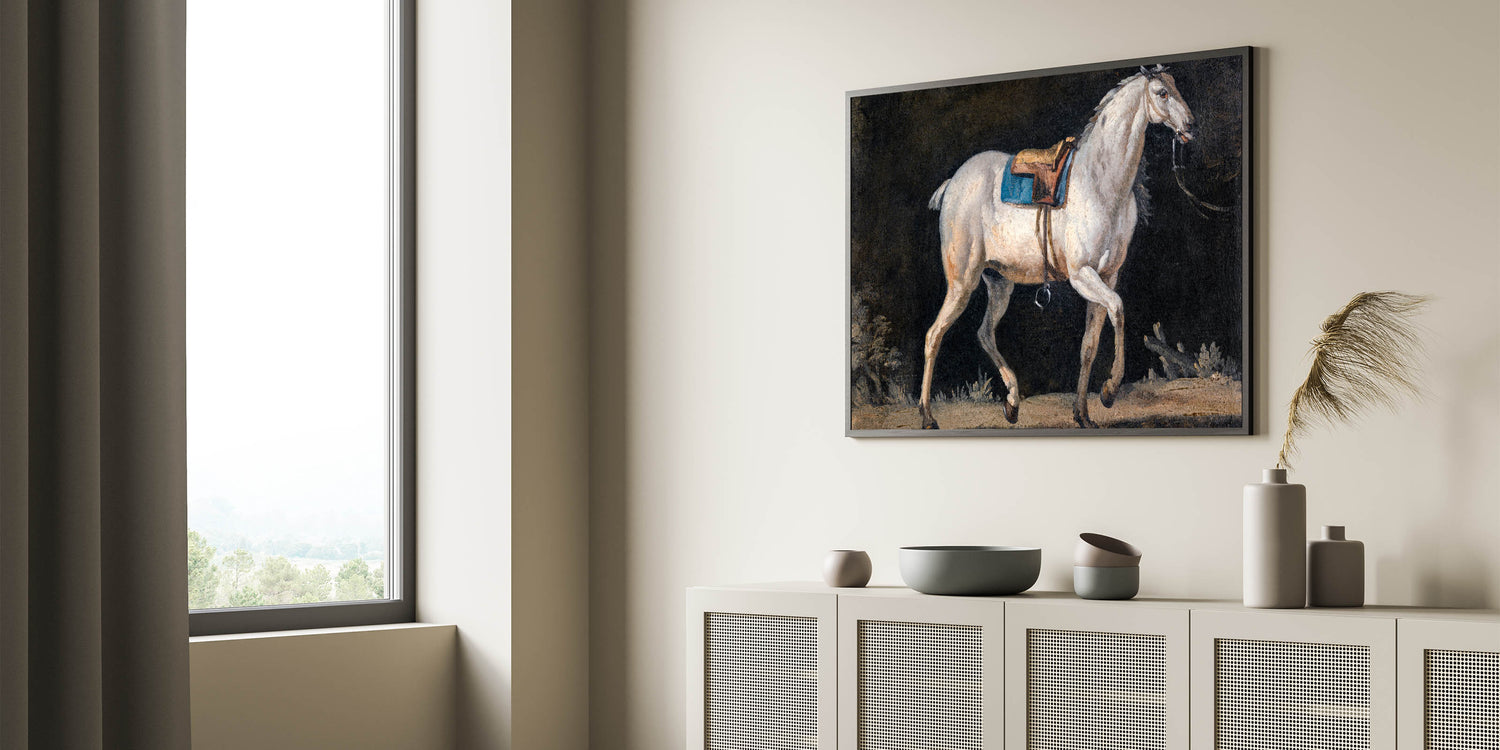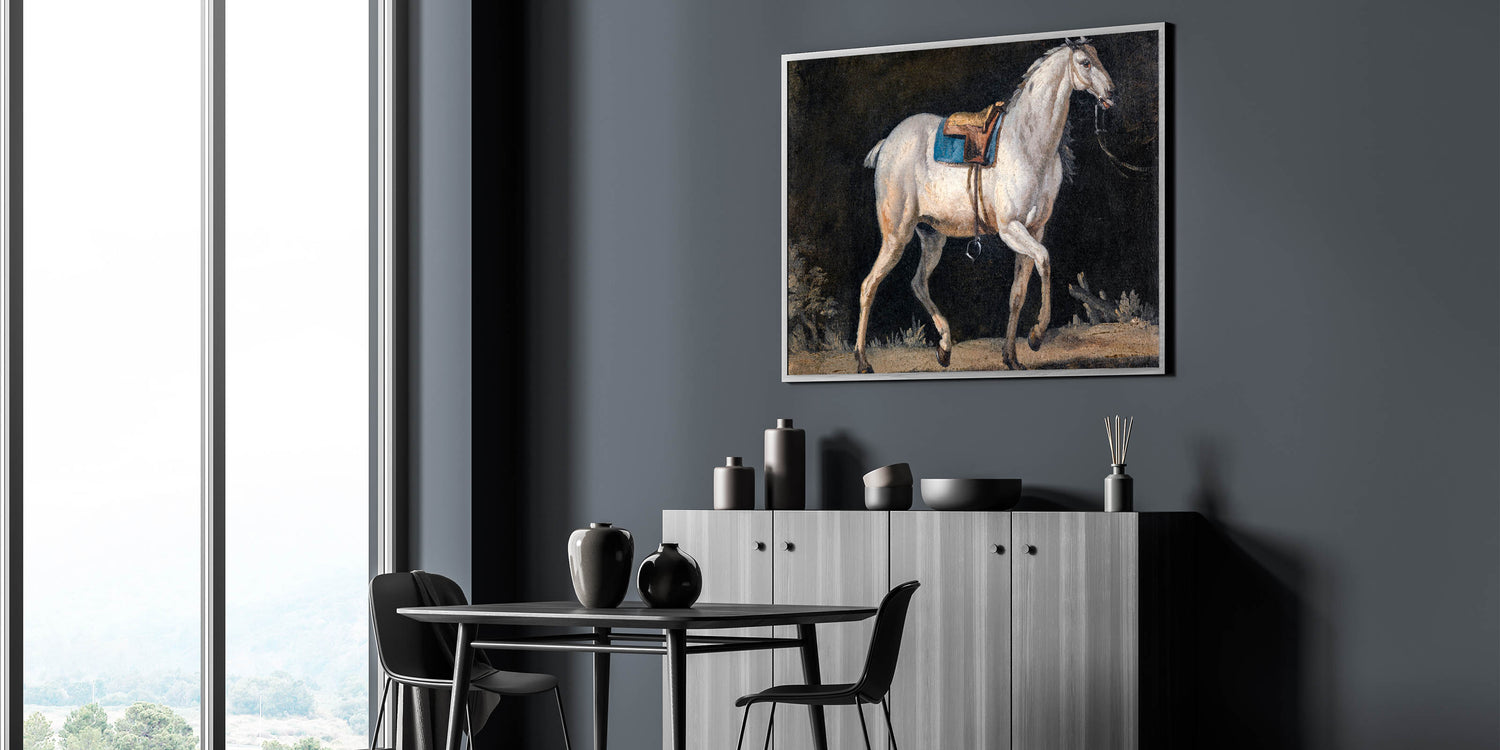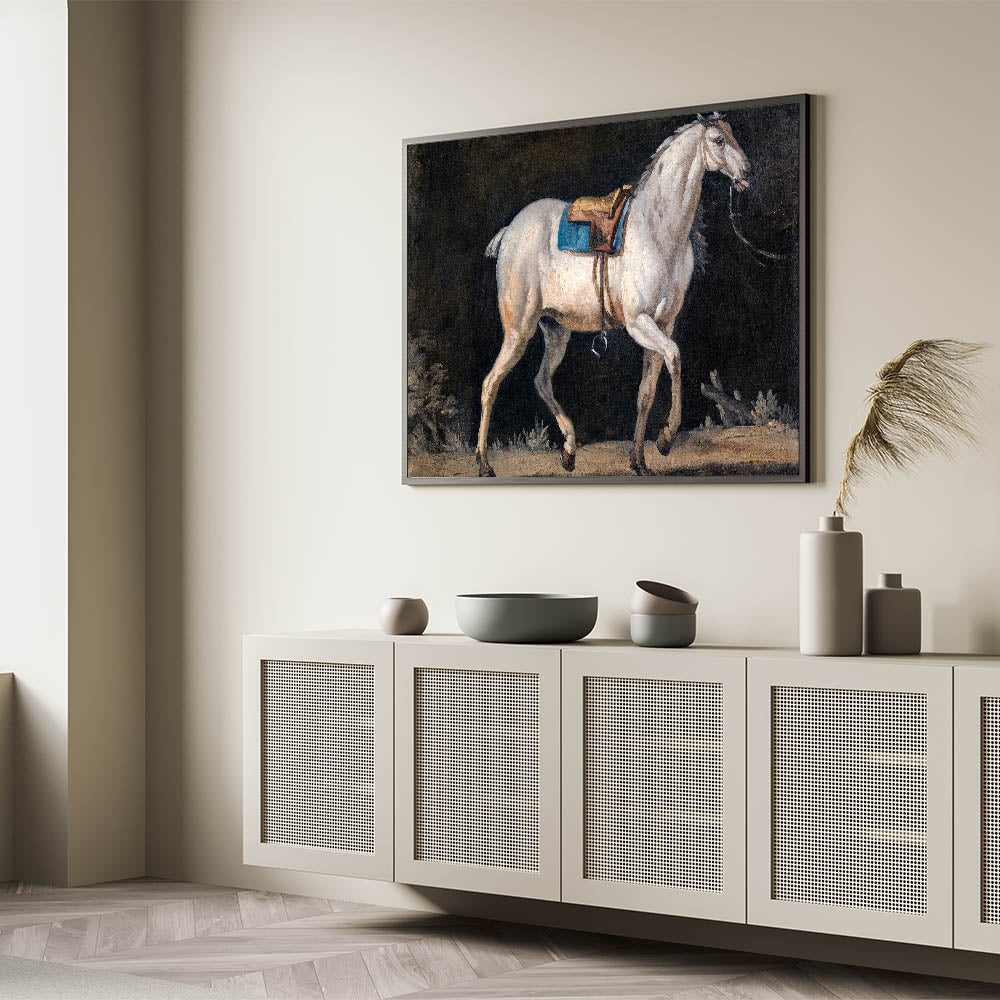 Add a touch of timeless elegance to your home with this exquisite Modern Wall Art, featuring a saddled gray horse captured mid-motion. This stunning piece combines the grace of equine beauty with fine artistic detail, making it an exceptional addition to Contemporary Art Pieces and Trendy Home Decor. Its subdued yet dramatic tones create a sophisticated ambiance, ideal for living rooms, offices, or equestrian-themed spaces.