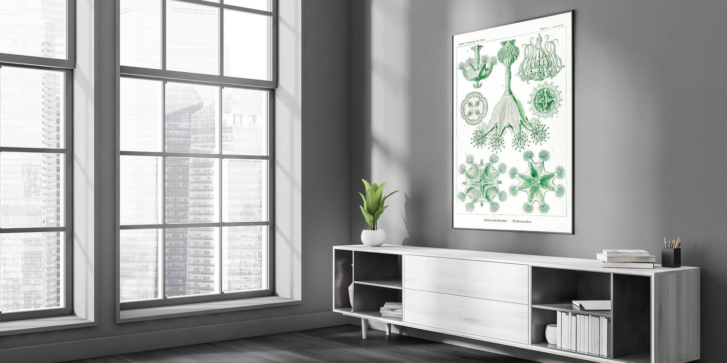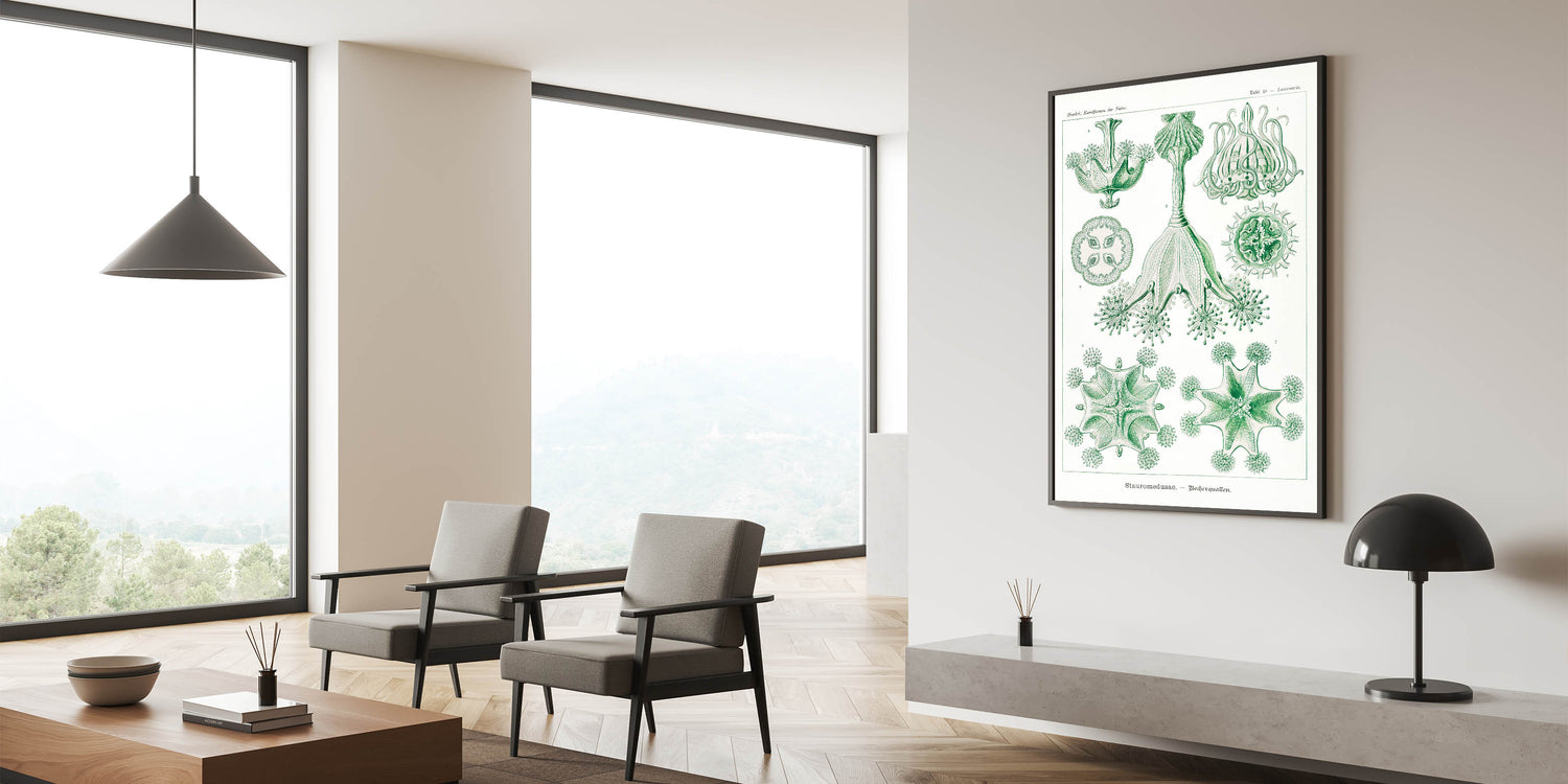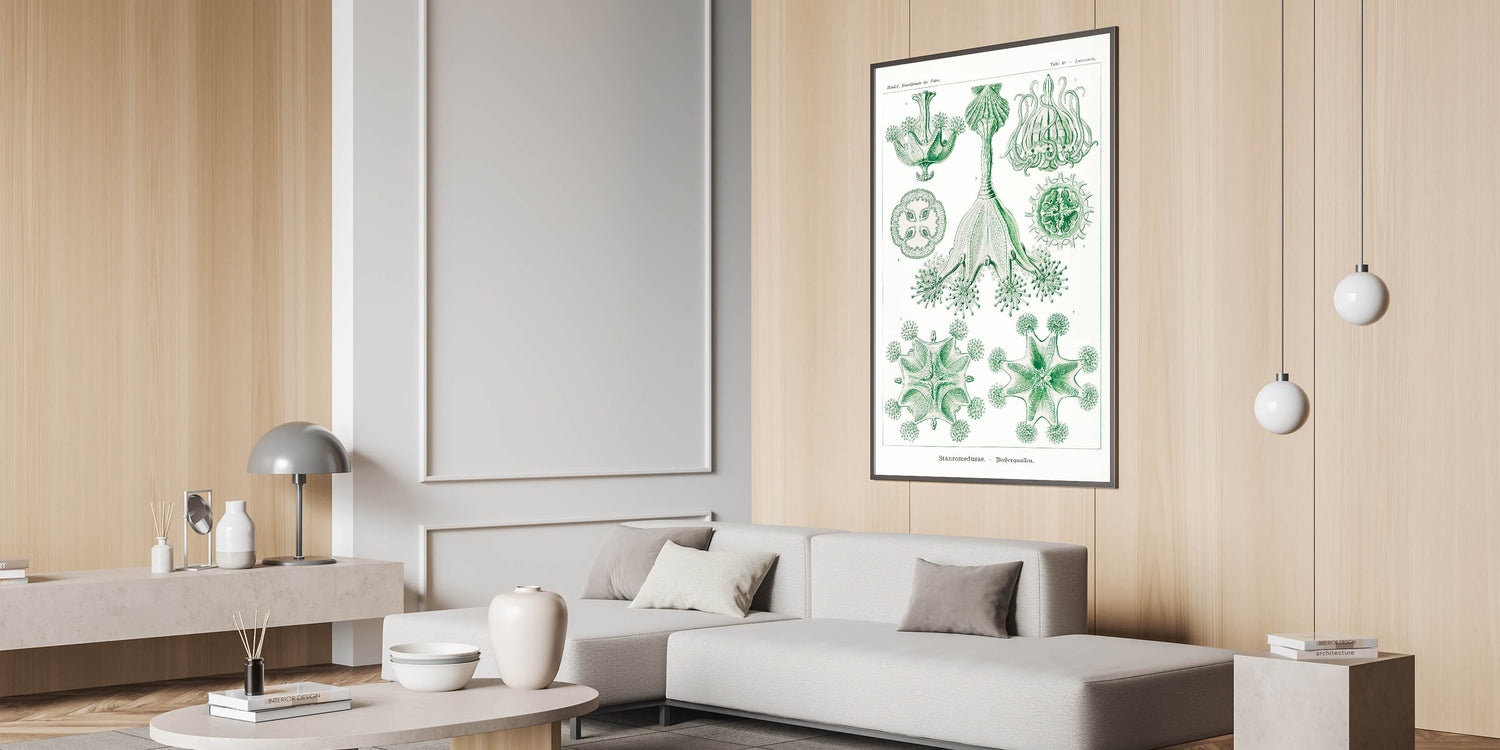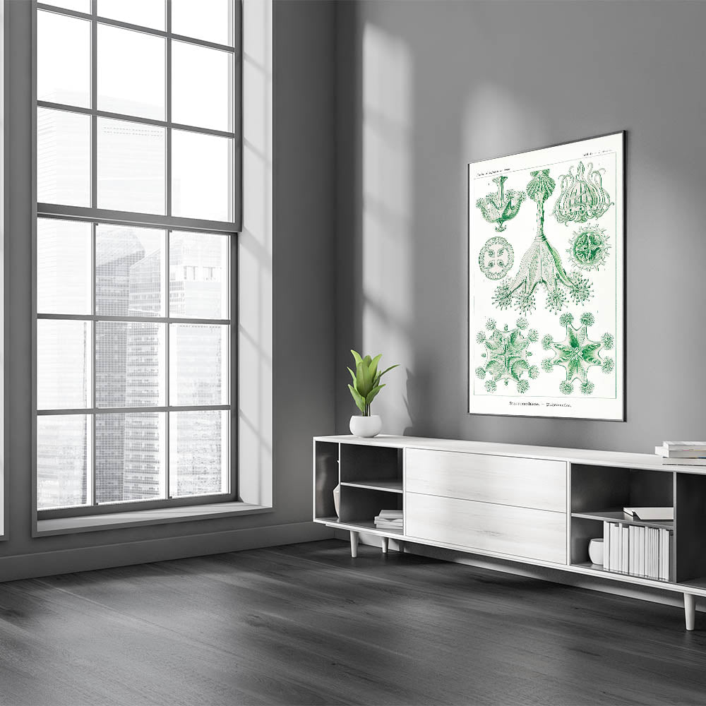 This artwork celebrates the fascinating shapes of nature, enhancing your decor with Haeckel's iconic scientific artistry.