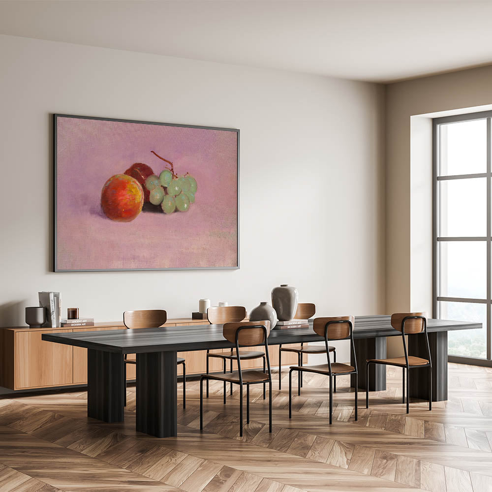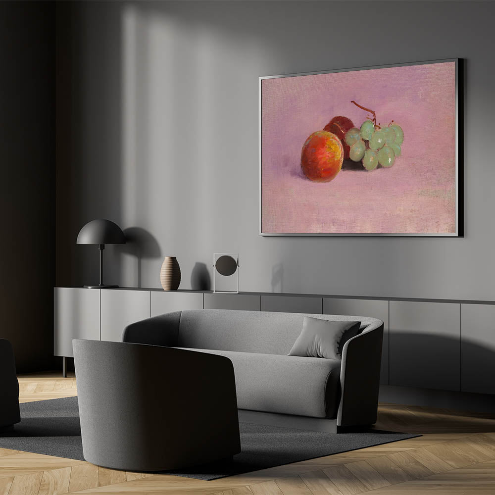 Add a touch of timeless elegance to your space with this Modern Wall Art, inspired by Odilon Redon's "Still Life with Fruit." This artwork features a gentle arrangement of fruit, with warm shades of peach, green, and pink set against a soft background. Ideal for minimalist modern decor, this piece brings a sense of calm and refinement, making it a sophisticated addition to any room.