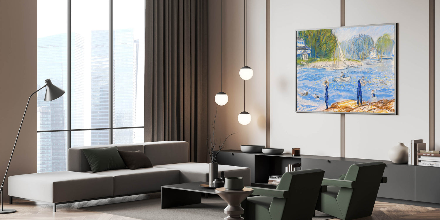 Modern Wall Art - Sunny Riverside Scene with Bathers | Serene Summer Decor