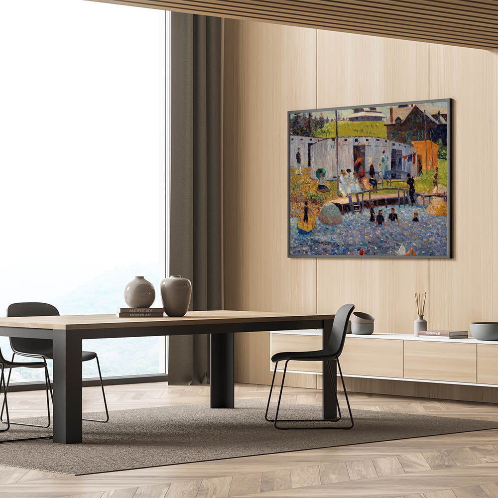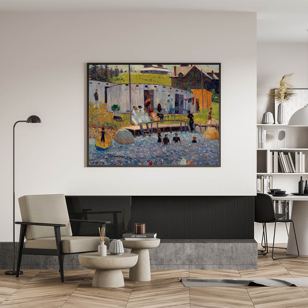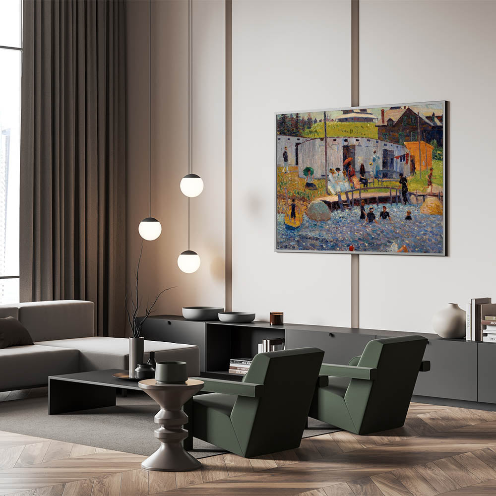 Capture the joyful essence of a summer day with this delightful Modern Wall Art, inspired by William Glackens' "The Bathing Hour" in Chester, Nova Scotia. This artwork brims with life as people gather by the water, with bright colors and lively brushstrokes that evoke warmth and nostalgia. Ideal for beach-themed or modern decor, this piece brings a sense of leisure and charm to any space.