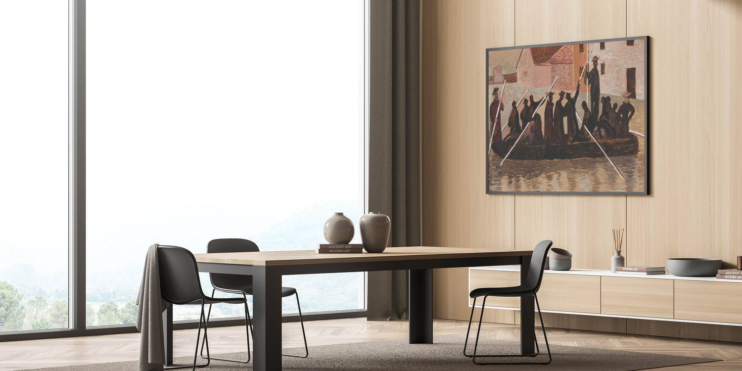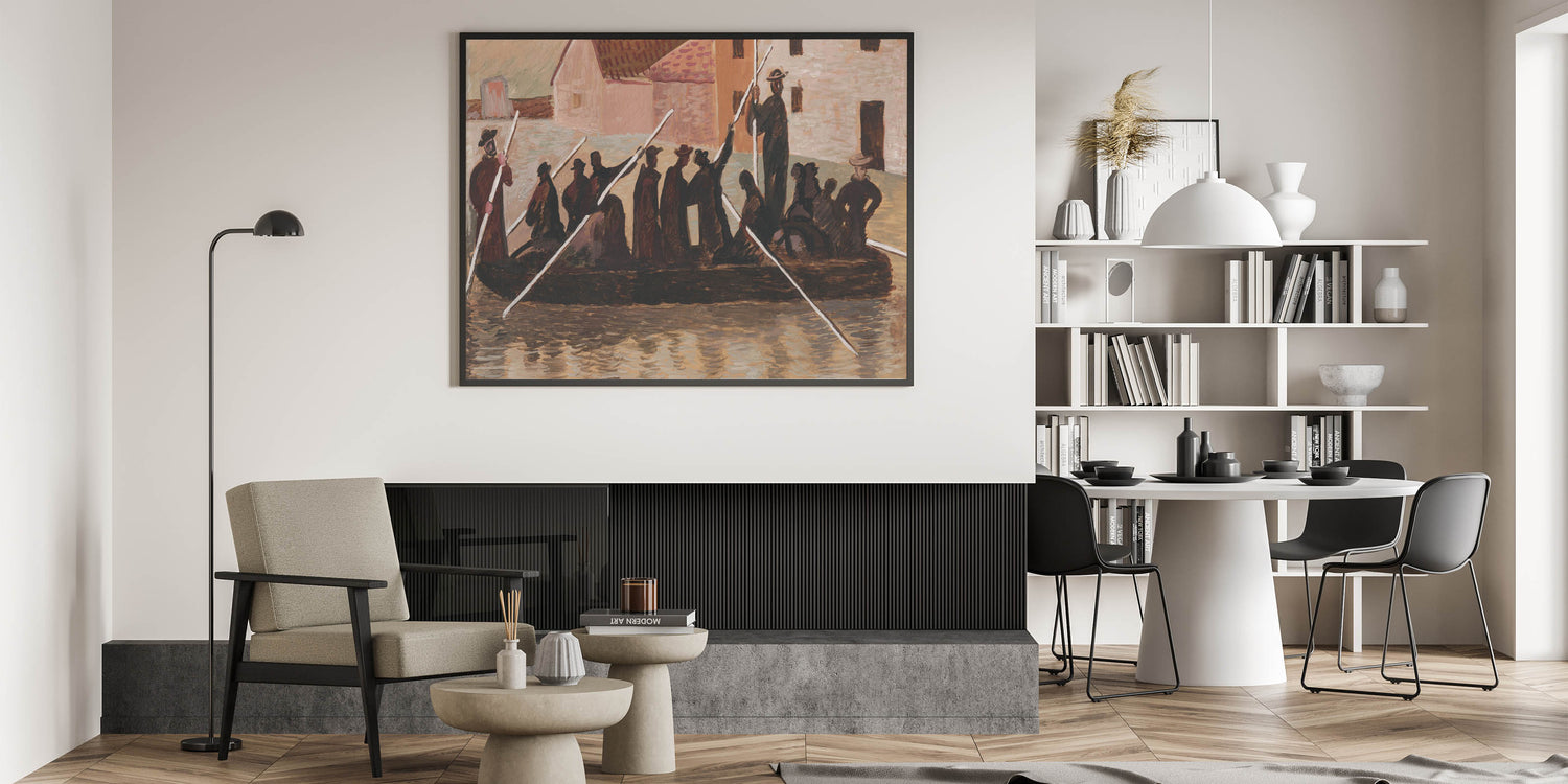Bring a sense of historical depth and resilience to your space with this Modern Wall Art, inspired by Cyprián Majerník's "The Flood." This artwork captures a group of people navigating turbulent waters, rendered in earthy tones of brown and beige. The rustic style and timeless theme make this piece ideal for those who appreciate unique modern art that conveys strength and unity.
