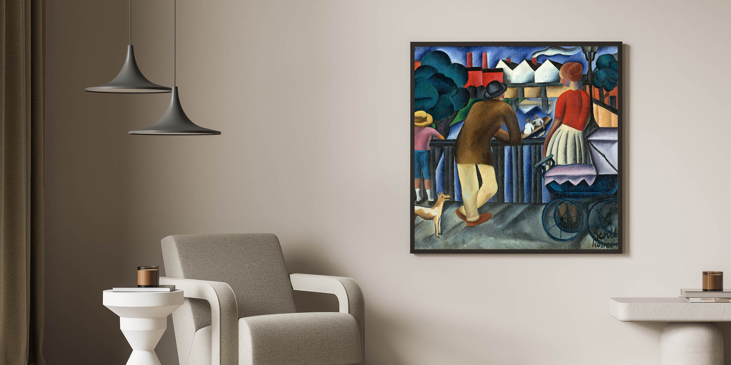 Modern Wall Art - Urban Vintage Scene with Abstract Figures Print
