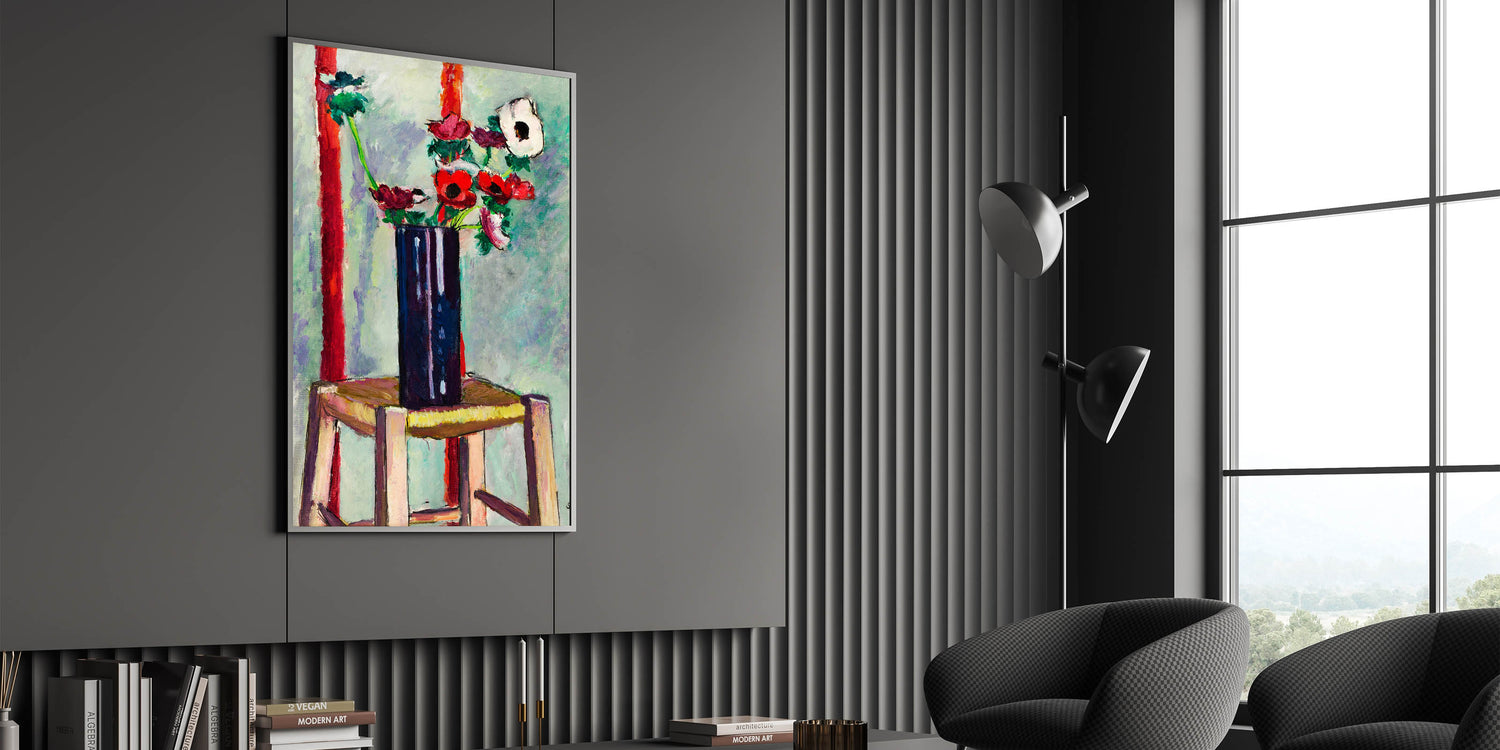 Modern Wall Art - Vibrant Anemones in Dark Vase | Colorful Contemporary Art