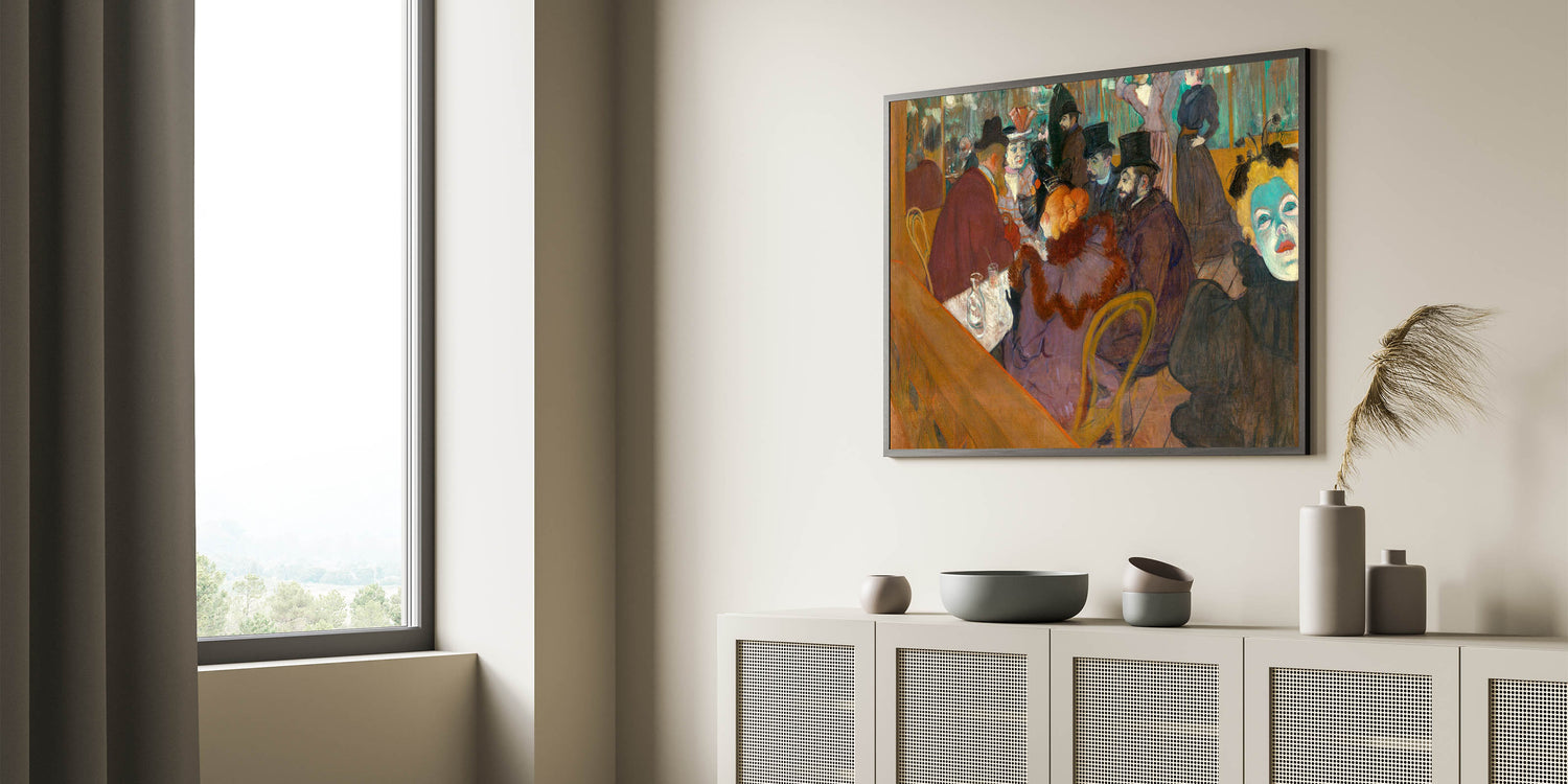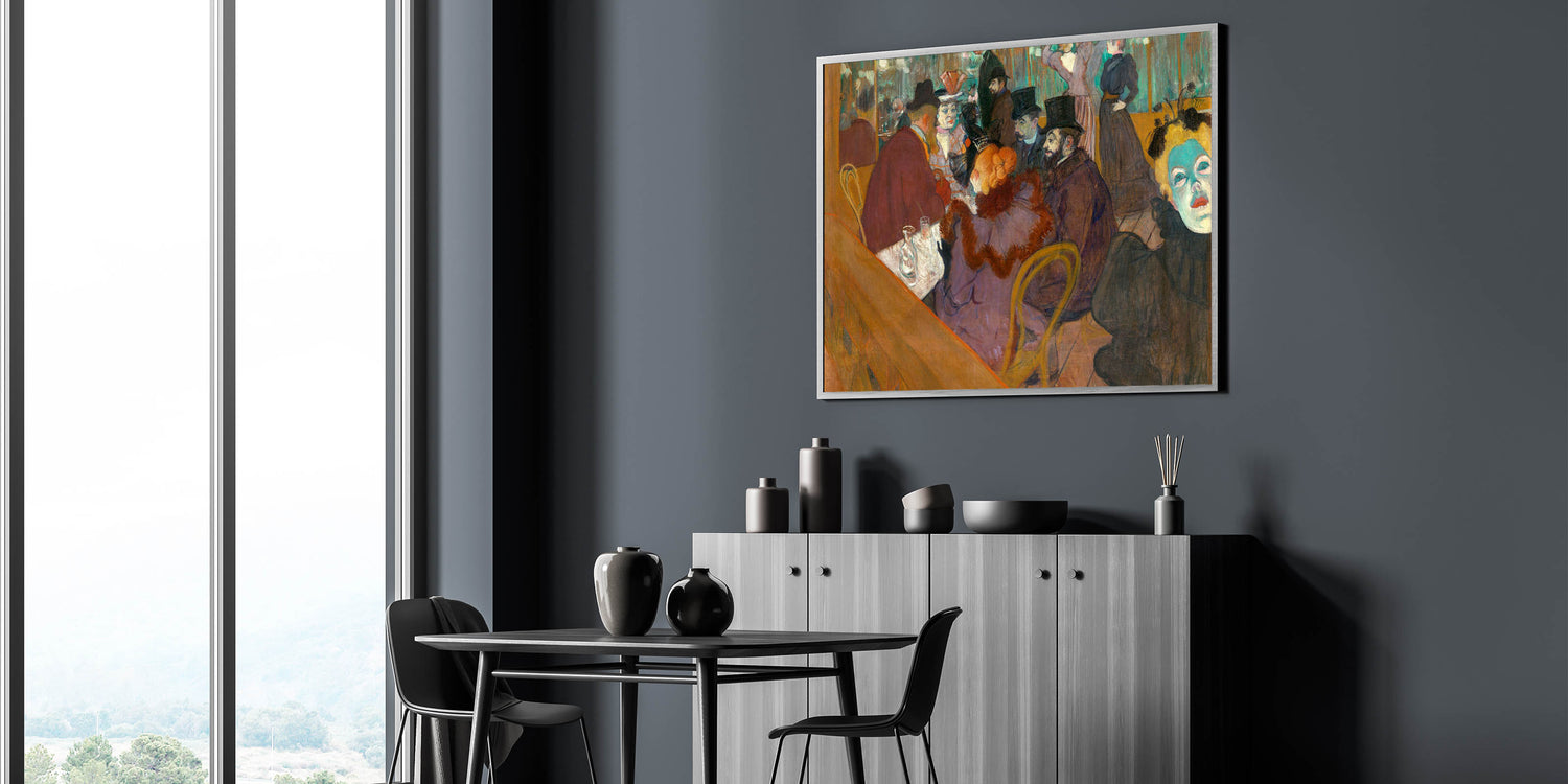 Step back into the vibrant nightlife of 19th-century Paris with this exquisite piece of Modern Wall Art. Henri de Toulouse-Lautrec's At the Moulin Rouge captures the electric atmosphere of the iconic cabaret, featuring richly dressed patrons, entertainers, and a colorful, dynamic setting. This masterpiece blends intricate details with expressive brushstrokes, bringing life and energy to your space.