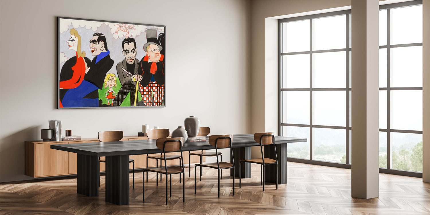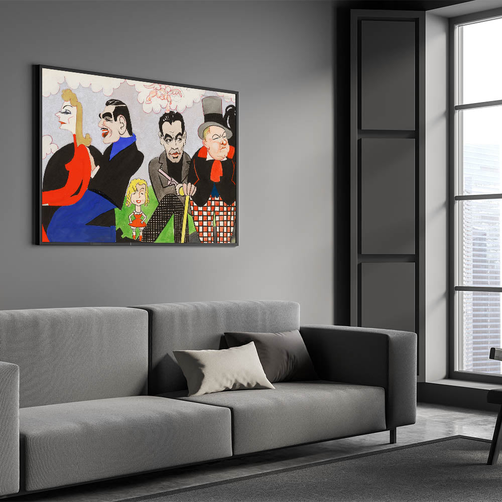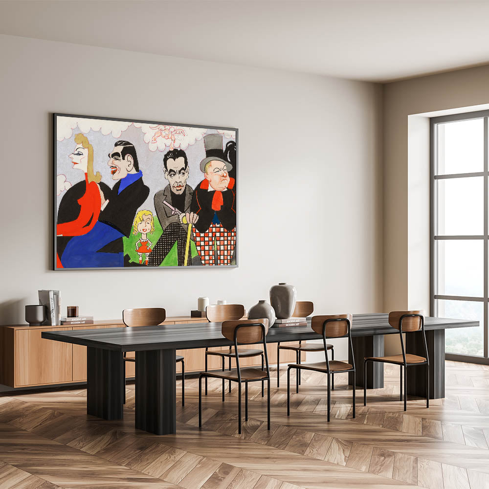 Add a splash of personality to your walls with this bold, modern wall art, featuring an eclectic mix of stylized characters in a vibrant mural study. Perfect for adding contemporary flair, this unique artwork effortlessly combines modern design elements with a touch of humor, making it a standout piece in any space.
