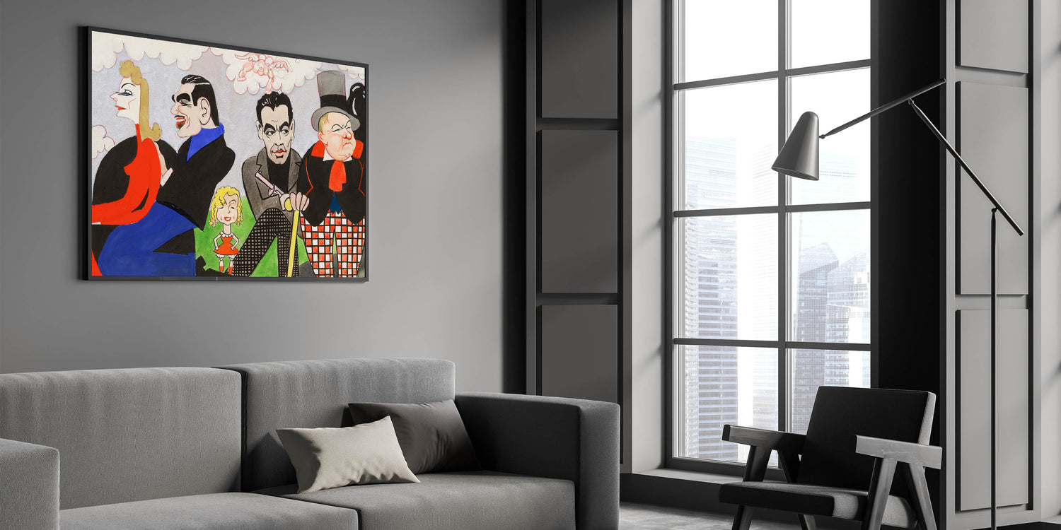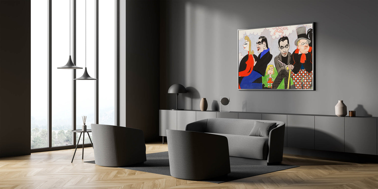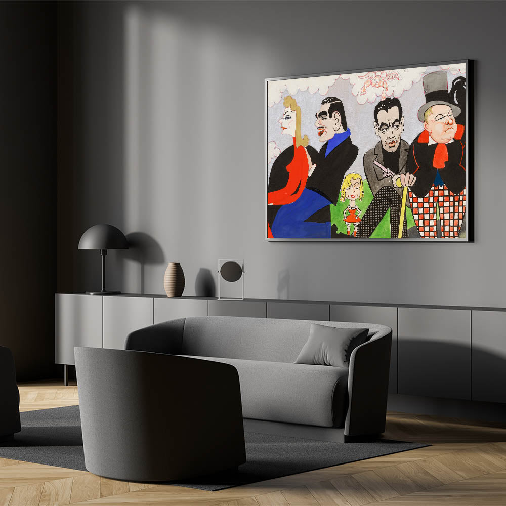 Add a splash of personality to your walls with this bold, modern wall art, featuring an eclectic mix of stylized characters in a vibrant mural study. Perfect for adding contemporary flair, this unique artwork effortlessly combines modern design elements with a touch of humor, making it a standout piece in any space.
