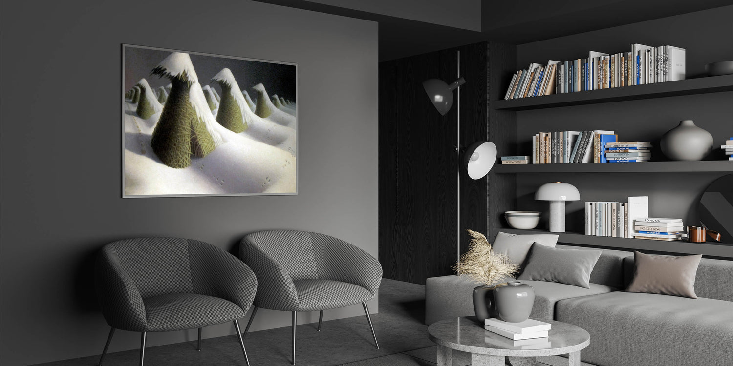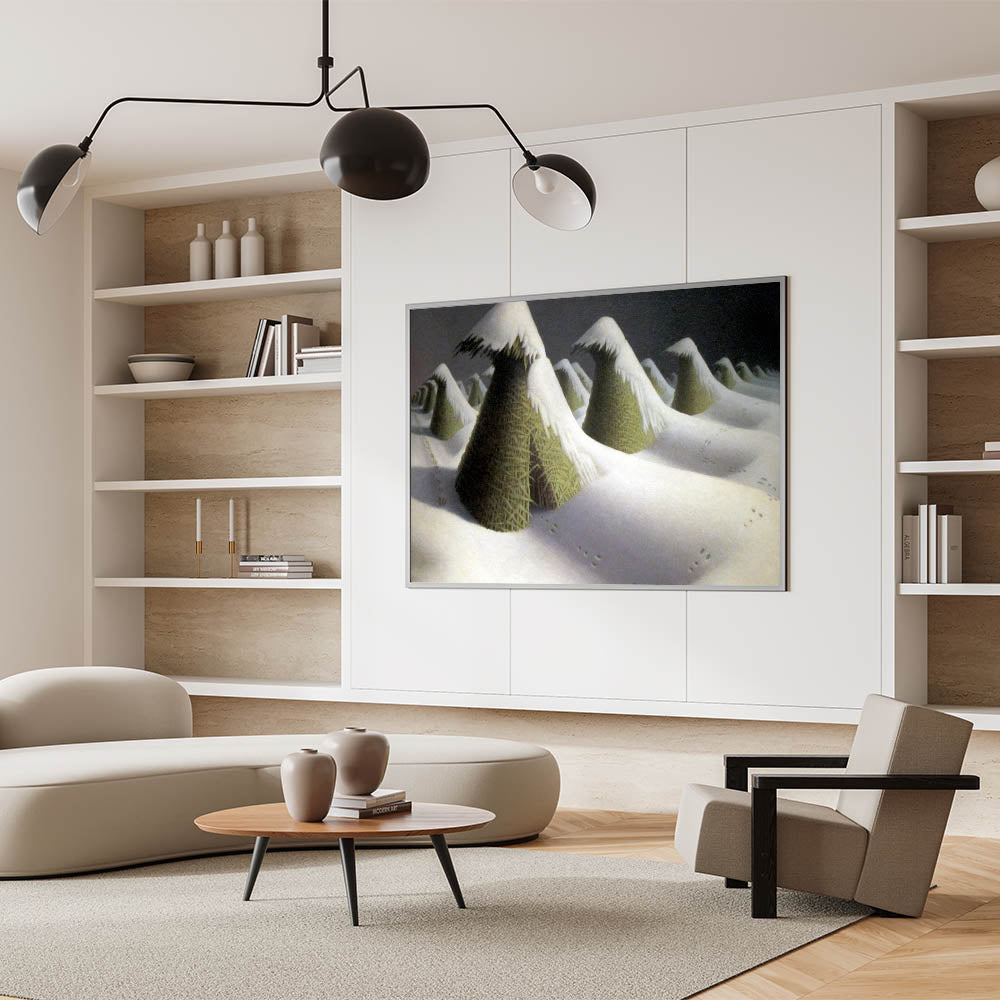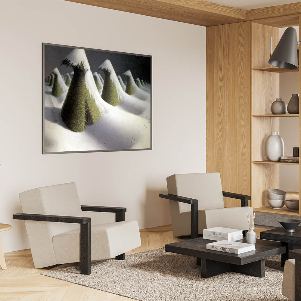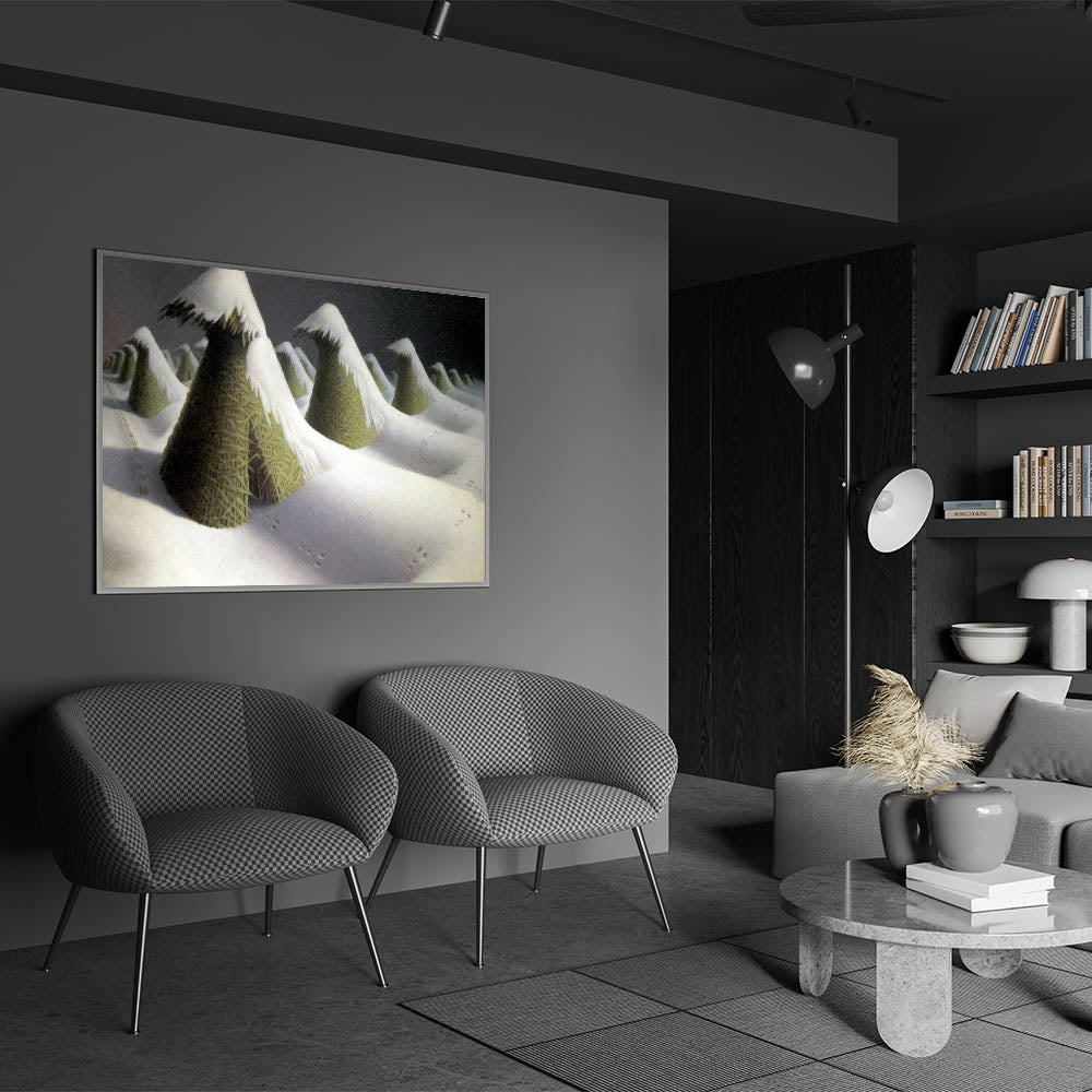 This Stylish Wall Art captures the subtle beauty of nature during the colder months, bringing a sense of calm and serenity to your space. Its muted greens and soft whites complement Modern Design Elements, making it an excellent choice for contemporary interiors. Available in multiple sizes to suit your decor style.