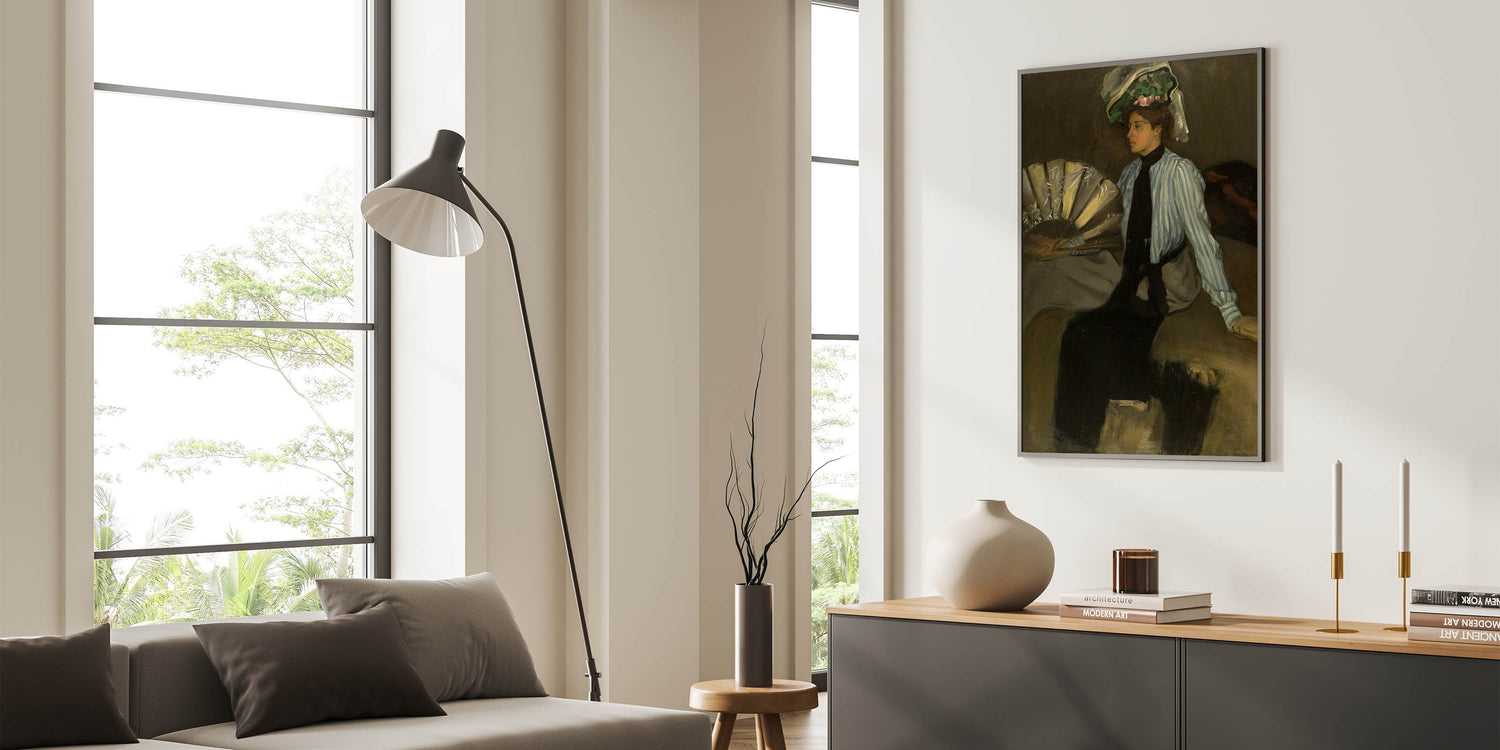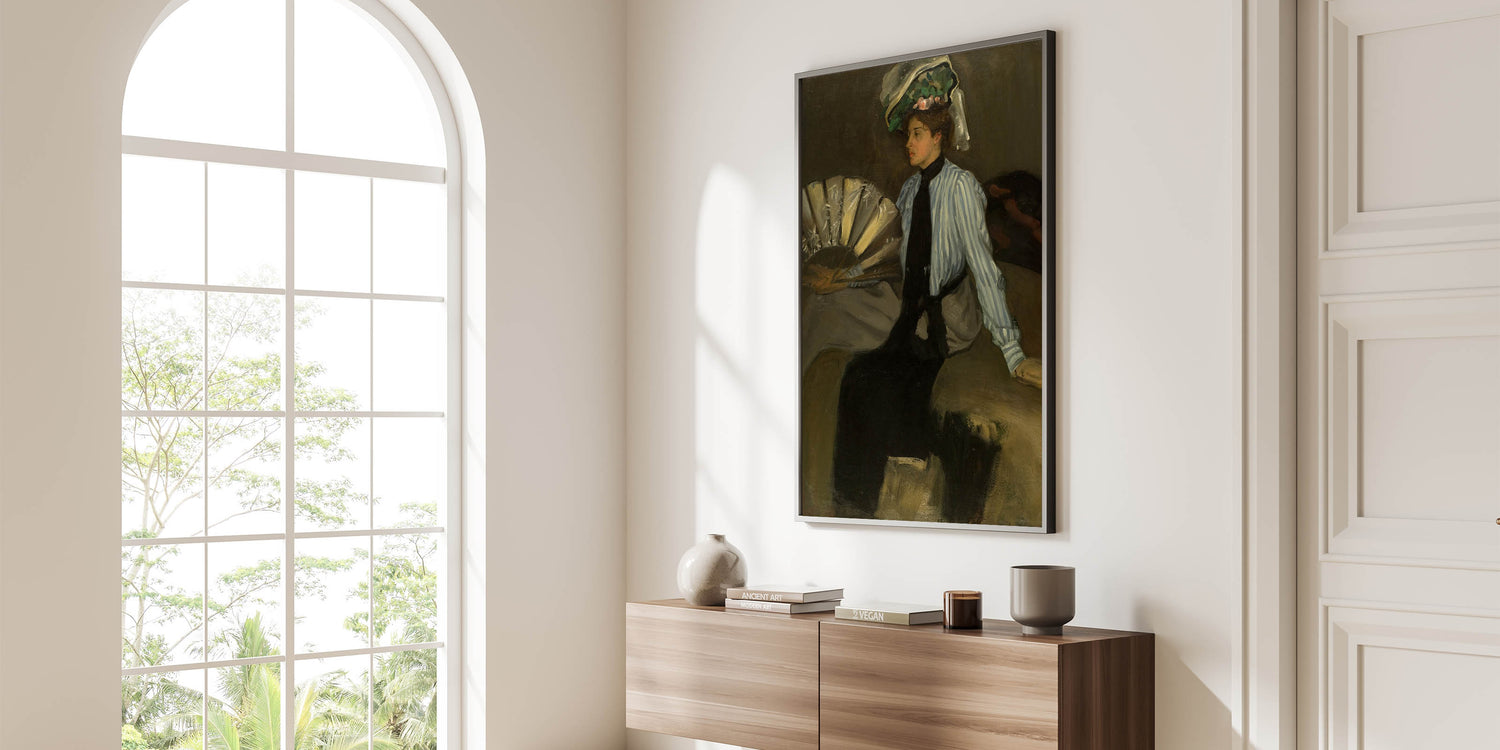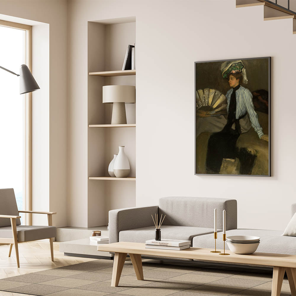 Modern Wall Art: Young Woman with Fan - Elegant Portrait