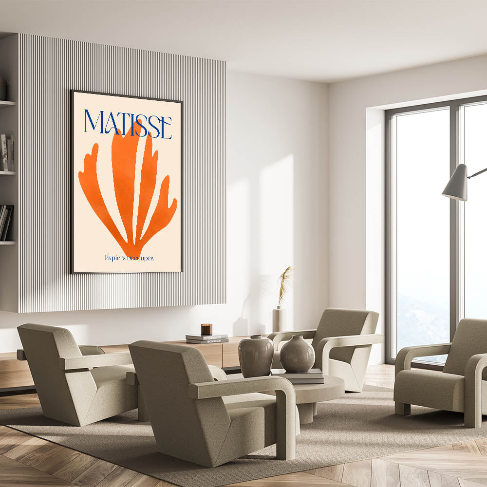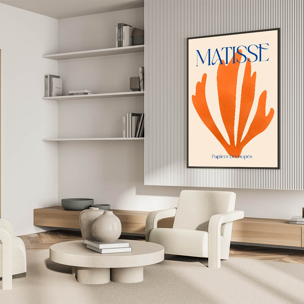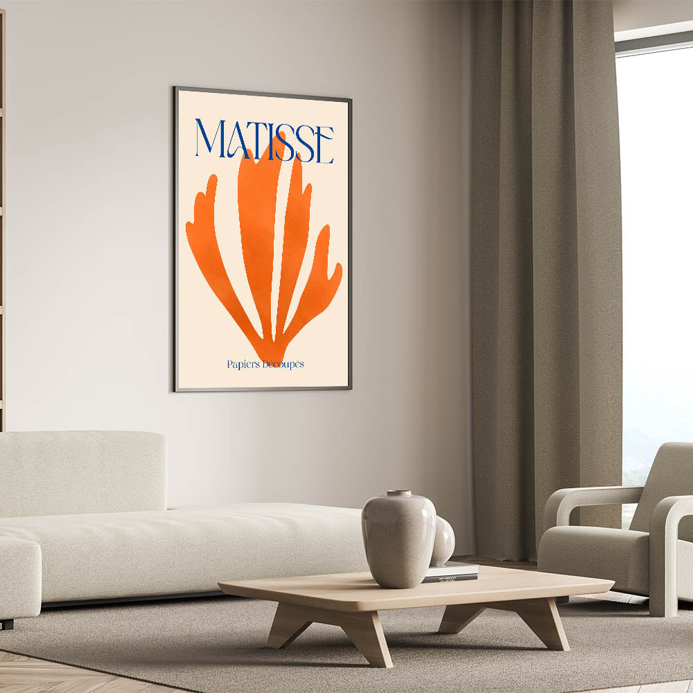 Introduce a touch of modern art to your space with this Matisse-inspired contemporary canvas. Featuring a bold orange abstract shape set against a soft beige background, the artwork captures the essence of Matisse’s "Papiers Découpés" style with its flowing, organic forms. The minimalist yet impactful design makes it a versatile piece for modern wall decor, adding a pop of color and artistic flair to any room.