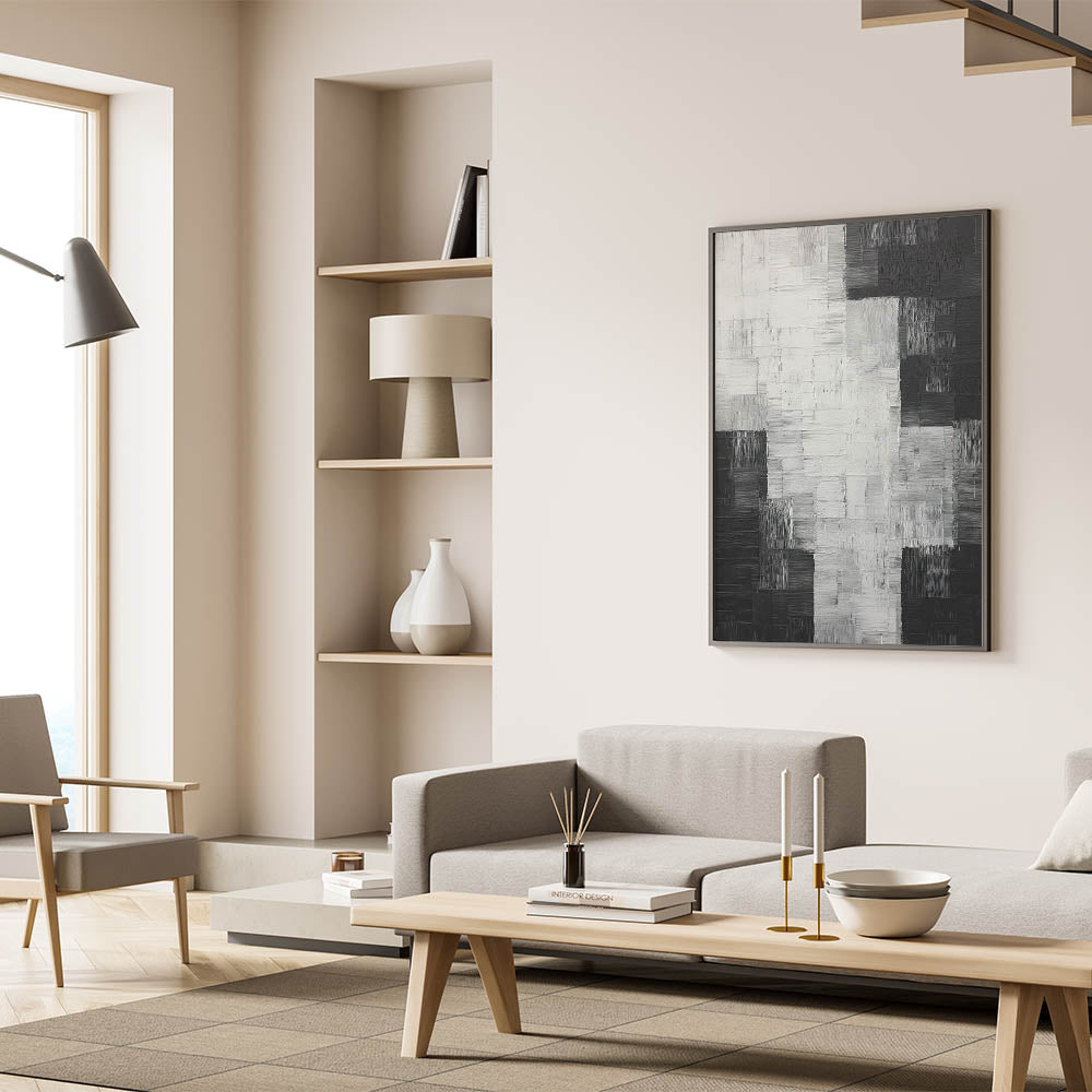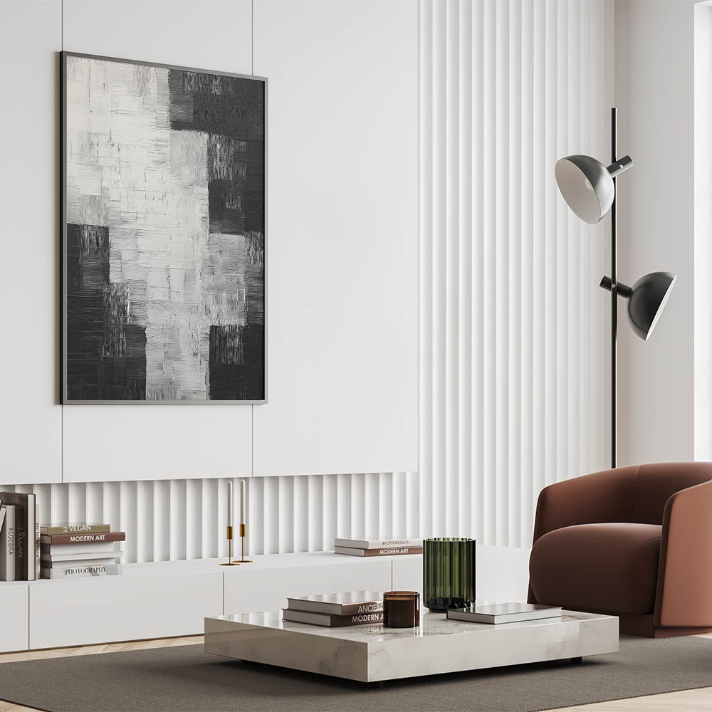 This textured monochrome art piece is perfect for adding depth to living rooms, bedrooms, or offices, where a refined, contemporary statement is desired.
