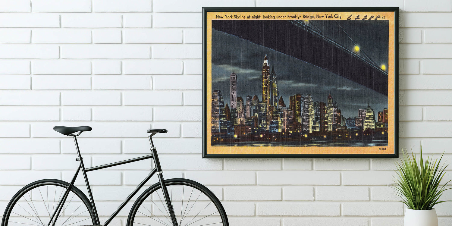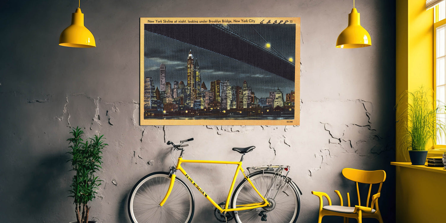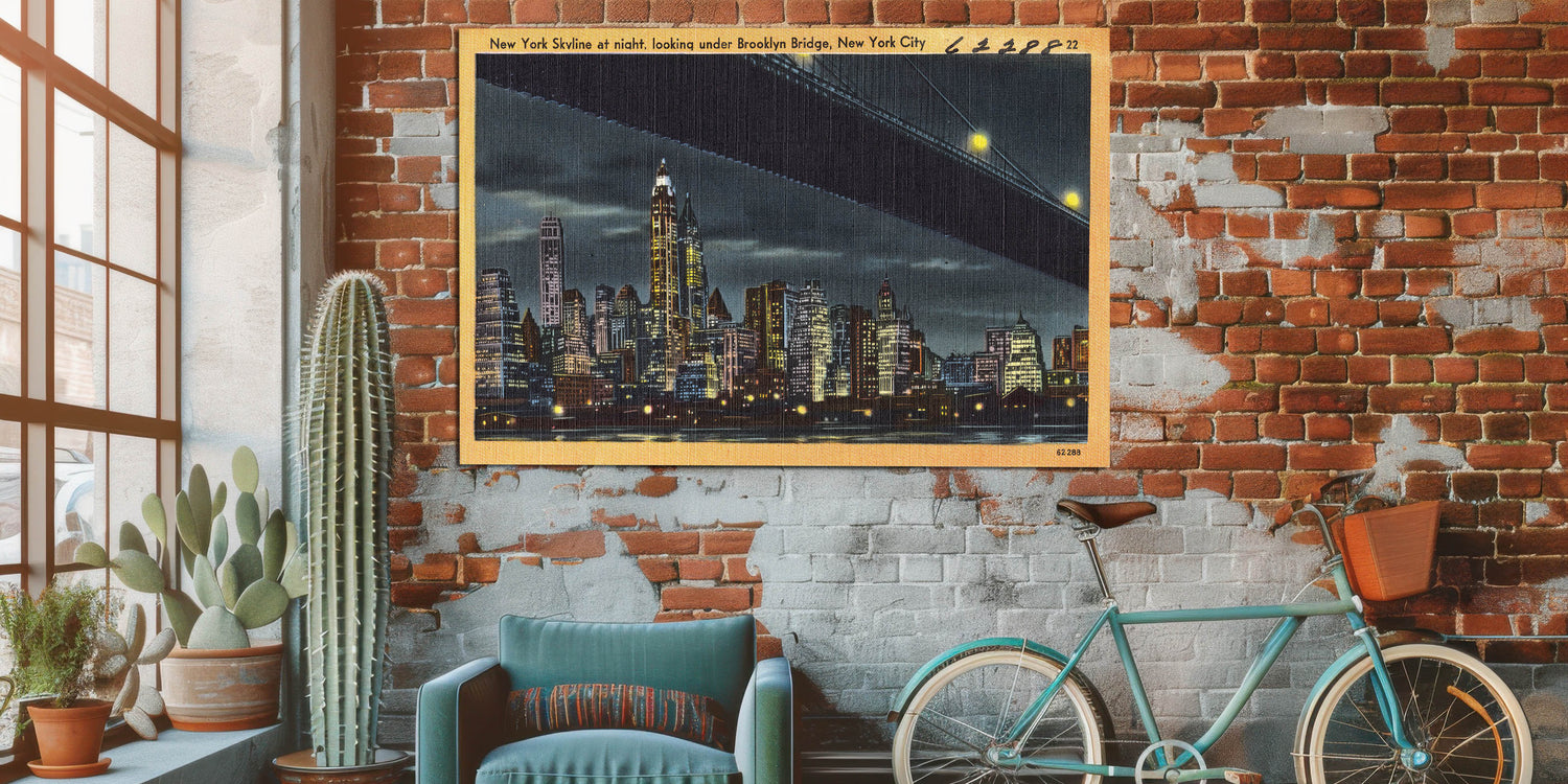 NYC Skyline at Night Poster – Vintage Brooklyn Bridge Art