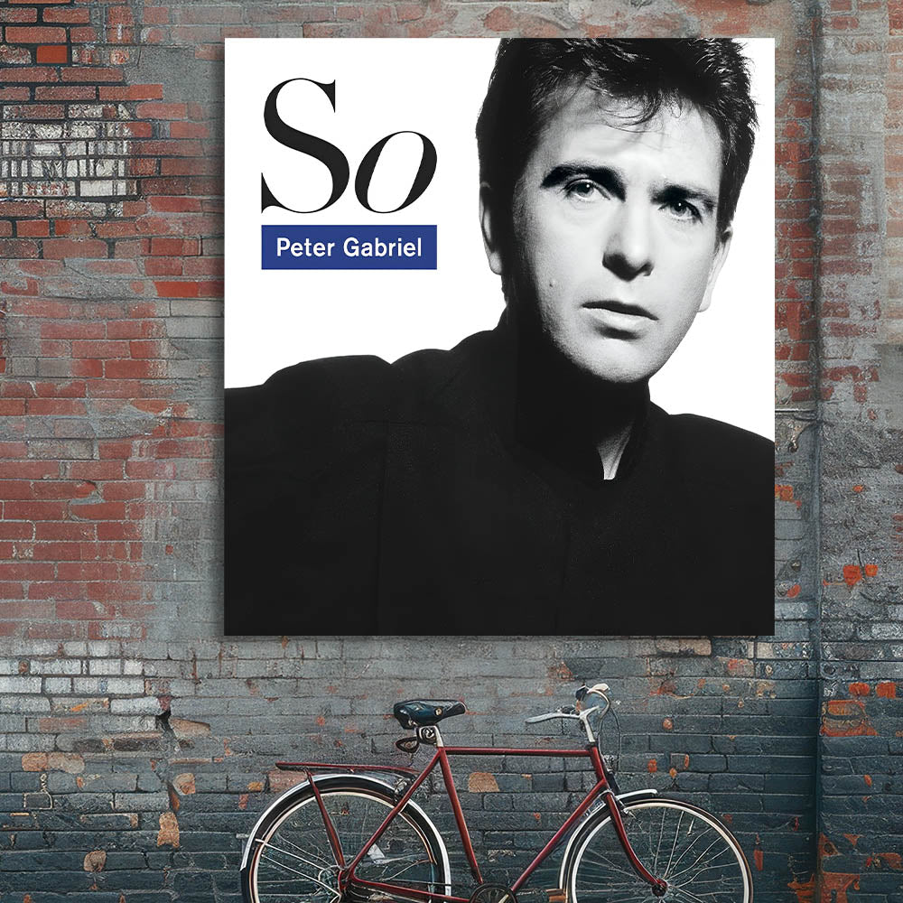 Add a touch of classic 80s style to your home with this So retro wall art featuring Peter Gabriel's iconic album cover. Capturing the legendary artist in a striking black-and-white portrait, this piece reflects the timeless appeal of one of the most influential albums of the era. Ideal for music lovers and fans of minimalist retro decor, this print will bring a unique, elegant vibe to any room.