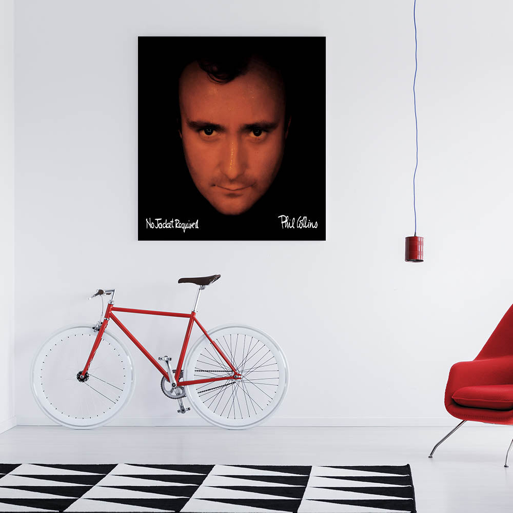 Whether you're a fan of Phil Collins or appreciate timeless retro designs, this No Jacket Required wall art brings bold nostalgia to your home.