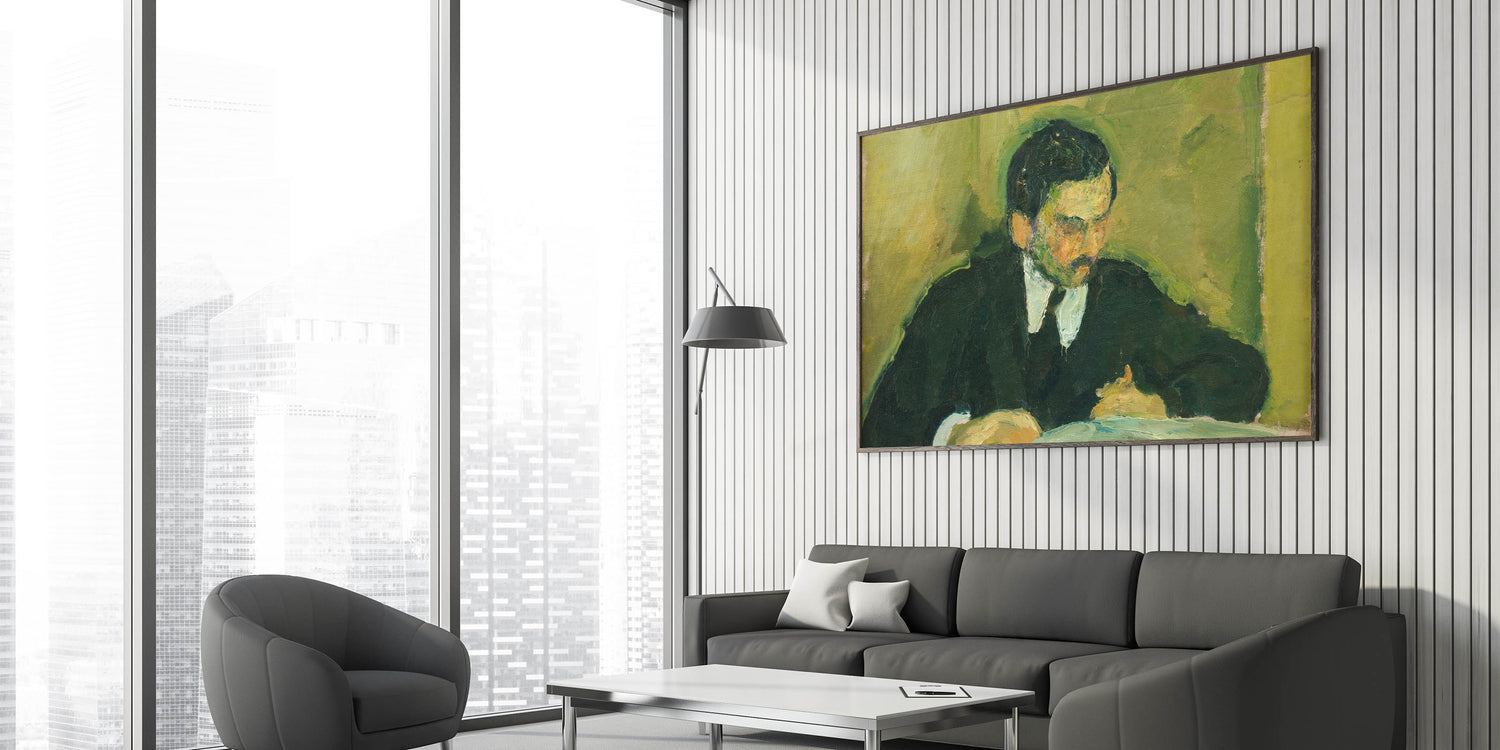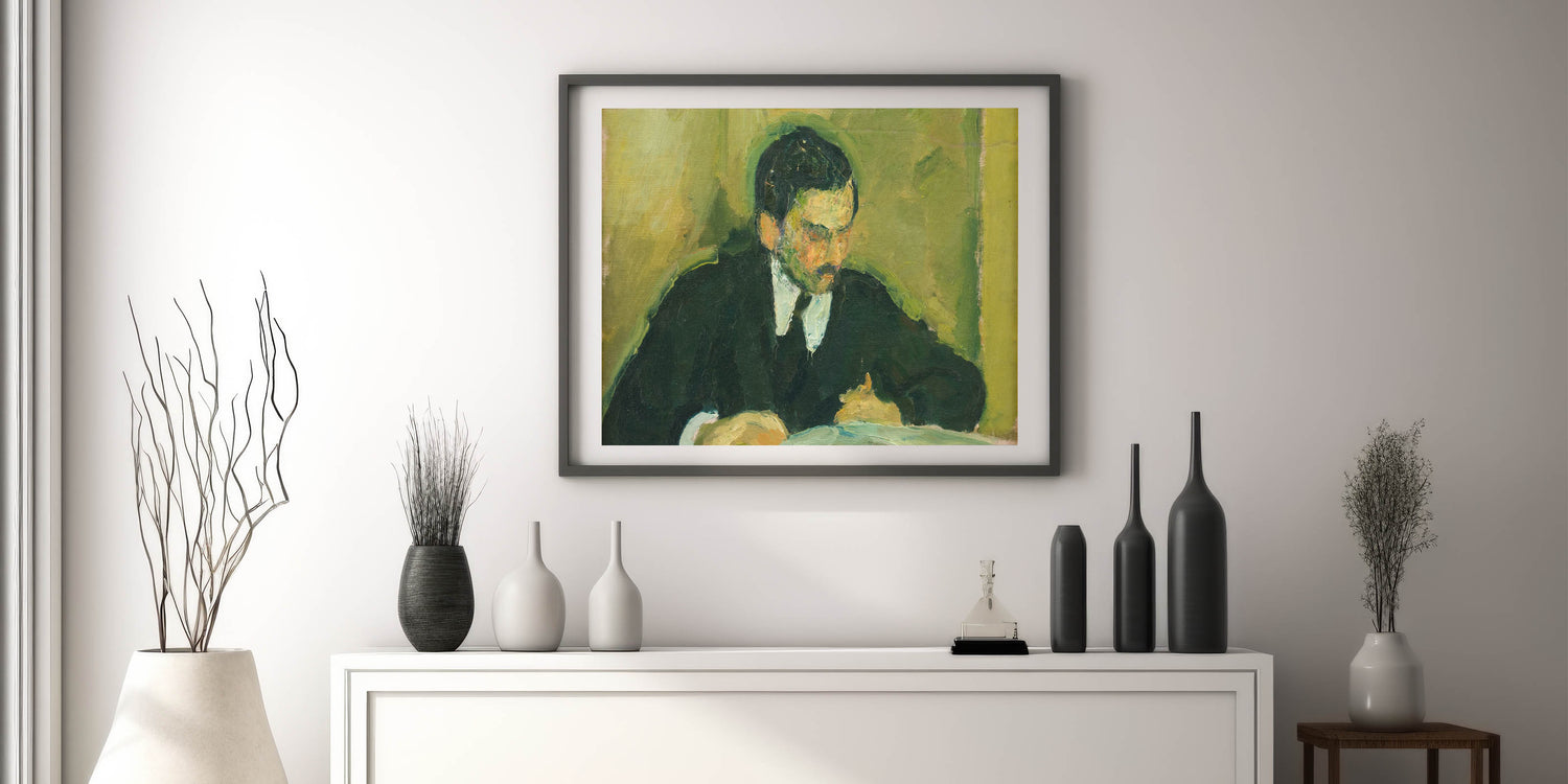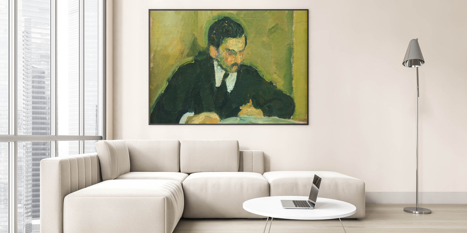 Introduce a thoughtful ambiance to your decor with "Portrait of a Man Reading," an abstract interpretation that captures a serene moment of study. This modern wall art features earthy green and yellow tones, emphasizing a tranquil and introspective atmosphere. Ideal for minimalist modern decor, this piece adds depth and a sense of quiet sophistication to any room, making it an excellent choice for contemporary art enthusiasts.