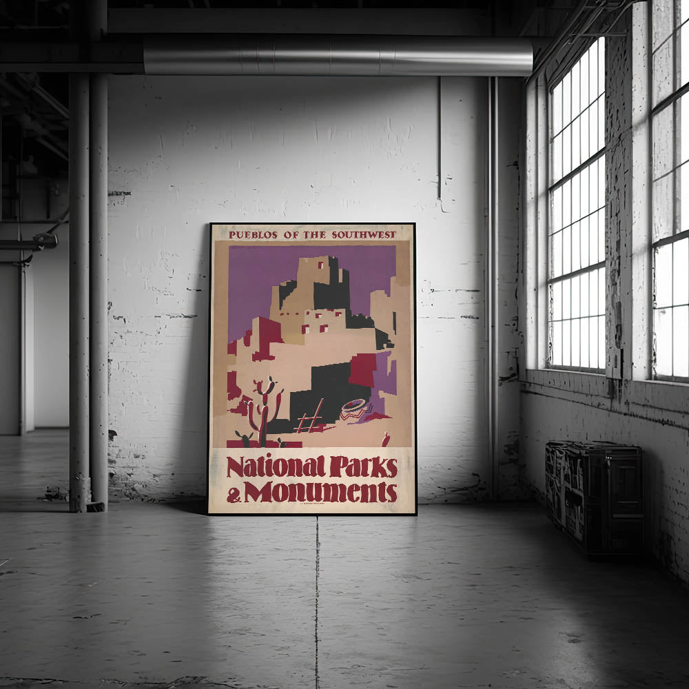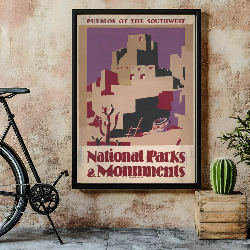 Pueblos of the Southwest Vintage Travel Poster – National Parks Art