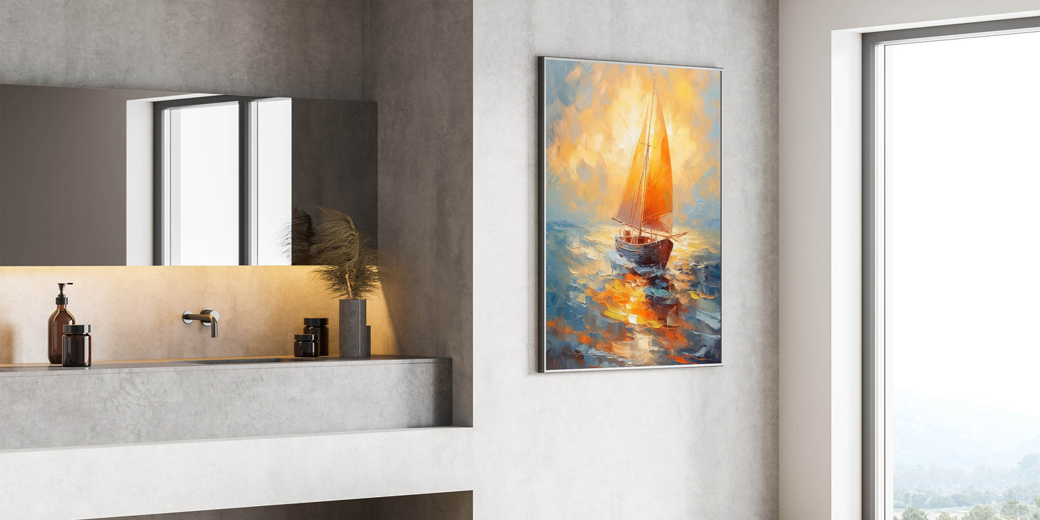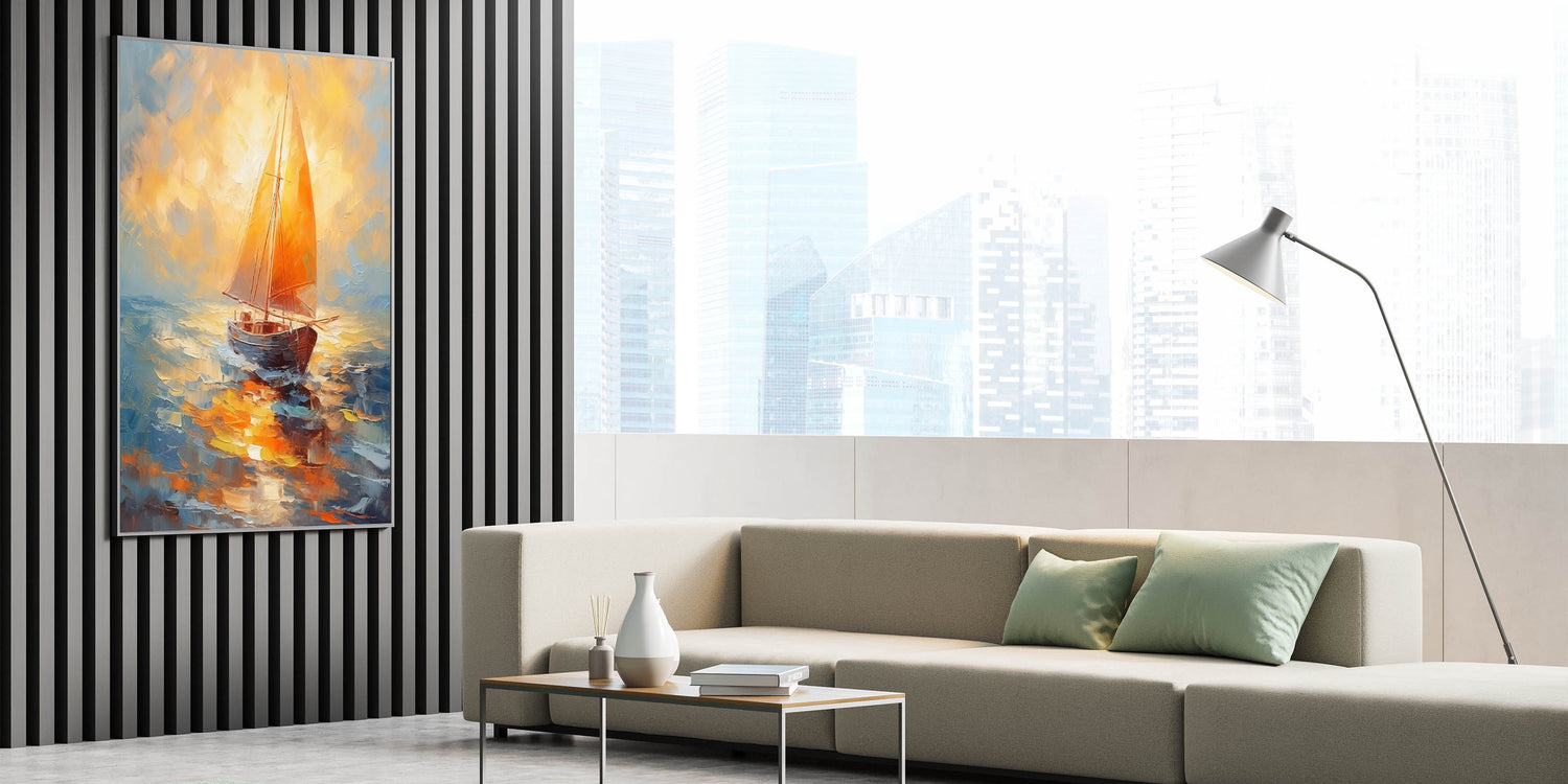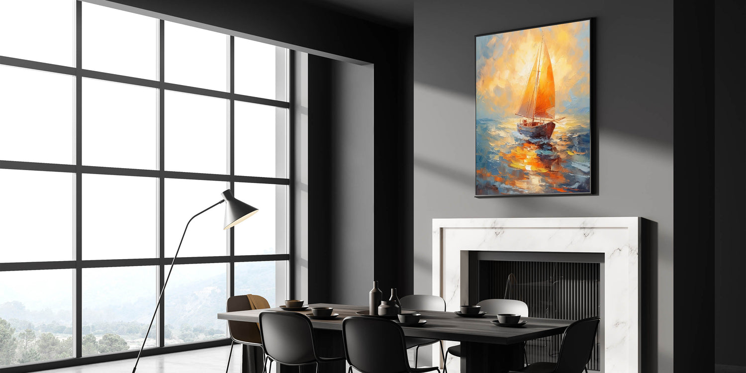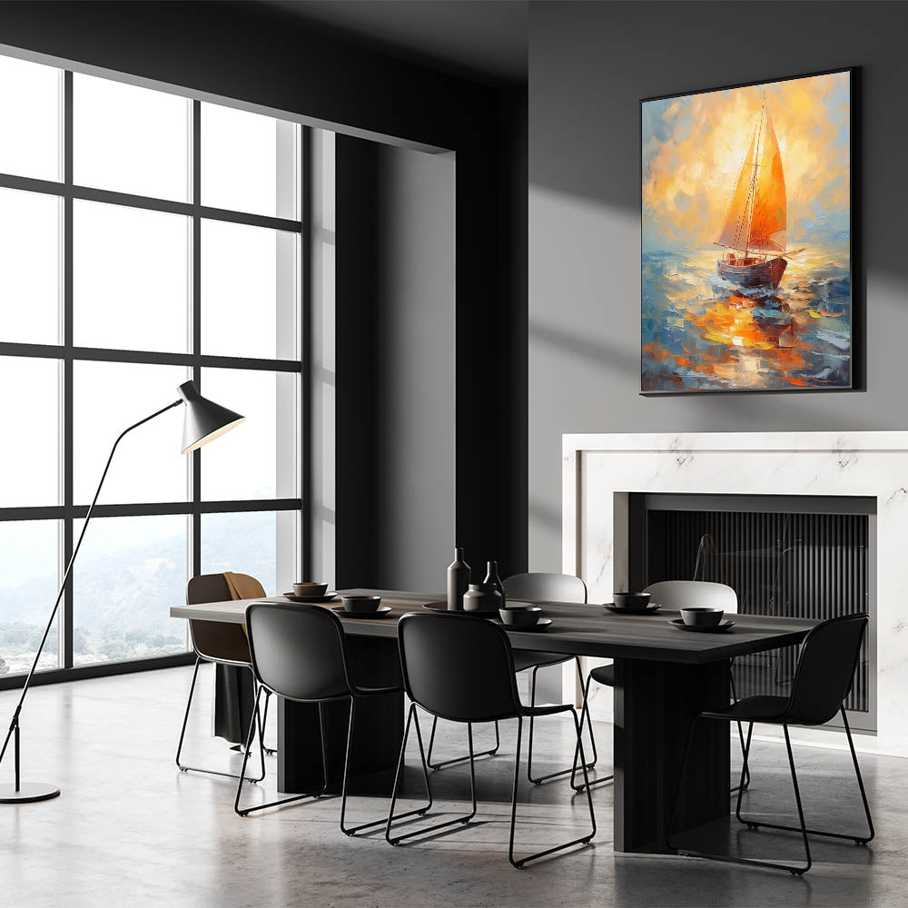 Transform your living space with this captivating sunset sailboat canvas, bringing the calm of the open sea and the warmth of a glowing horizon into your home.