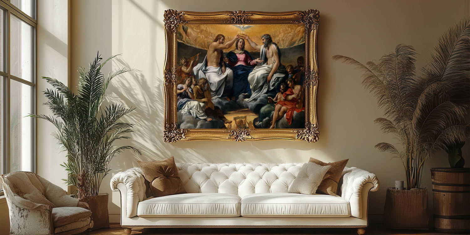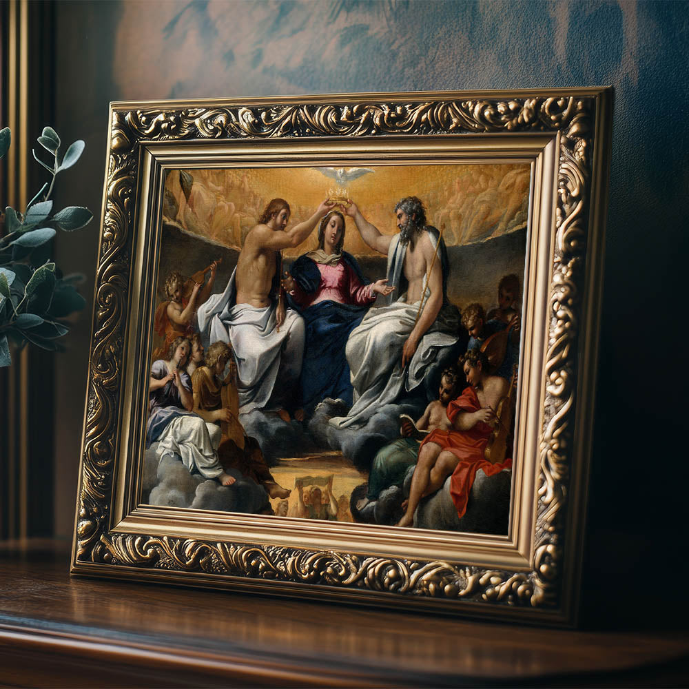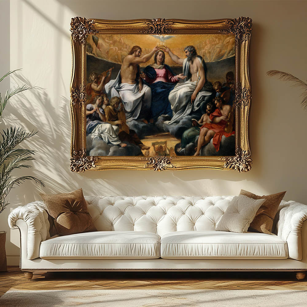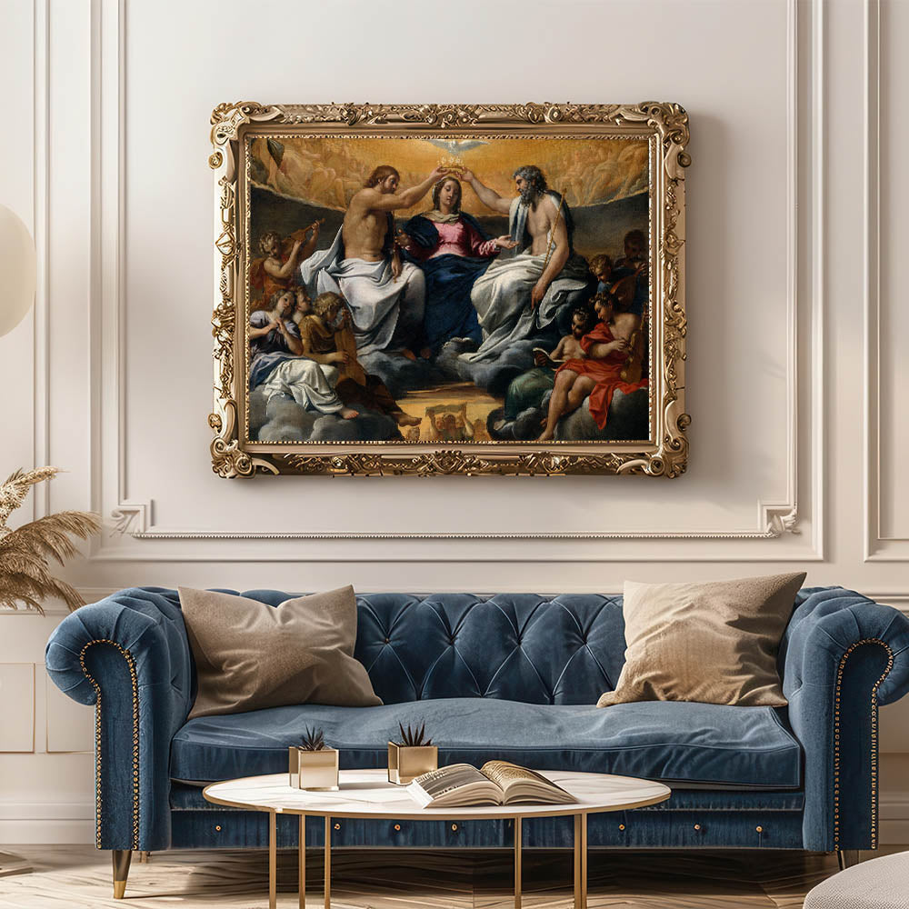 Annibale Carracci’s The Coronation of the Virgin is a masterful portrayal of celestial grace and divine beauty, embodying the essence of Renaissance art. This iconic painting captures the Virgin Mary being crowned by the Holy Trinity, surrounded by an ethereal choir of angels and saints. Carracci's use of vibrant colors, dynamic composition, and luminous light brings this divine scene to life.