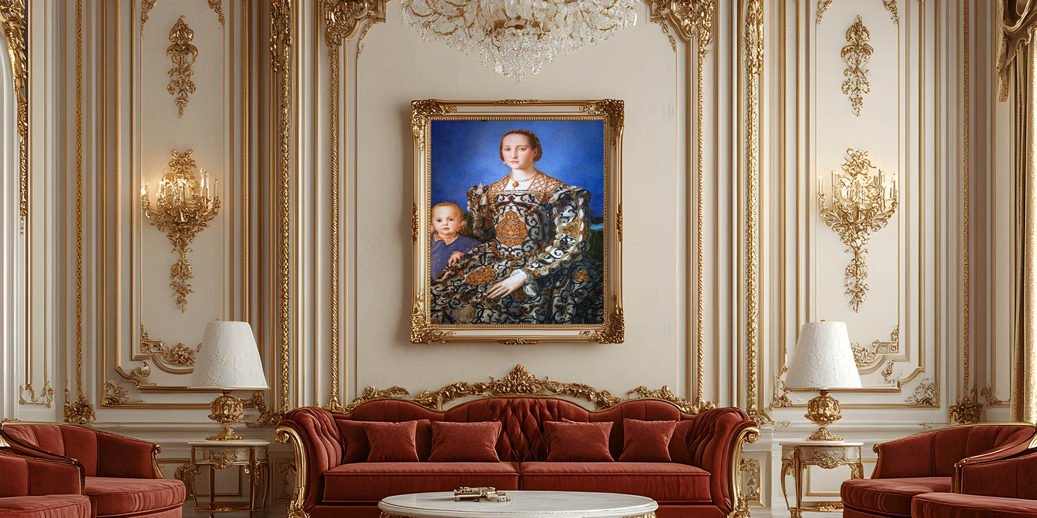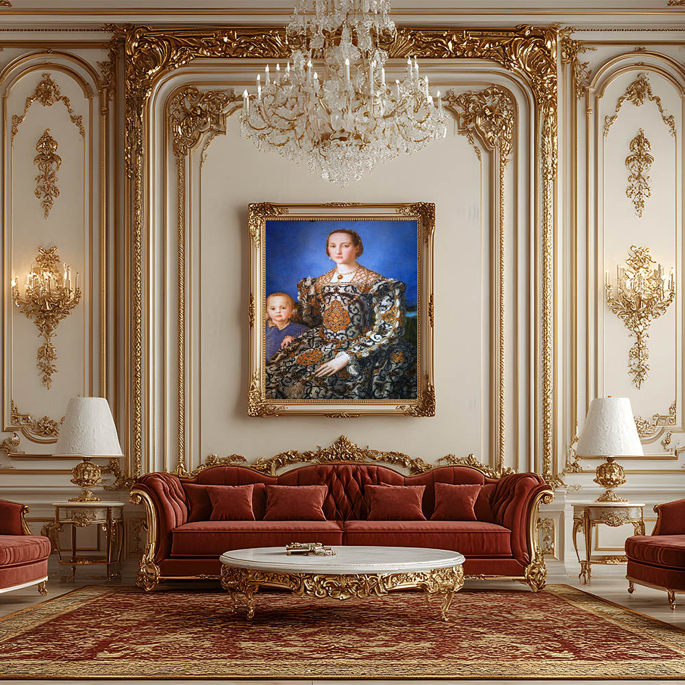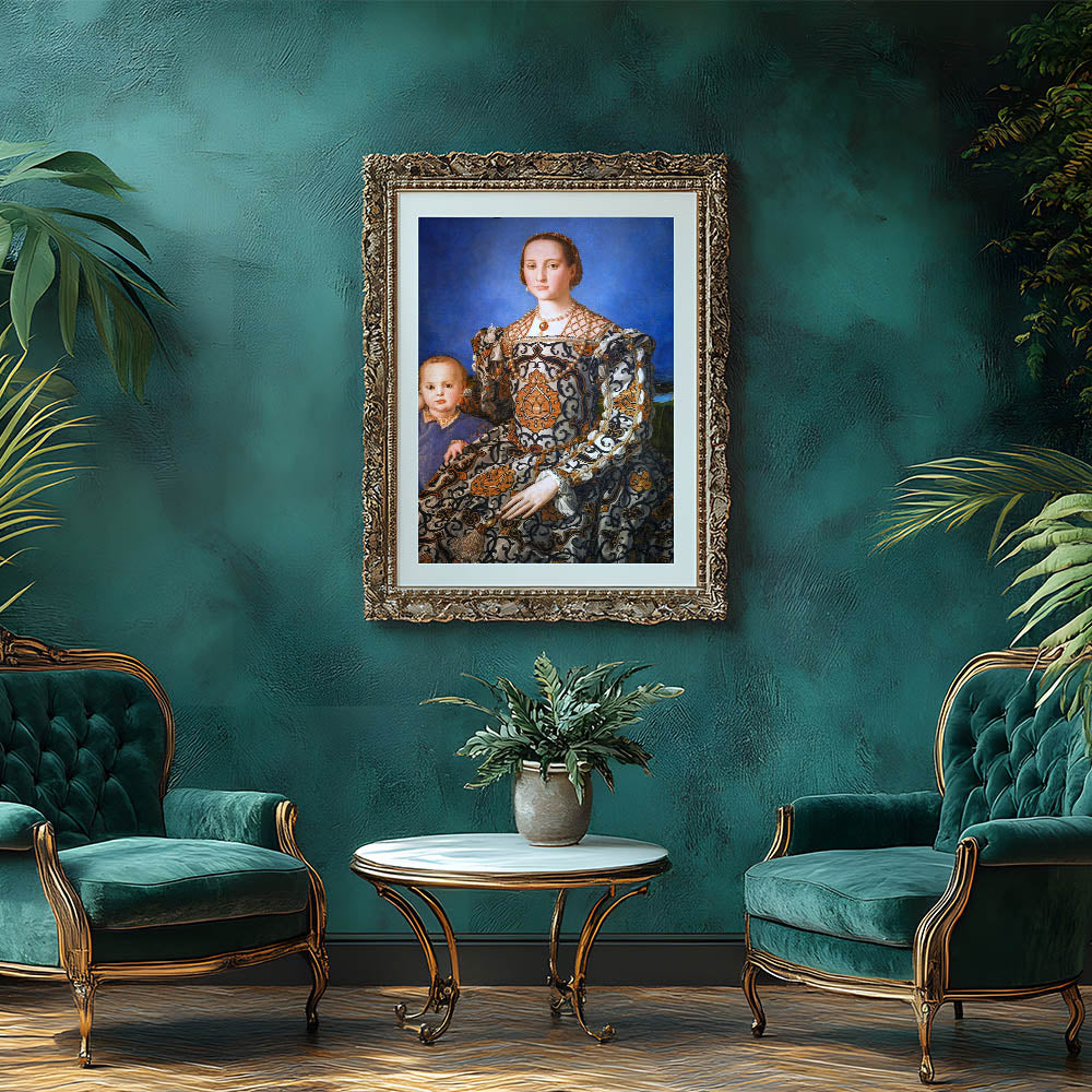 Bring sophistication and history into your space with this high-quality print of Eleanor of Toledo with Her Son Giovanni de' Medici. Whether as a centerpiece or a statement piece, this artwork adds cultural depth and regal elegance.