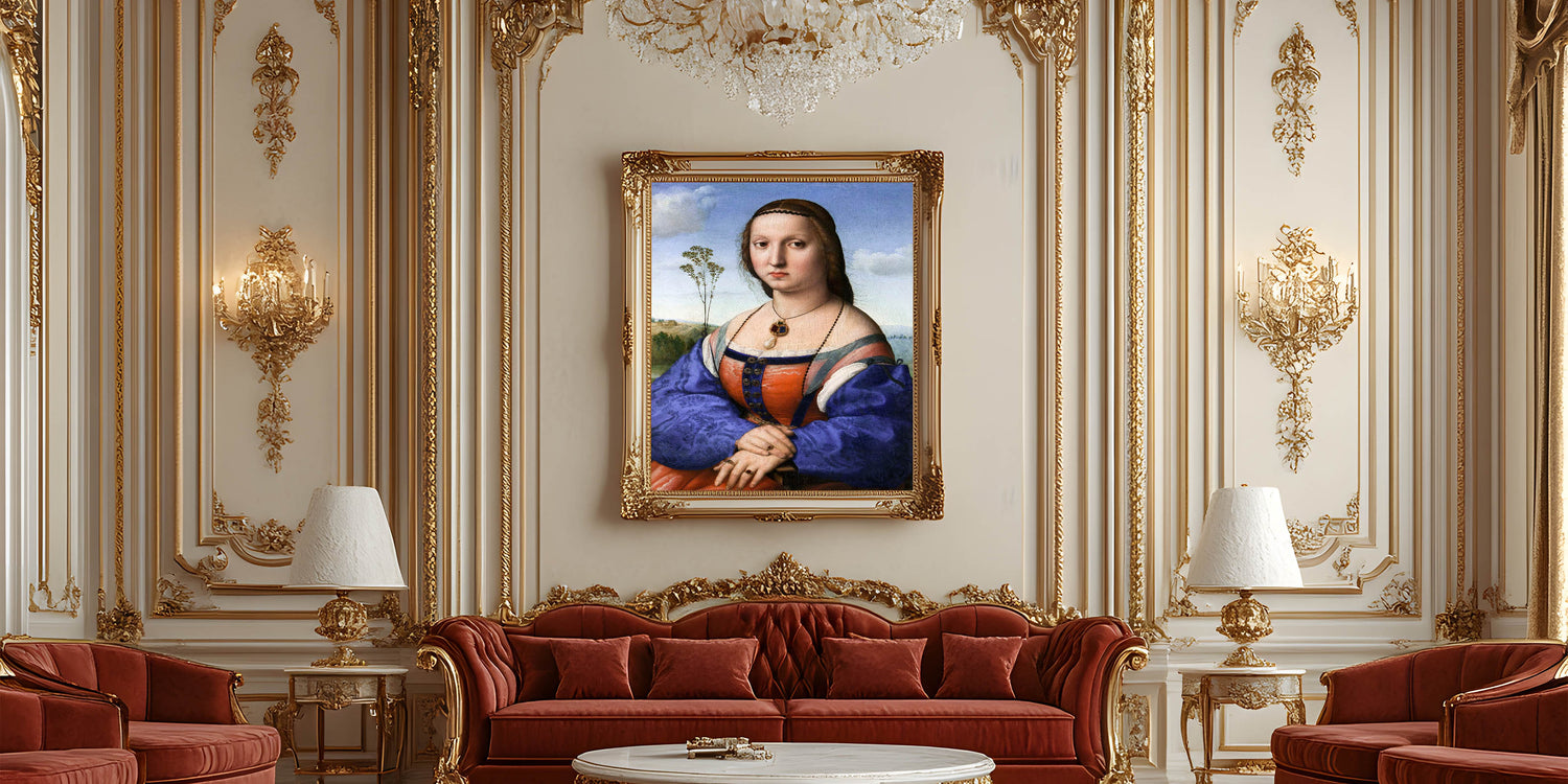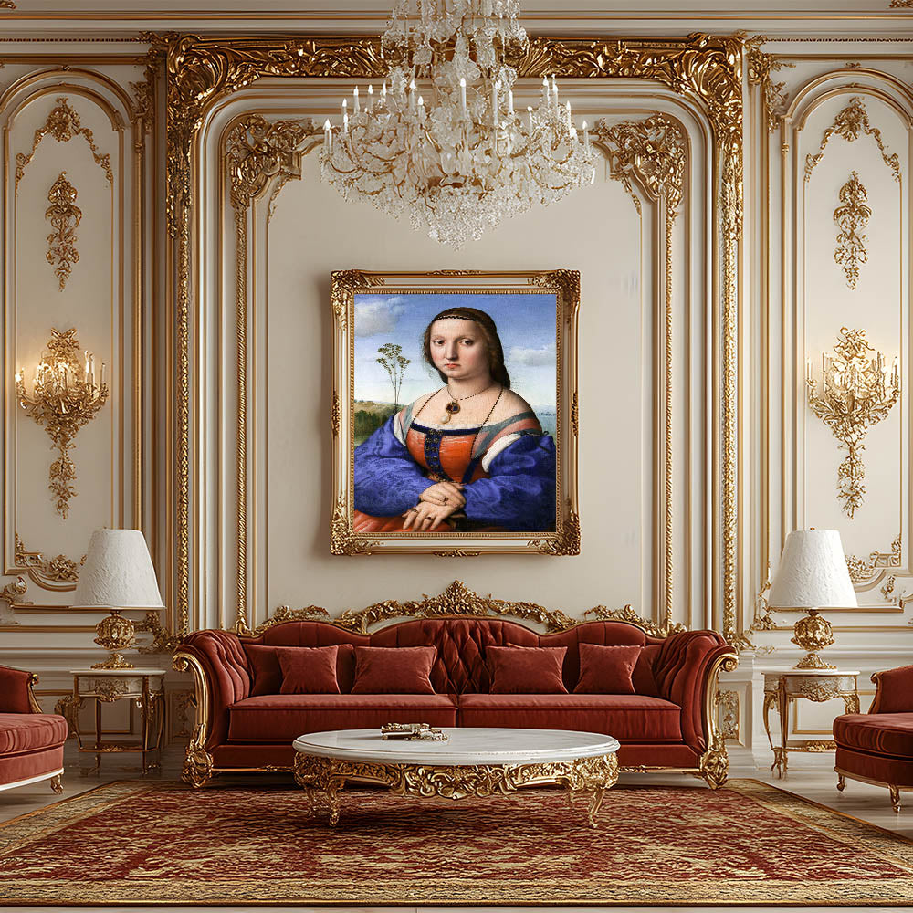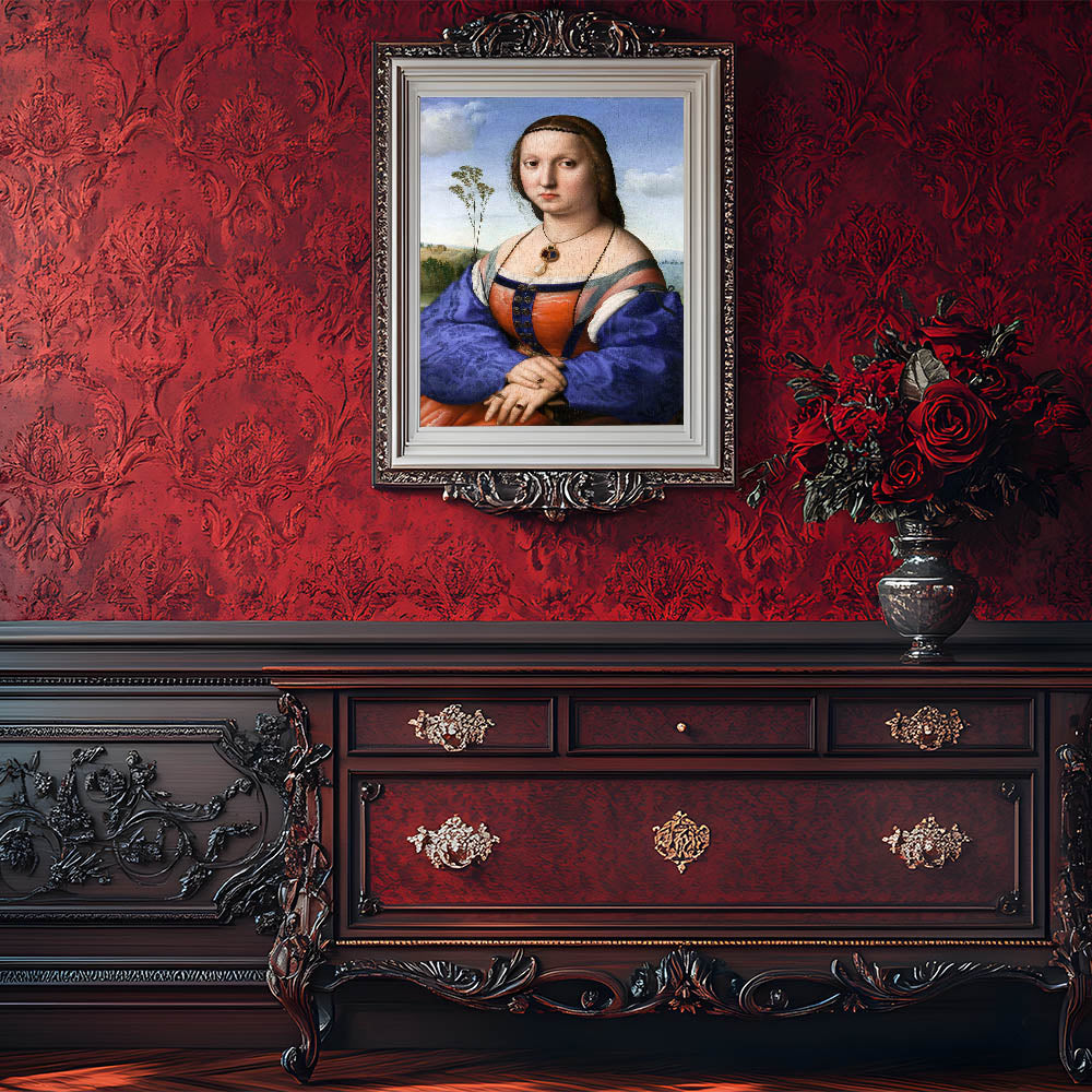Experience the grace and elegance of the Italian Renaissance with Raphael’s Portrait of Maddalena Strozzi Doni (ca. 1506). This timeless masterpiece captures the refined beauty and noble presence of Maddalena Strozzi, blending exquisite detailing with a vibrant color palette. Known for its intricate textures and serene expression, this artwork epitomizes the sophistication of Renaissance portraiture and makes a stunning addition to any home or office.