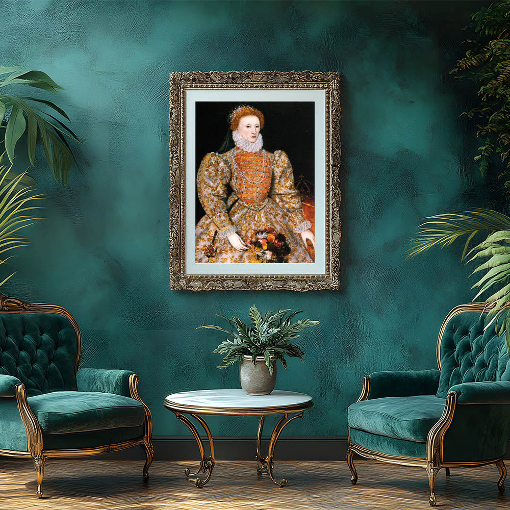 Celebrate the majesty and elegance of The Darnley Portrait of Elizabeth I of England, a masterpiece that epitomizes the grandeur of the Elizabethan era. This iconic portrait showcases Queen Elizabeth I adorned in a lavishly embroidered gown, symbolizing her power, refinement, and the rich cultural heritage of Renaissance England. Her serene expression and opulent attire make this artwork a timeless representation of regal dignity.