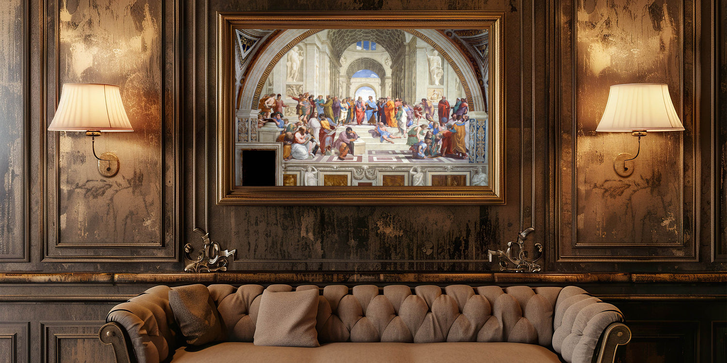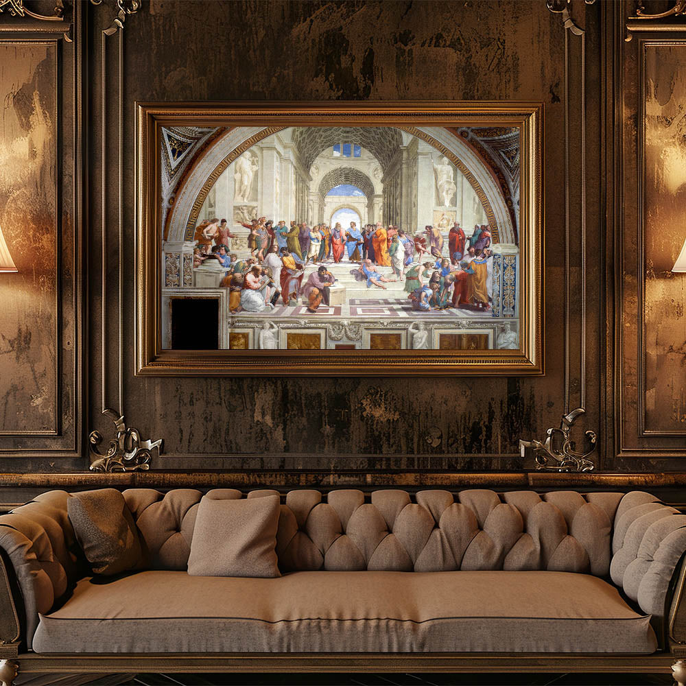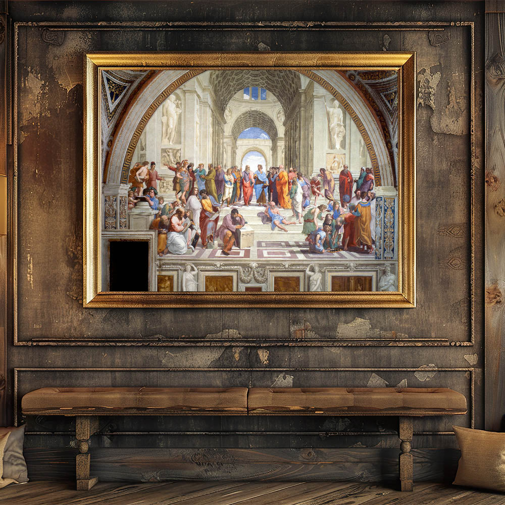 Elevate your living space with a timeless masterpiece from the Italian Renaissance, Raphael’s The School of Athens. This iconic artwork, a cornerstone of Renaissance artistry, depicts a gathering of great philosophers and intellectuals, symbolizing the pursuit of knowledge and wisdom. It is celebrated for its intricate details, vibrant colors, and profound historical significance.