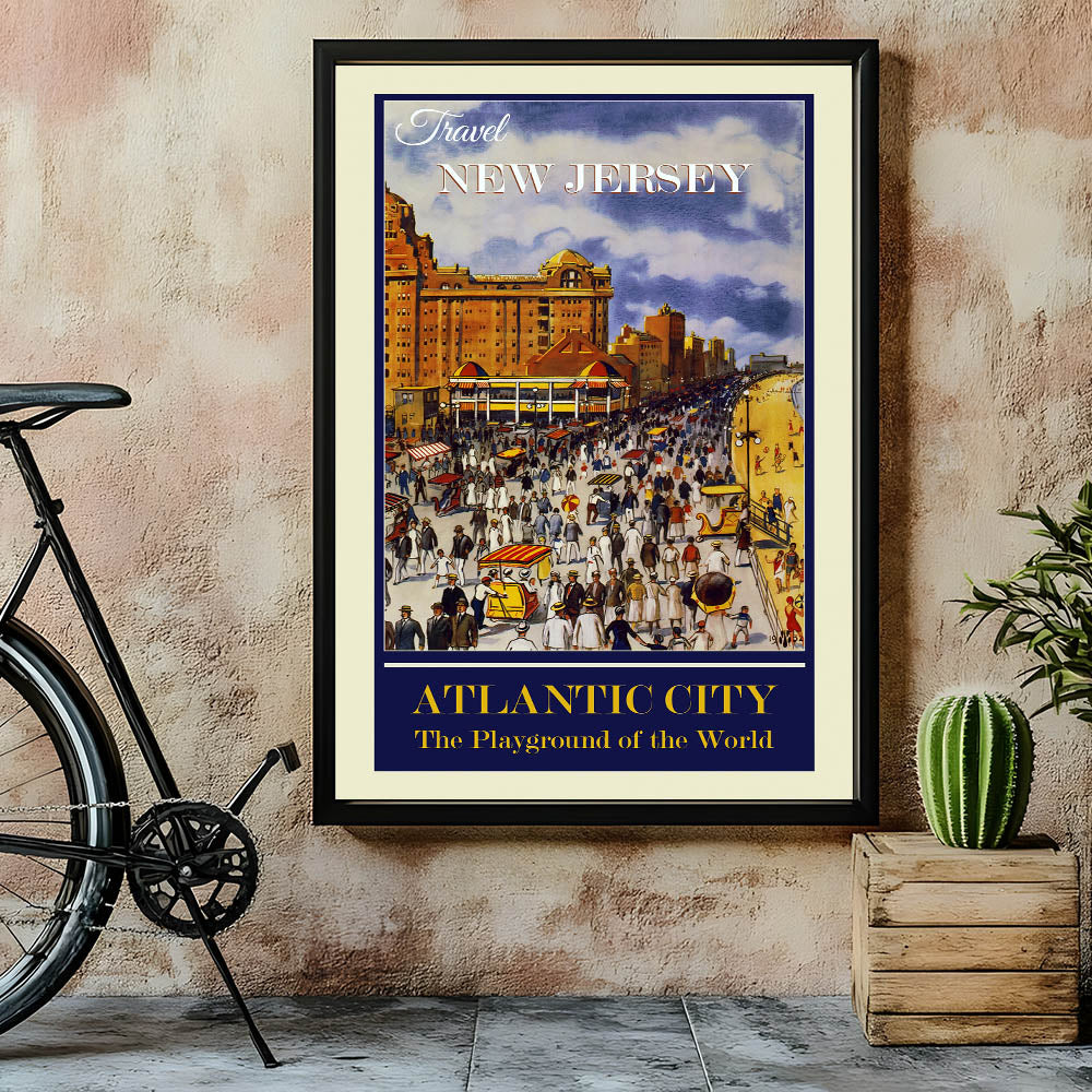 Whether you’re a lover of New Jersey’s history, an Atlantic City enthusiast, or simply enjoy nostalgic beachside charm, this retro travel poster is the perfect way to bring the magic of the boardwalk into your home.