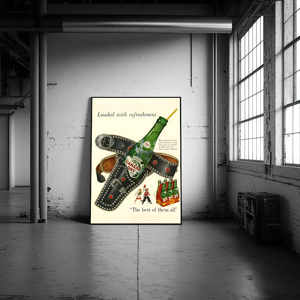 Transform your space with this nostalgic Retro Canada Dry Ad Poster, a true representation of vintage Americana. This timeless piece features a classic mid-century design, bringing together the charm of yesteryear and modern aesthetics. Perfect for those looking to add a pop of retro style to their home or office, this artwork will evoke memories of a simpler, more fun time.