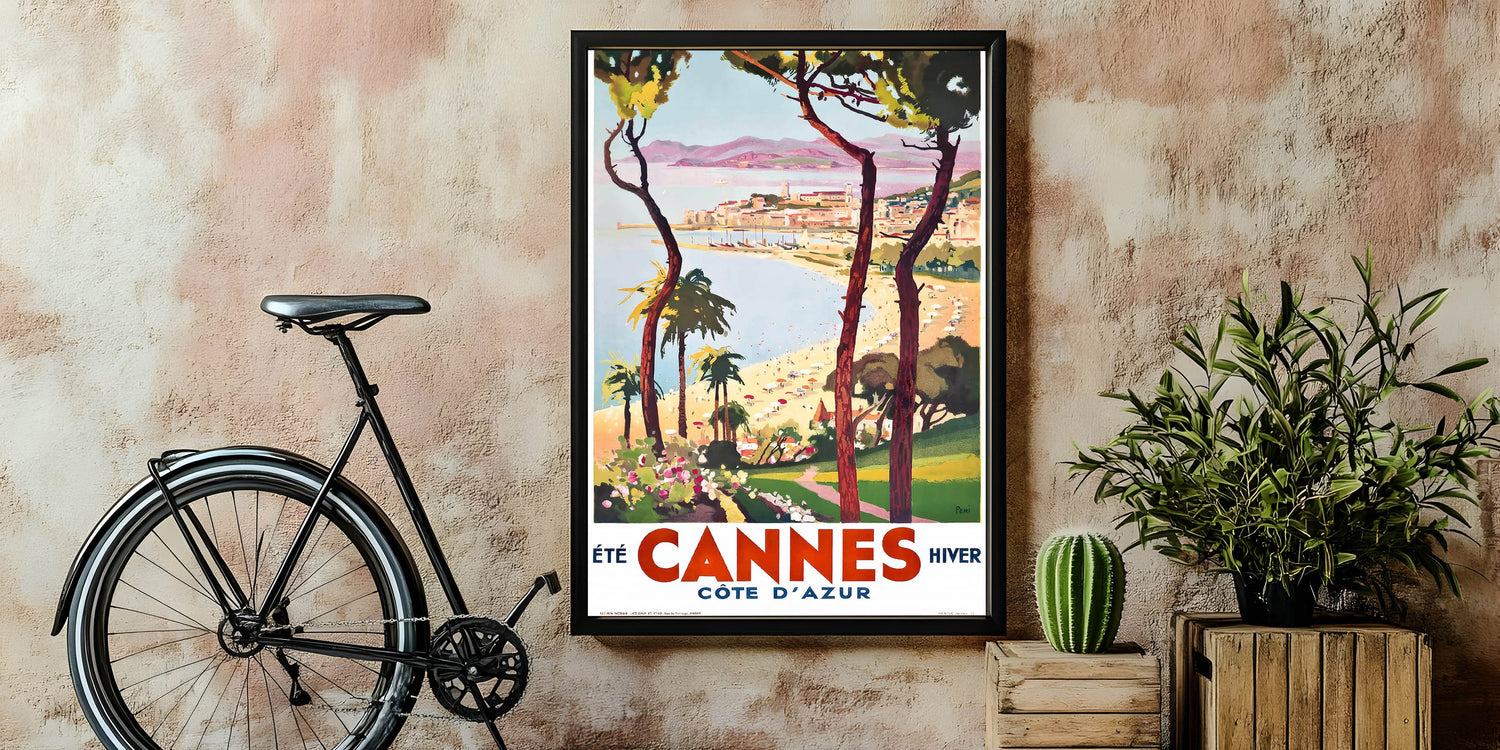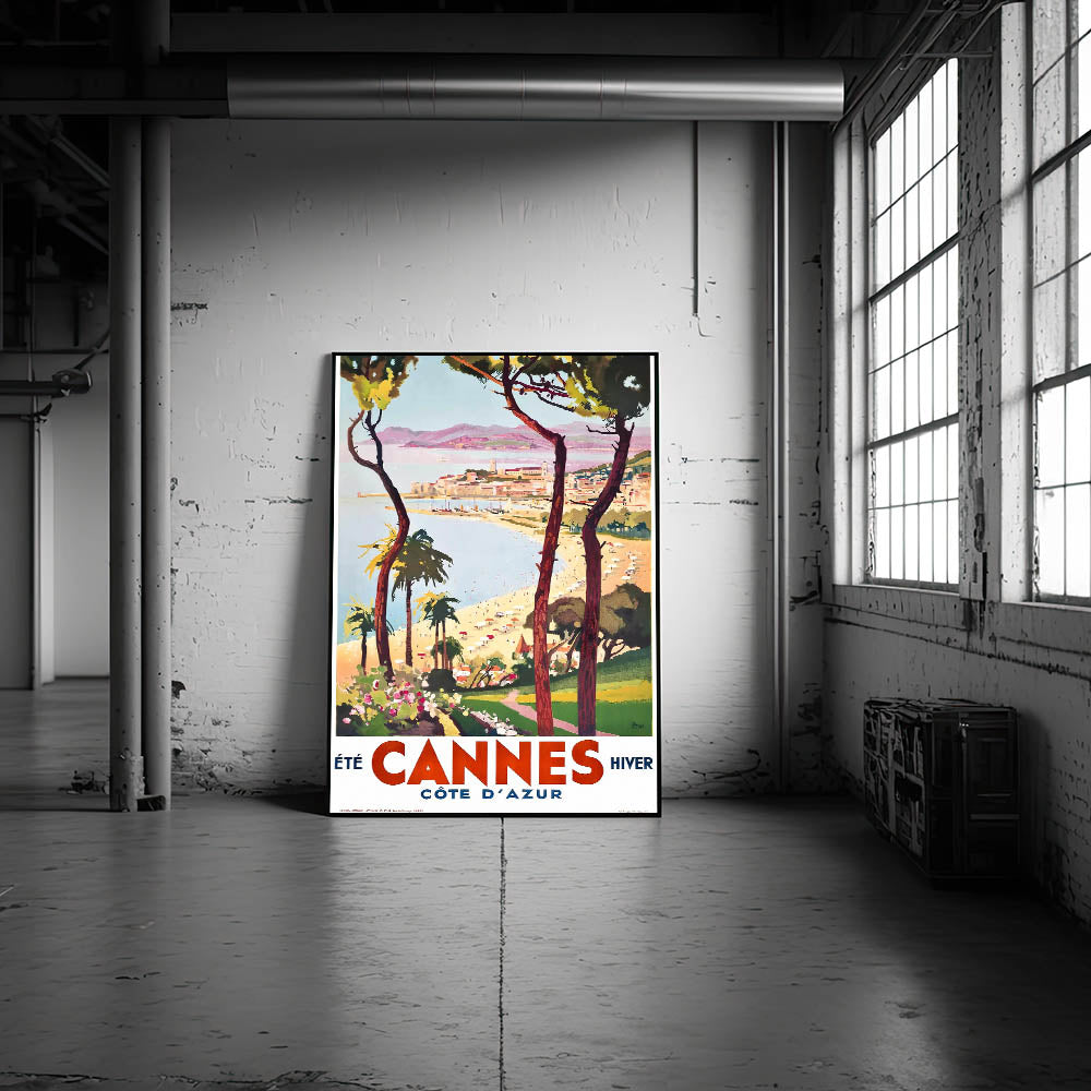 Retro Cannes Travel Poster – Vintage Côte d'Azur Art Print
